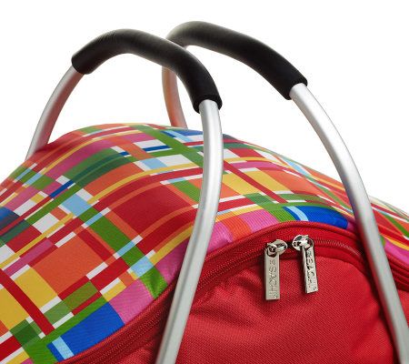 Picnic and party-perfect! This collapsible carryall basket from Sachi is equipped with an insulated interior and a color-coordinated Cool Gem freezer pack to help food stay fresh when you're on the go. Two matching totes are included for complete style and carrying ease.
