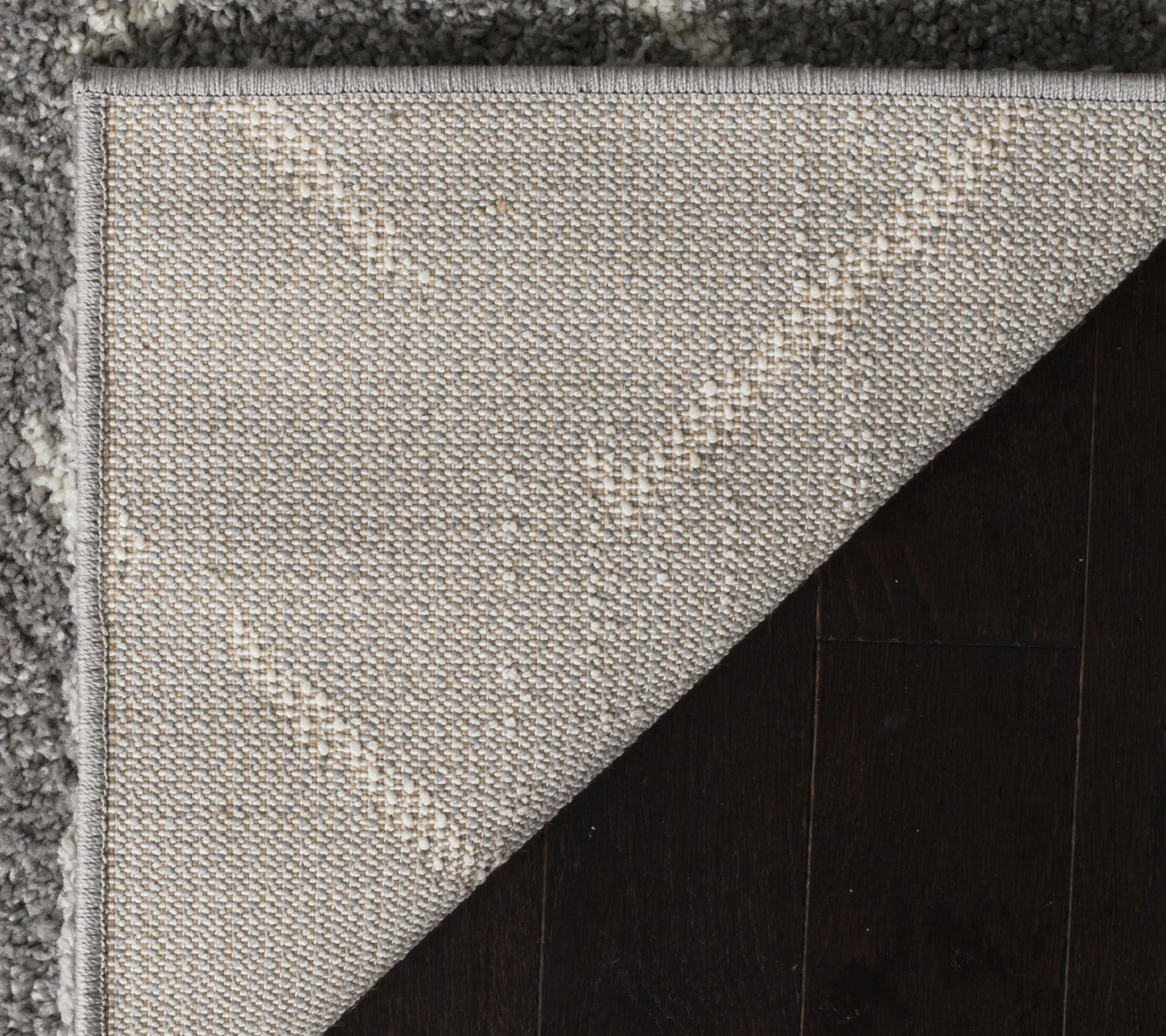 • Shag carpet with geometric stripes, and triangle and diamond motifs; palette of natural mountain tones