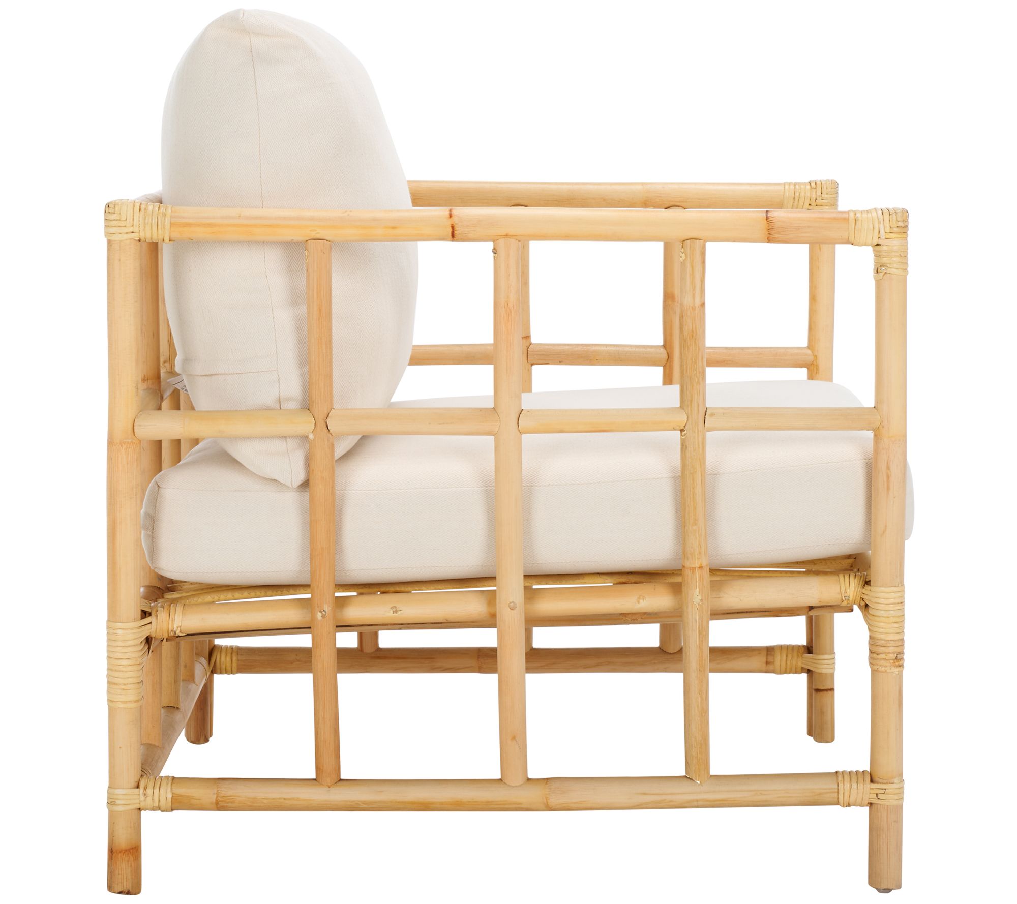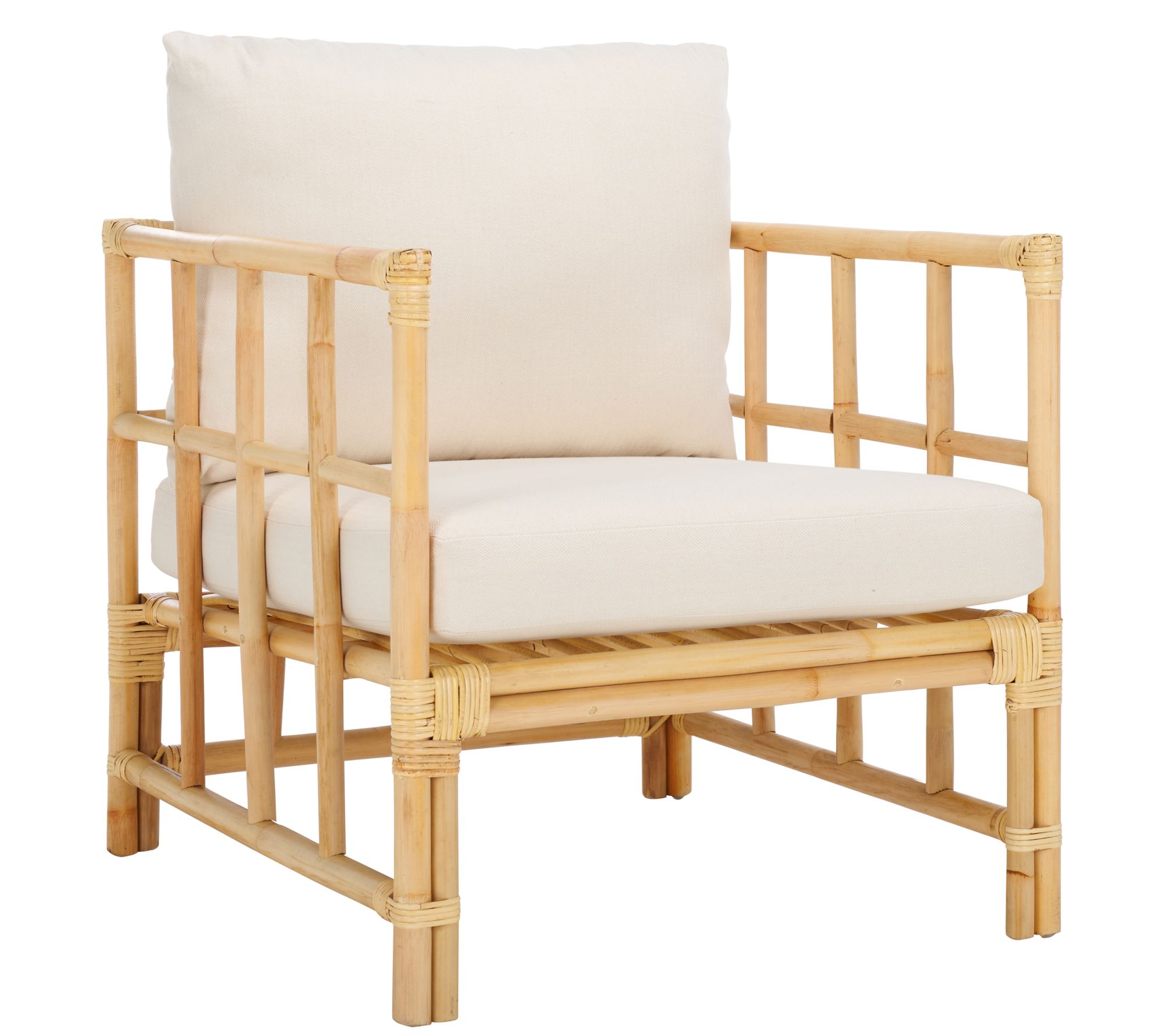 Add a sophisticated touch to your home with the Aisling accent chair. Thoughtfully crafted with rattan and luxurious fabric, this chair provides a soothing seating experience. Its natural frame and comfortable cushions make it an ideal choice for a cozy reading nook or bright living room. From Safavieh.