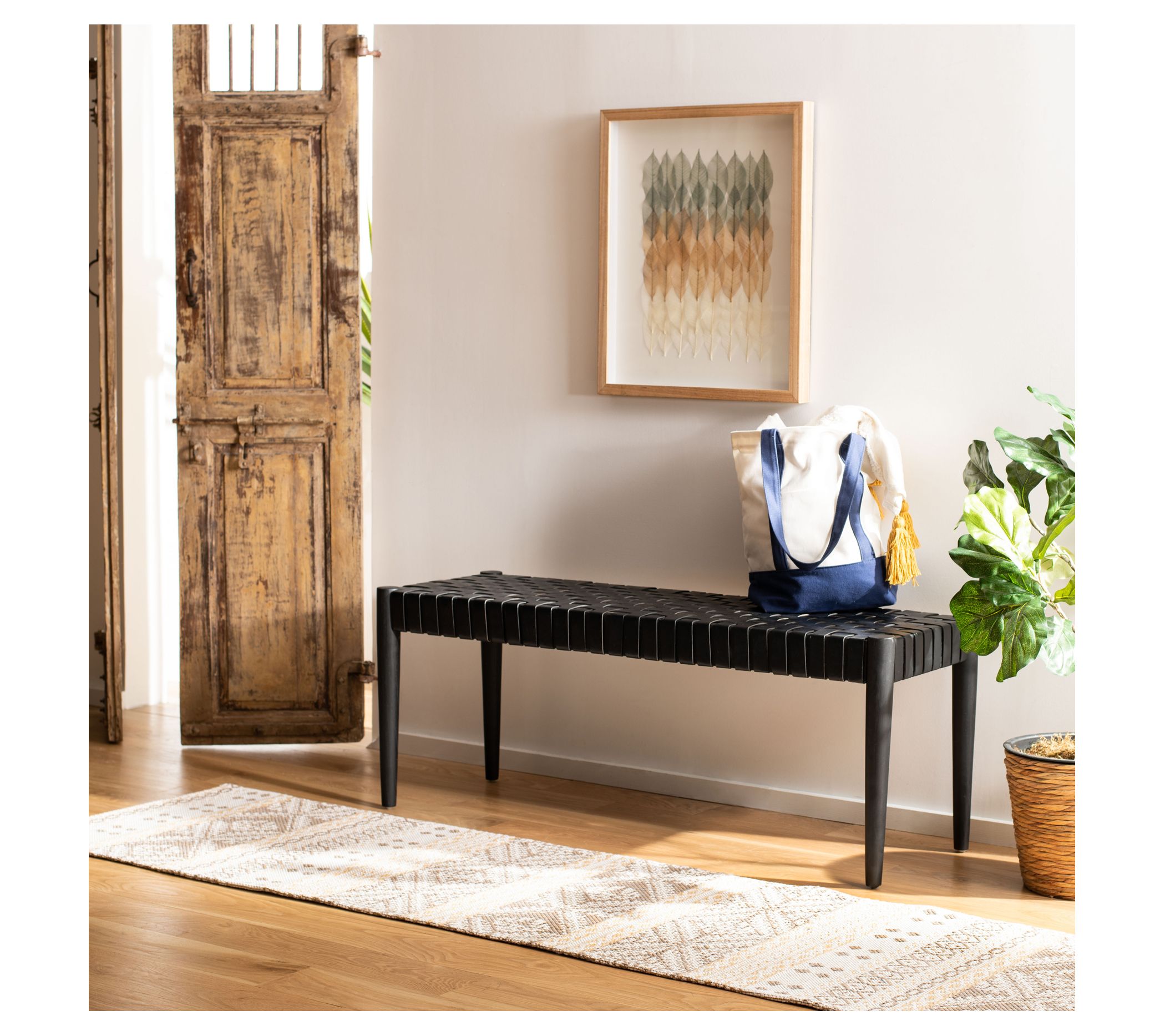 Safavieh Amalia Leather Weave Bench