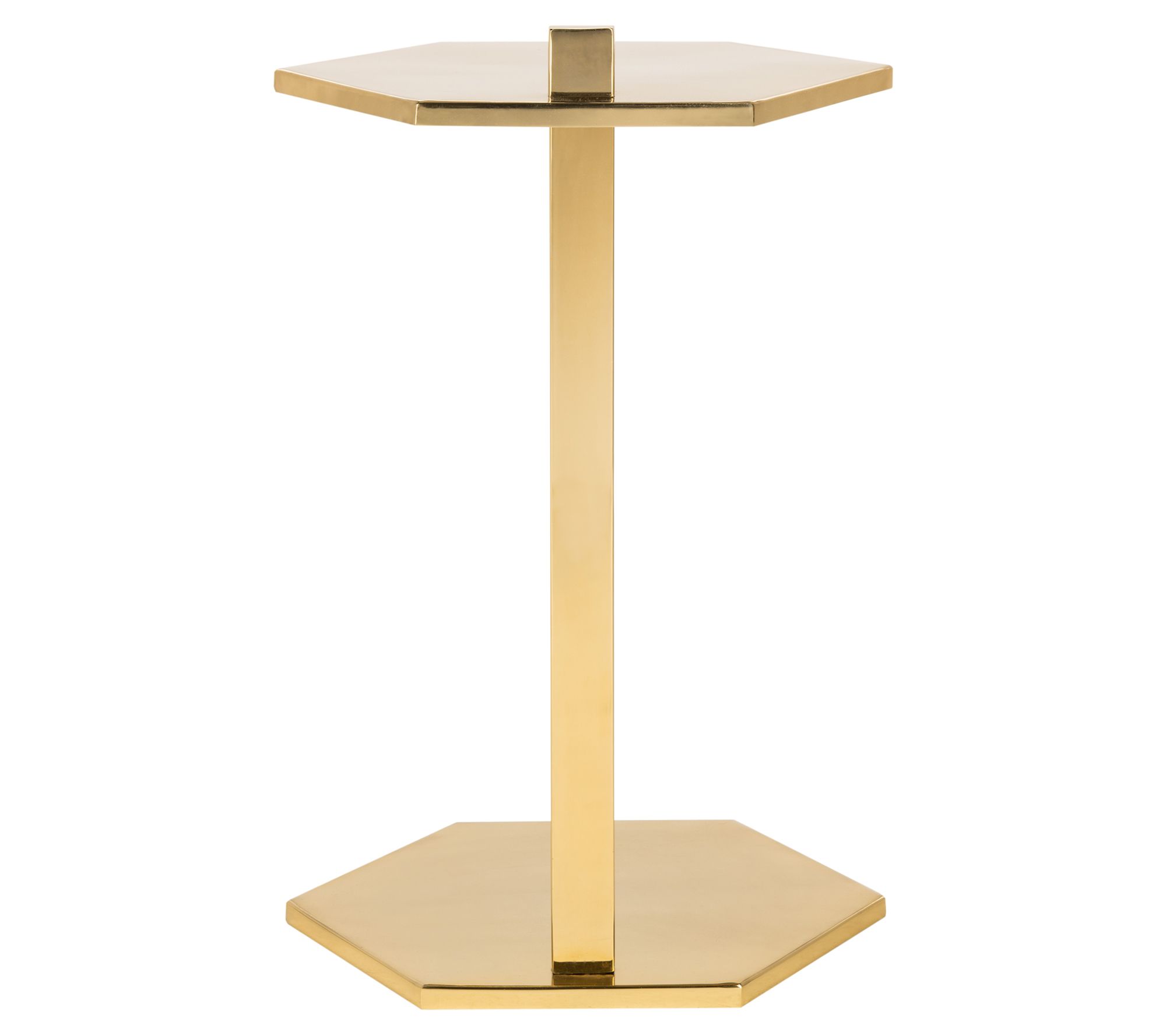 With a hexagon-shaped base that matches its top, this gold table can be used as a nightstand or as an end table in your family room. Wherever it's placed, it'll splash your space with an illuminating touch of ambience. From Safavieh.
