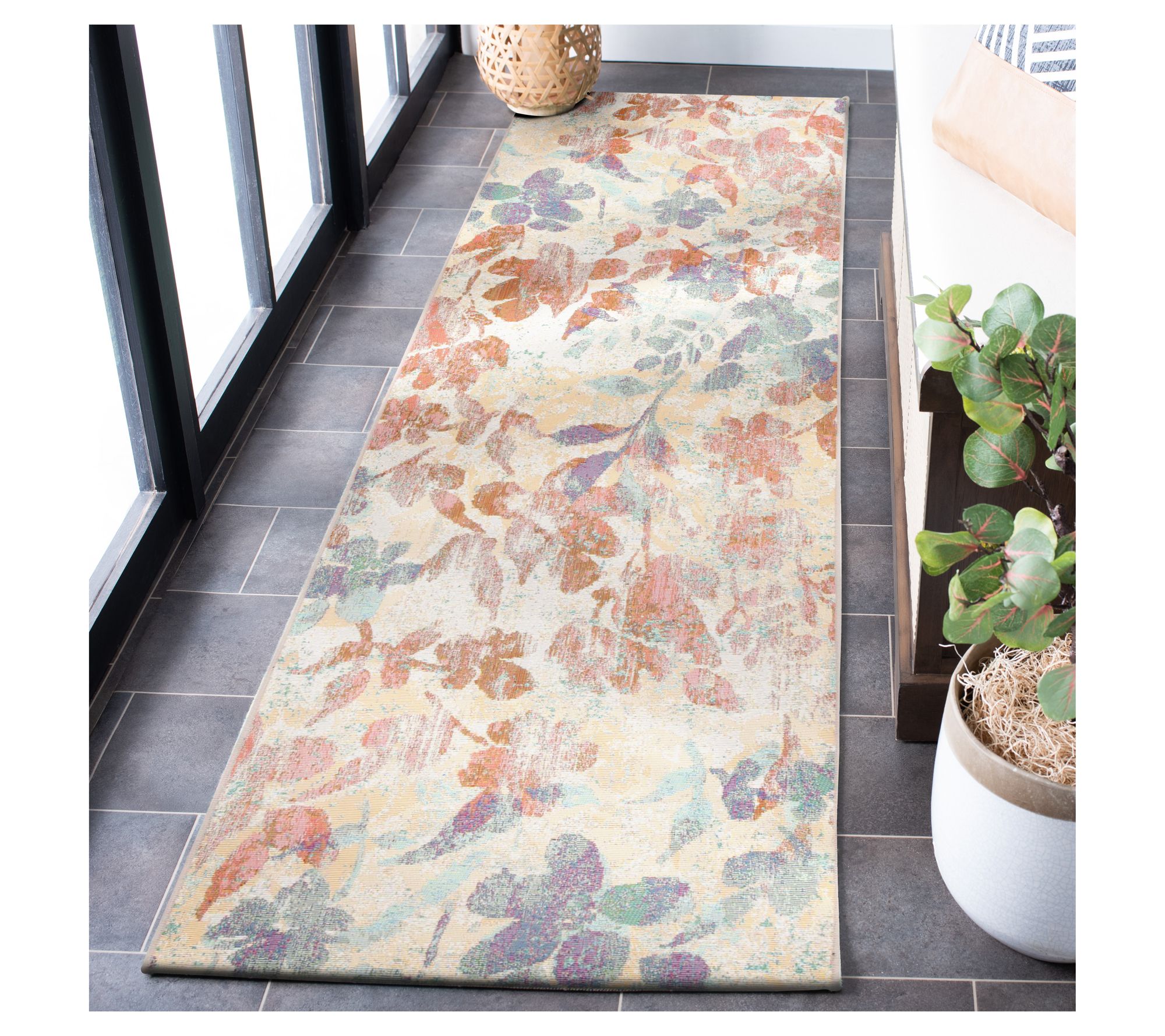 Create a cozy, nature-inspired haven in your indoor and outdoor spaces with this charming rug. Featuring a delightful array of softly weathered leaves and floral motifs in warm tones, it will add a touch of rustic elegance to your patios, decks, and indoor living areas. Expertly crafted from durable synthetic yarns, this rug maintains its inviting appearance and rich colors season after season. From Safavieh.