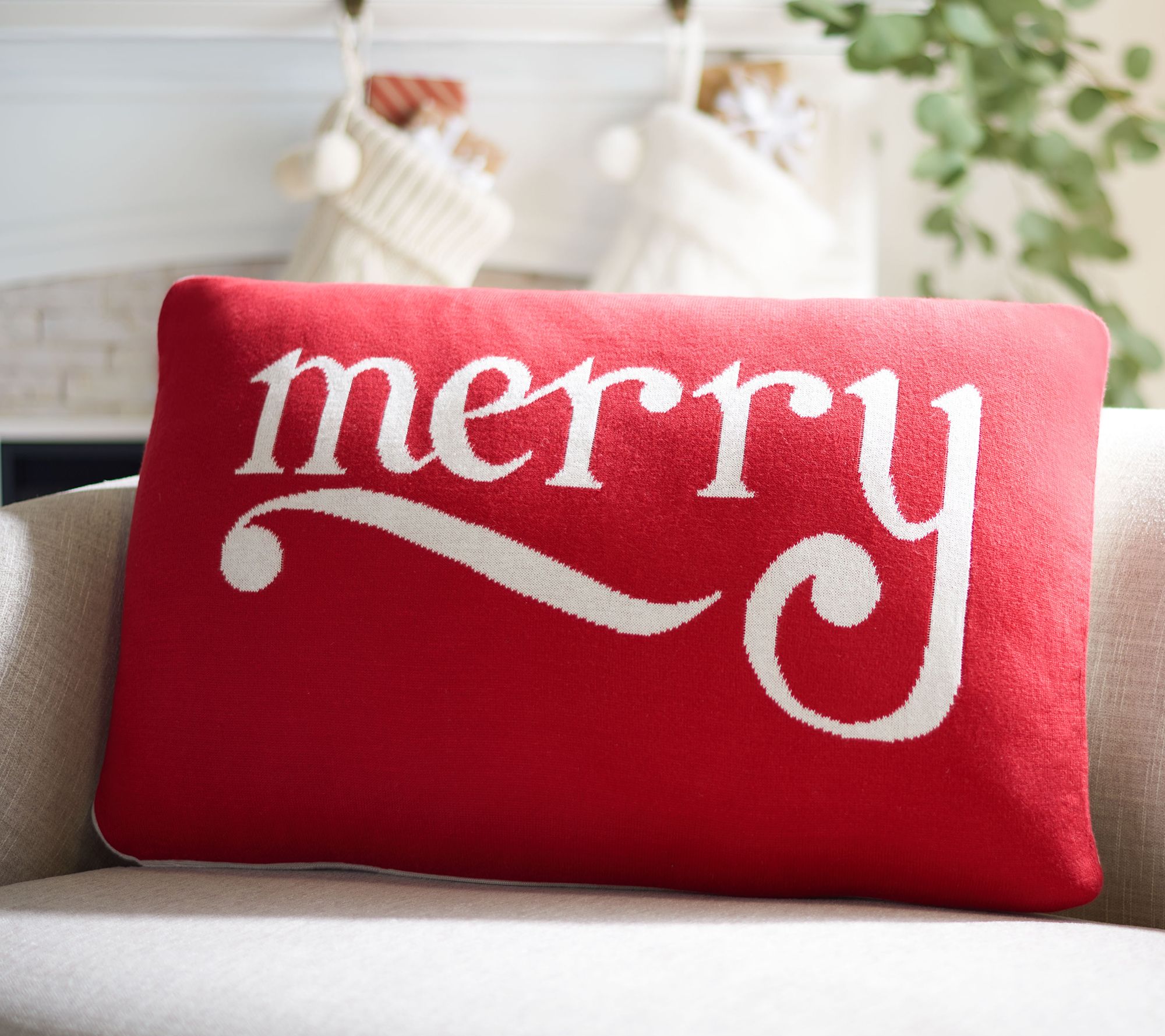 Give your decor a touch of Christmas cheer with this pillow featuring the iconic "Be Merry" sentiment in crisp white script on a soft red cotton backdrop. From Safavieh.