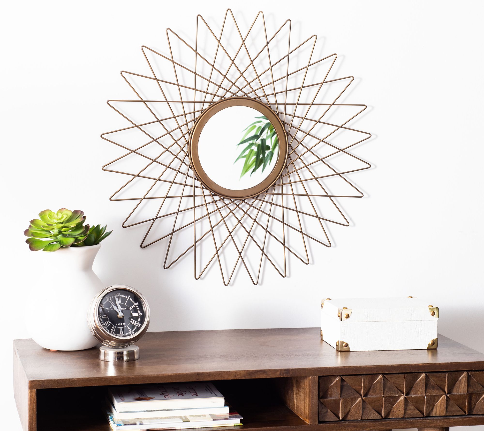 • Measurements: Overall 23" x 1.5" x 23"; Mirror 7"