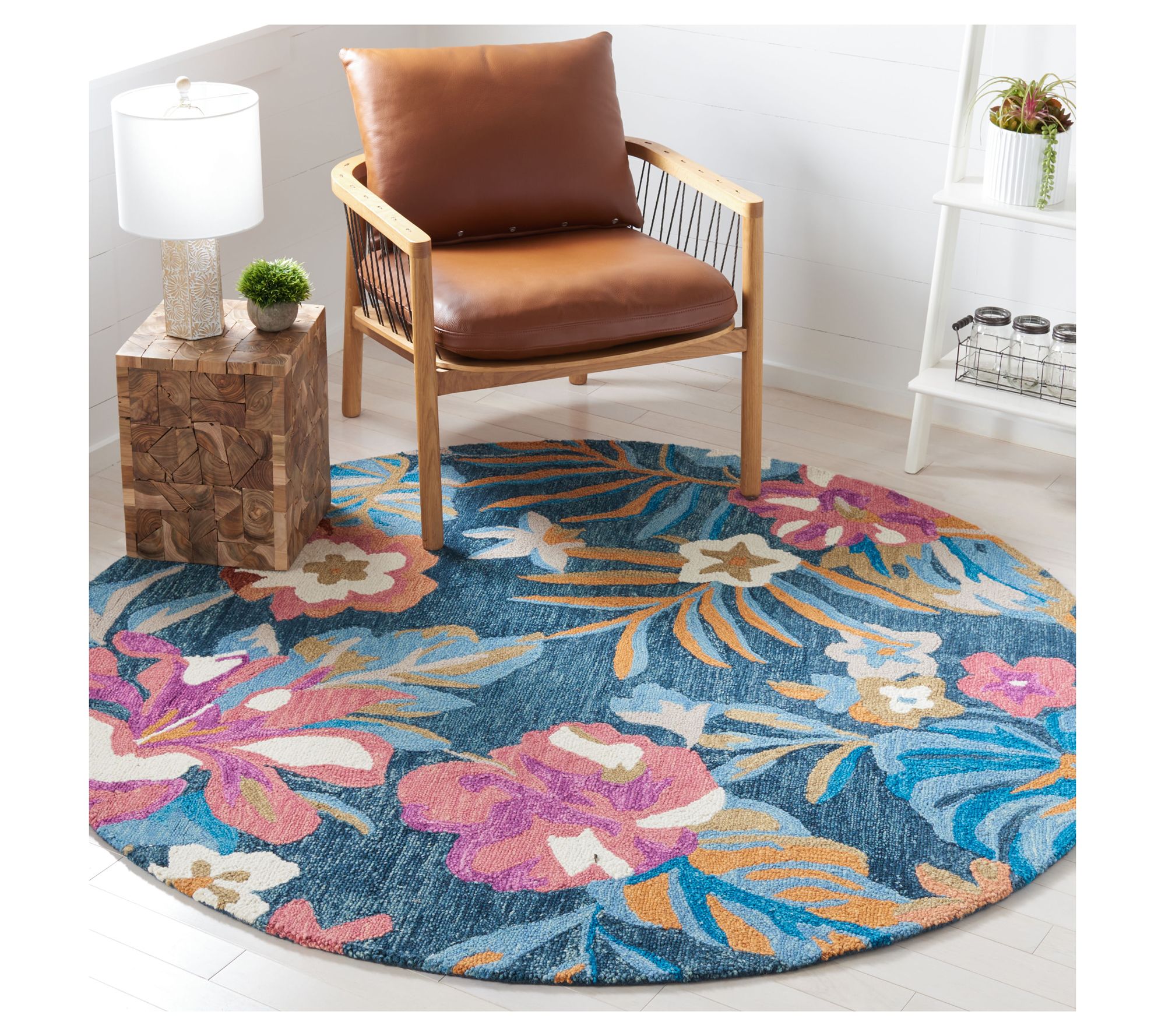 Bring a touch of country charm and cozy comfort to your favorite gathering spot with this round rug, showcasing intricate floral designs and a lush, cushion-soft feel underfoot. The vibrant colors and detailed botanical patterns create a beautiful accent for living rooms, bedrooms, dining areas, or family rooms. From Safavieh.