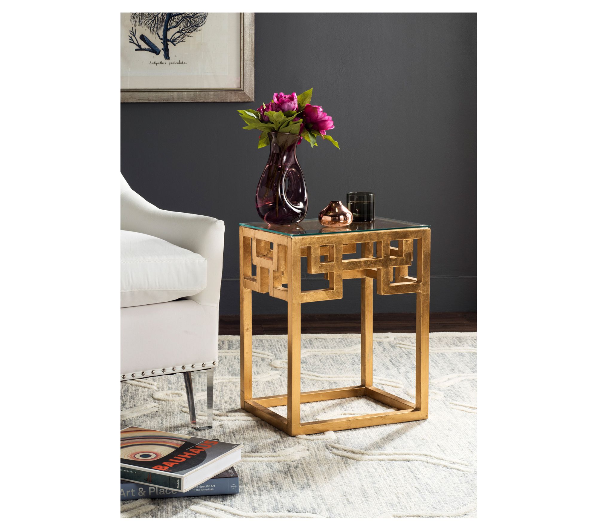 Sleek and not without a refined grace, this gold leaf end table enhances any space it calls home. With its artisan craftmanship and antique gold finish, it splashes your humble abode with a chic elegance. From Safavieh.