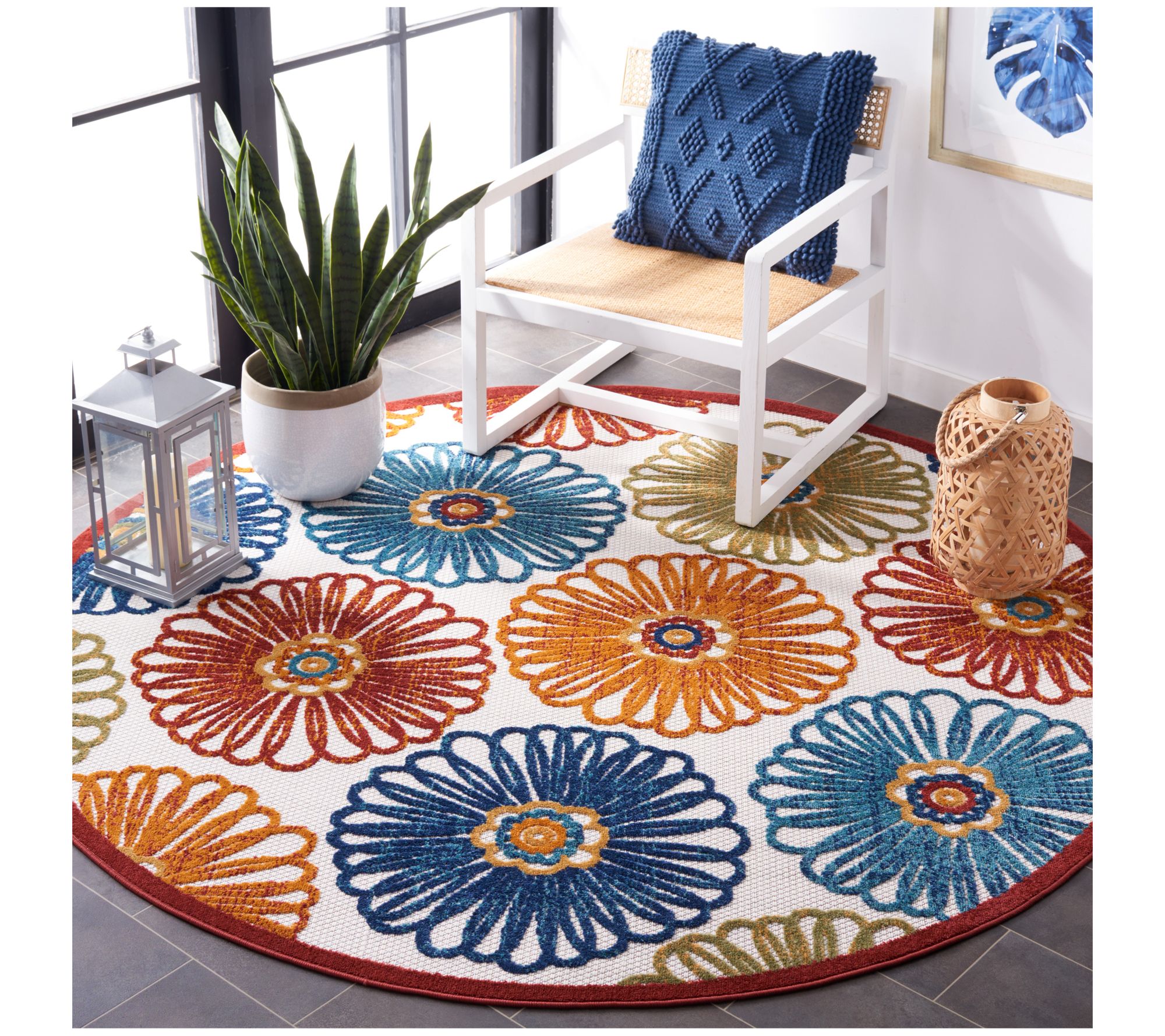 Brighten up any space with a touch of color! The Cabana indoor/outdoor rug adds a vibrant focal point to your porch, patio, deck, or sunroom and complements any decor. From Safavieh.