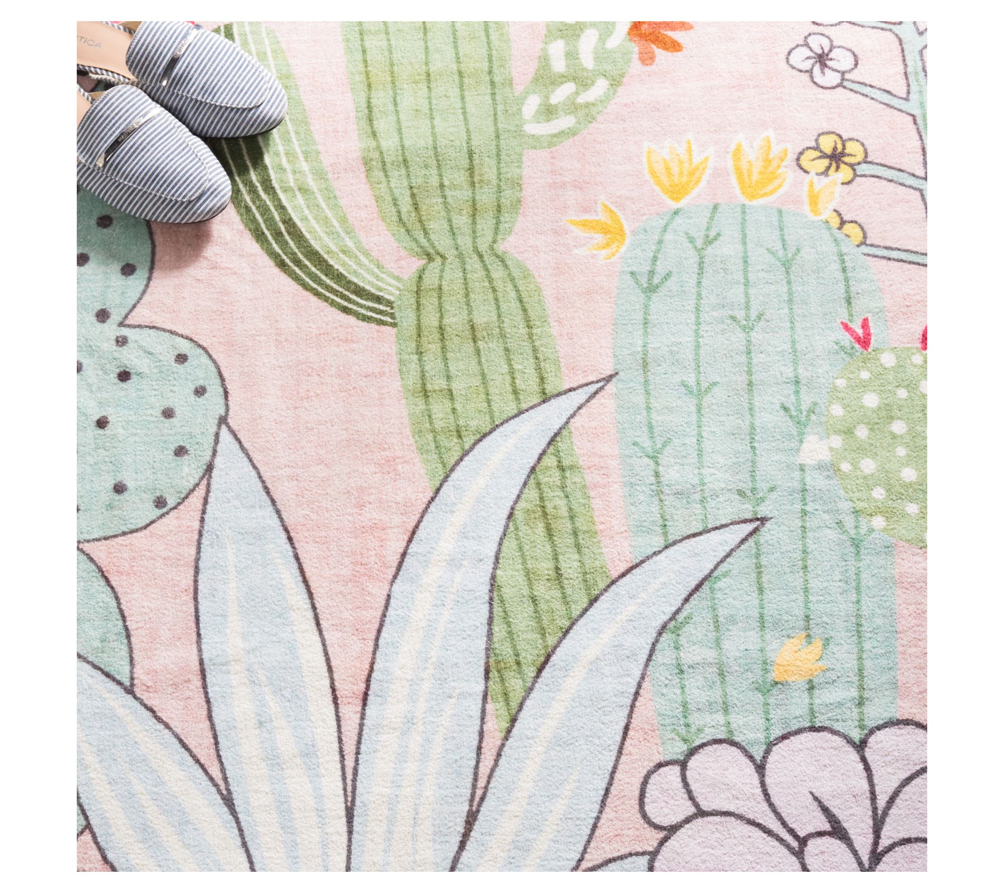 Brighten up your kitchen or any space that could use a pop of color with this playful cactus bloom kitchen mat. The soft, cushioned design provides comfort for your feet during busy cooking sessions, while cheerful cactus and flower motifs bring a lively touch to everyday routines. From Safavieh.