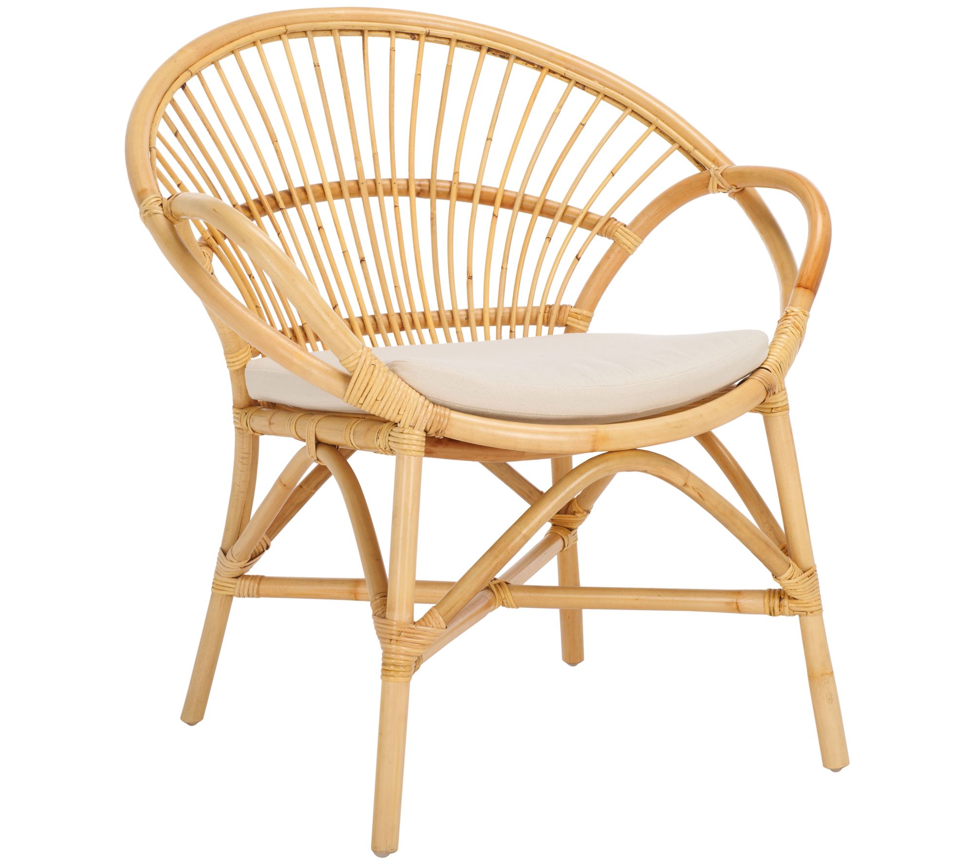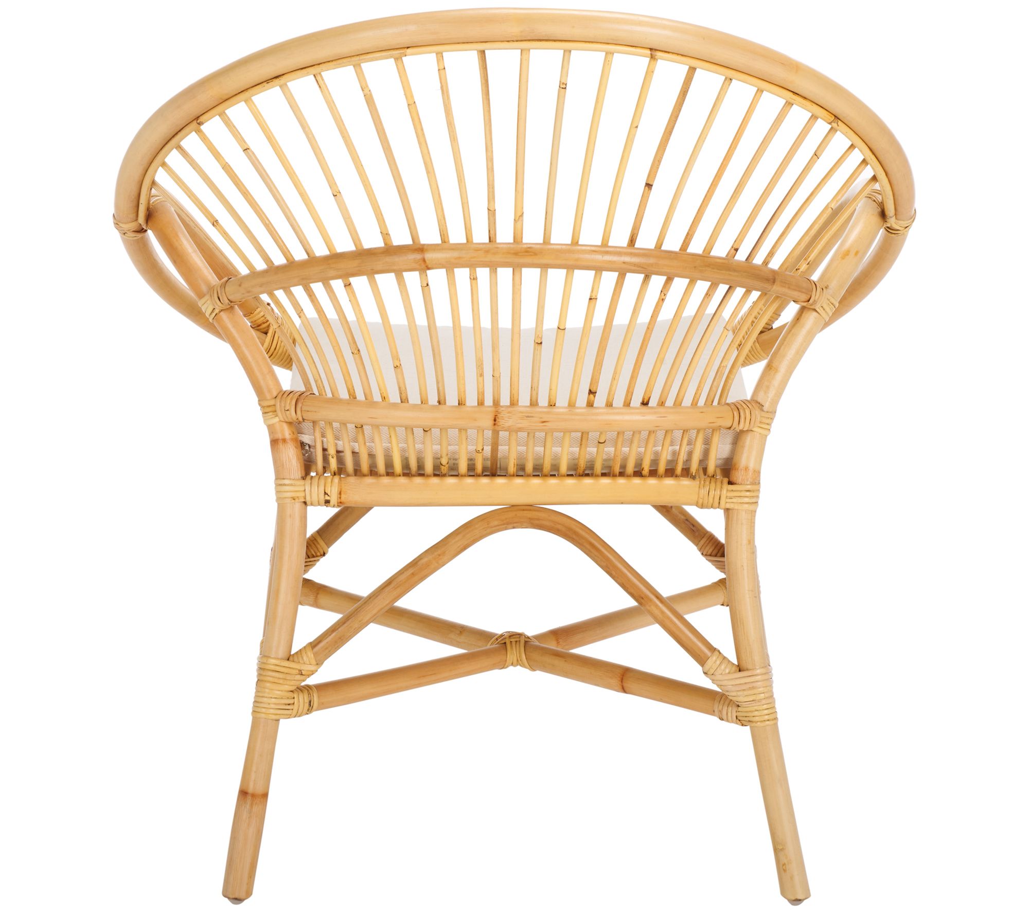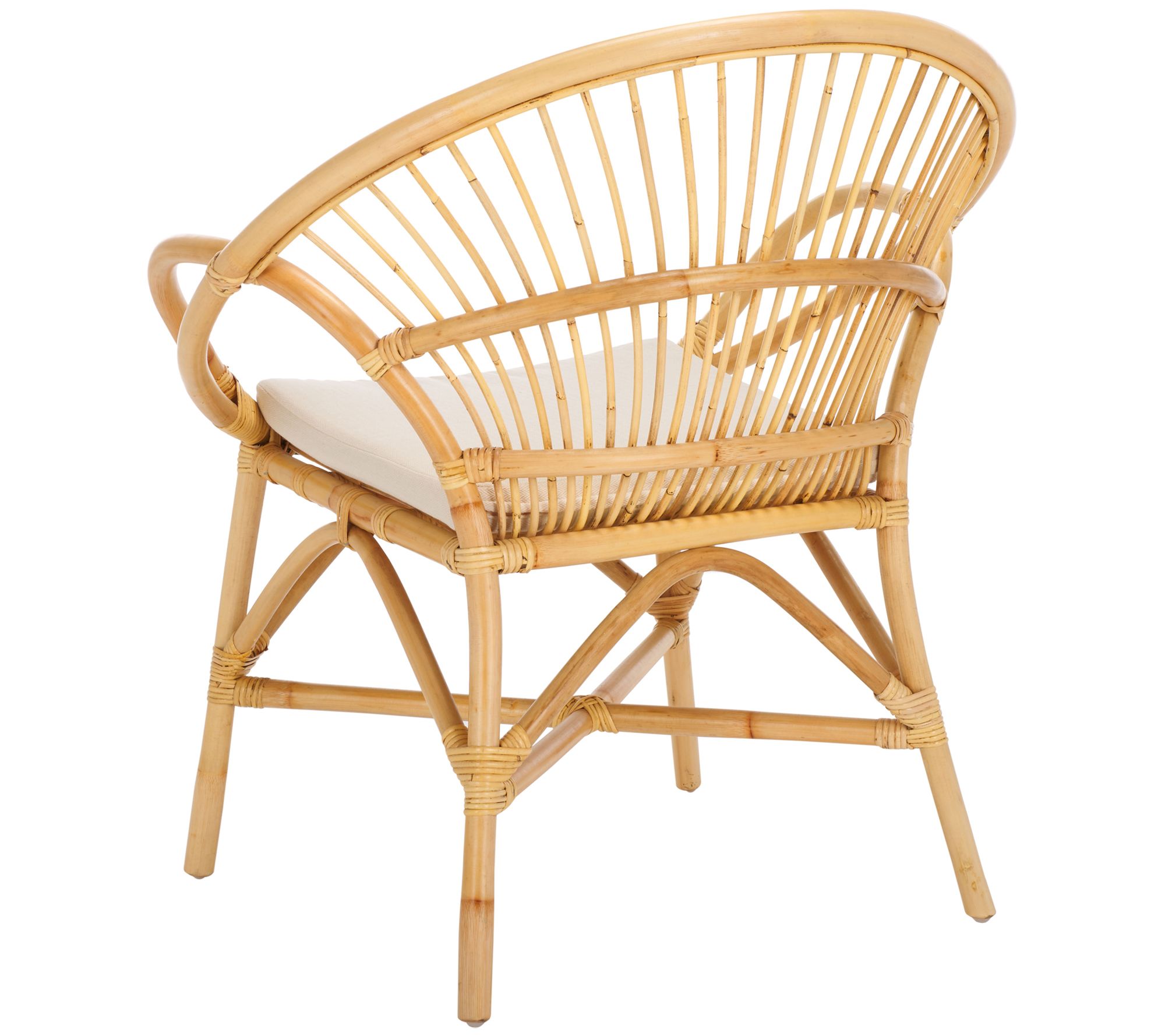 Sit back and enjoy the cozy comfort of the Safavieh Cosette accent chair. Featuring a curved scoop shape and intricately designed latticework, this lightweight rattan chair adds a touch of breezy drama to any room. Whether in your lounge, bedroom, or study, its padded cushion ensures chic, cocooning comfort. From Safavieh.