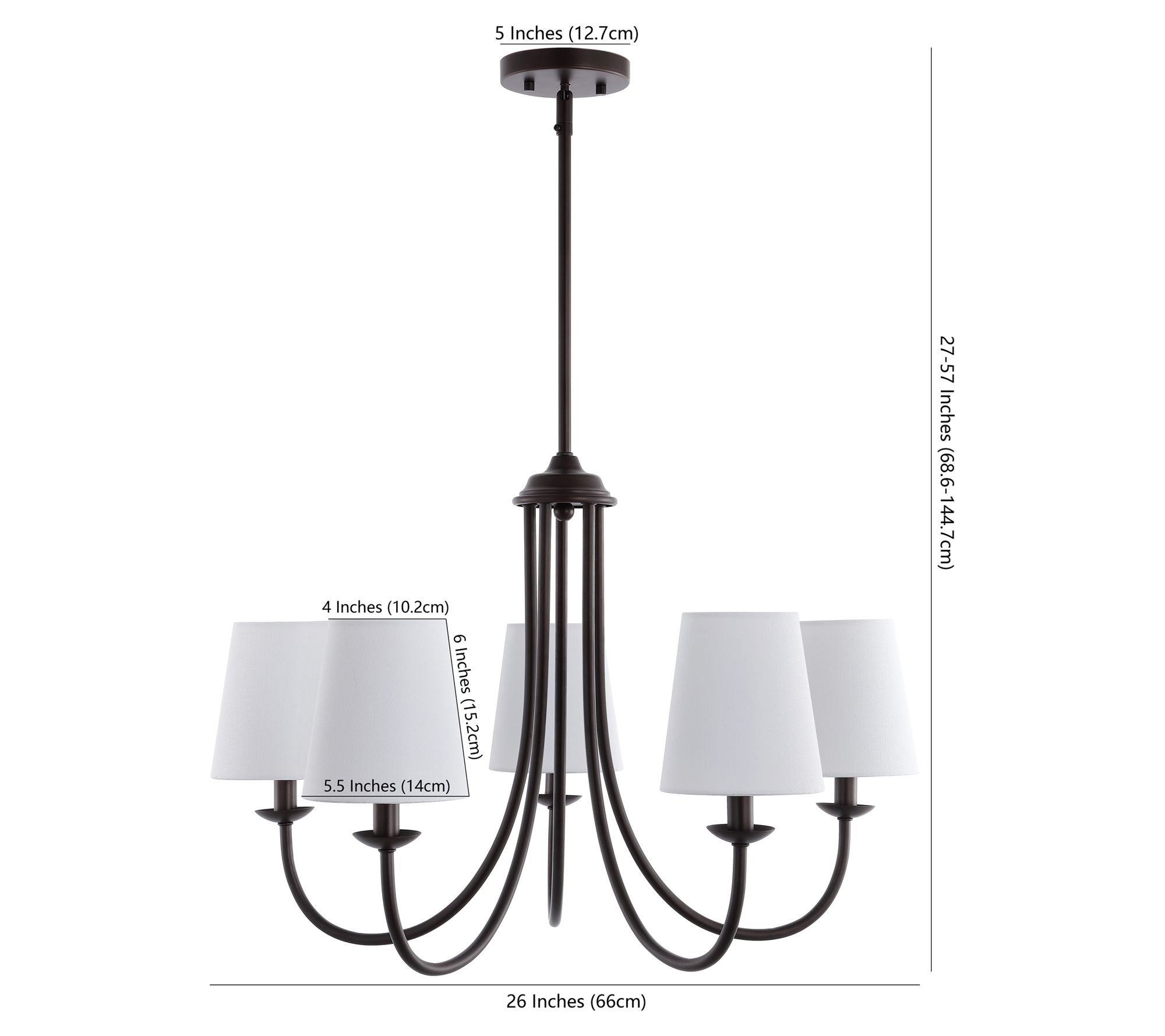 • Includes chandelier and five LED bulbs