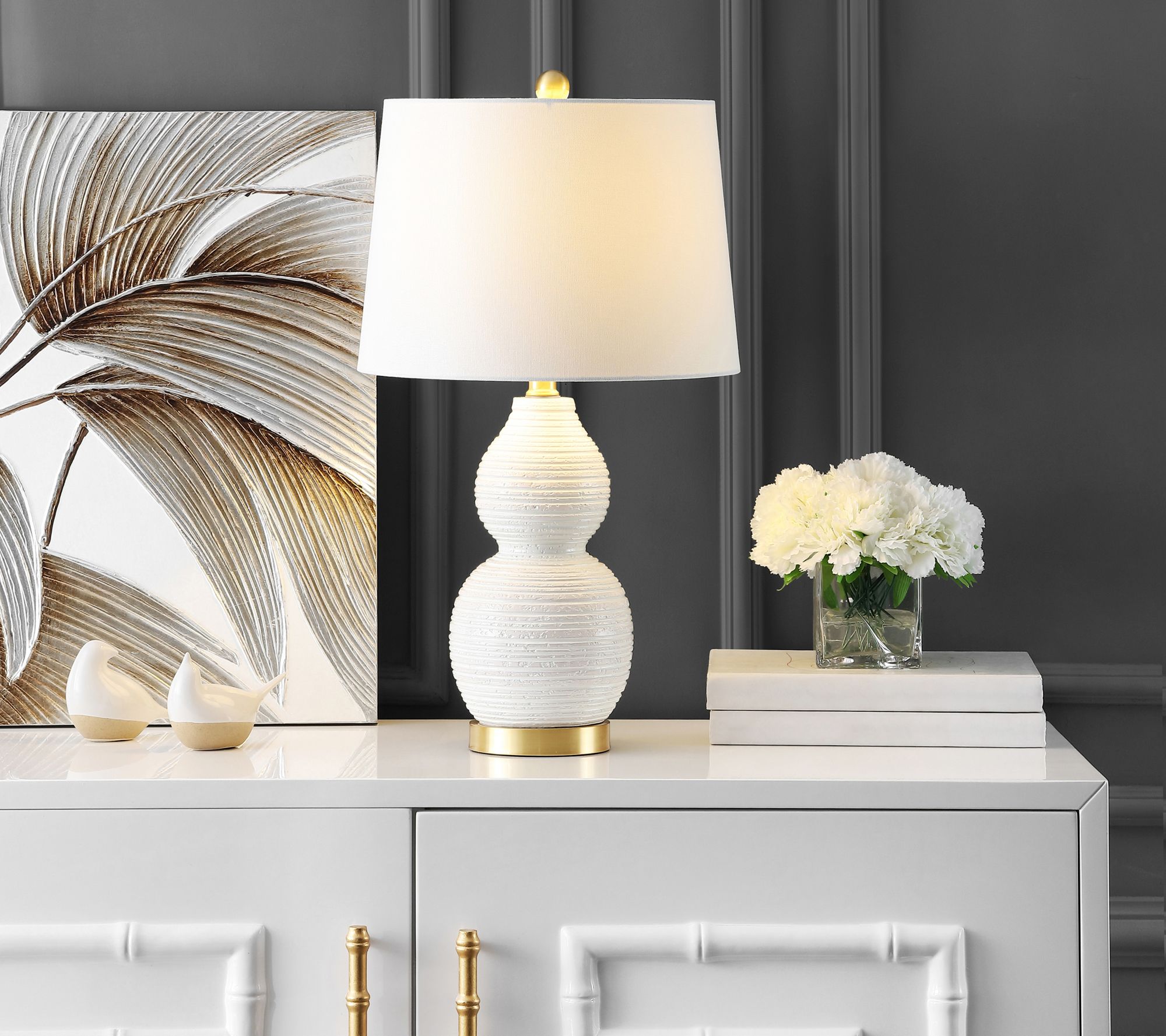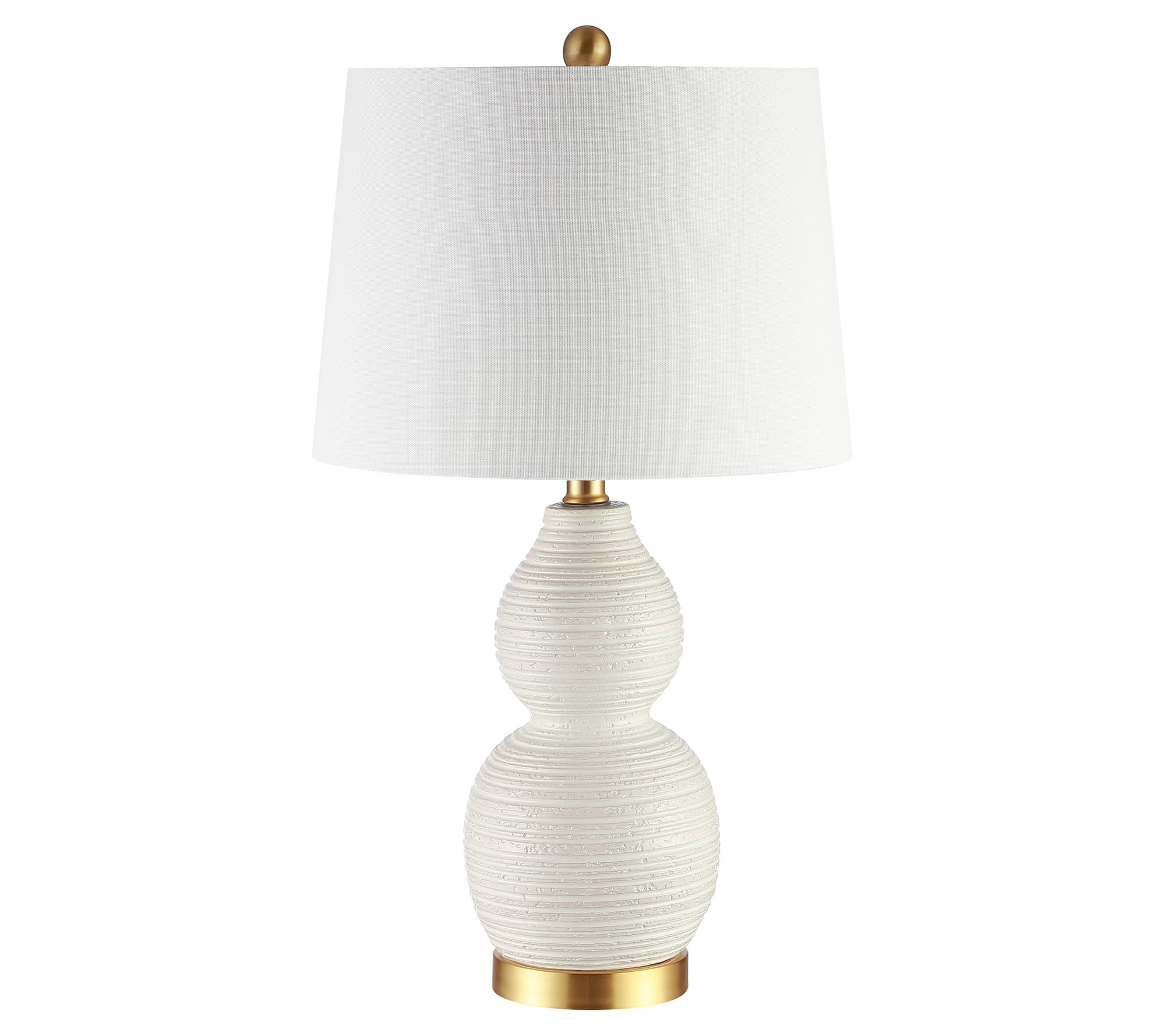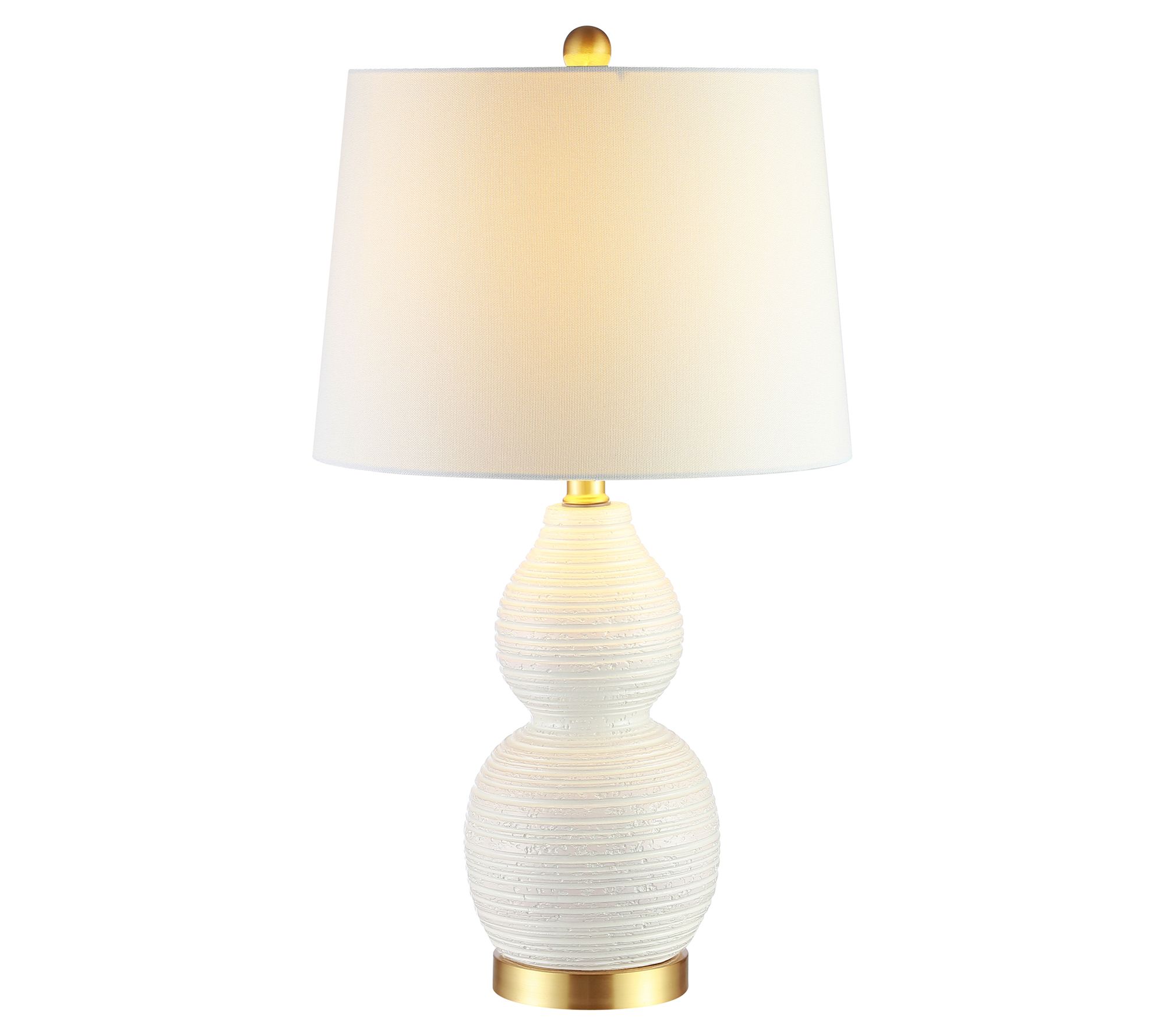 Refresh your home decor with this double gourd-shaped lamp sporting a rippling texture and a sleek drum shade. From Safavieh.