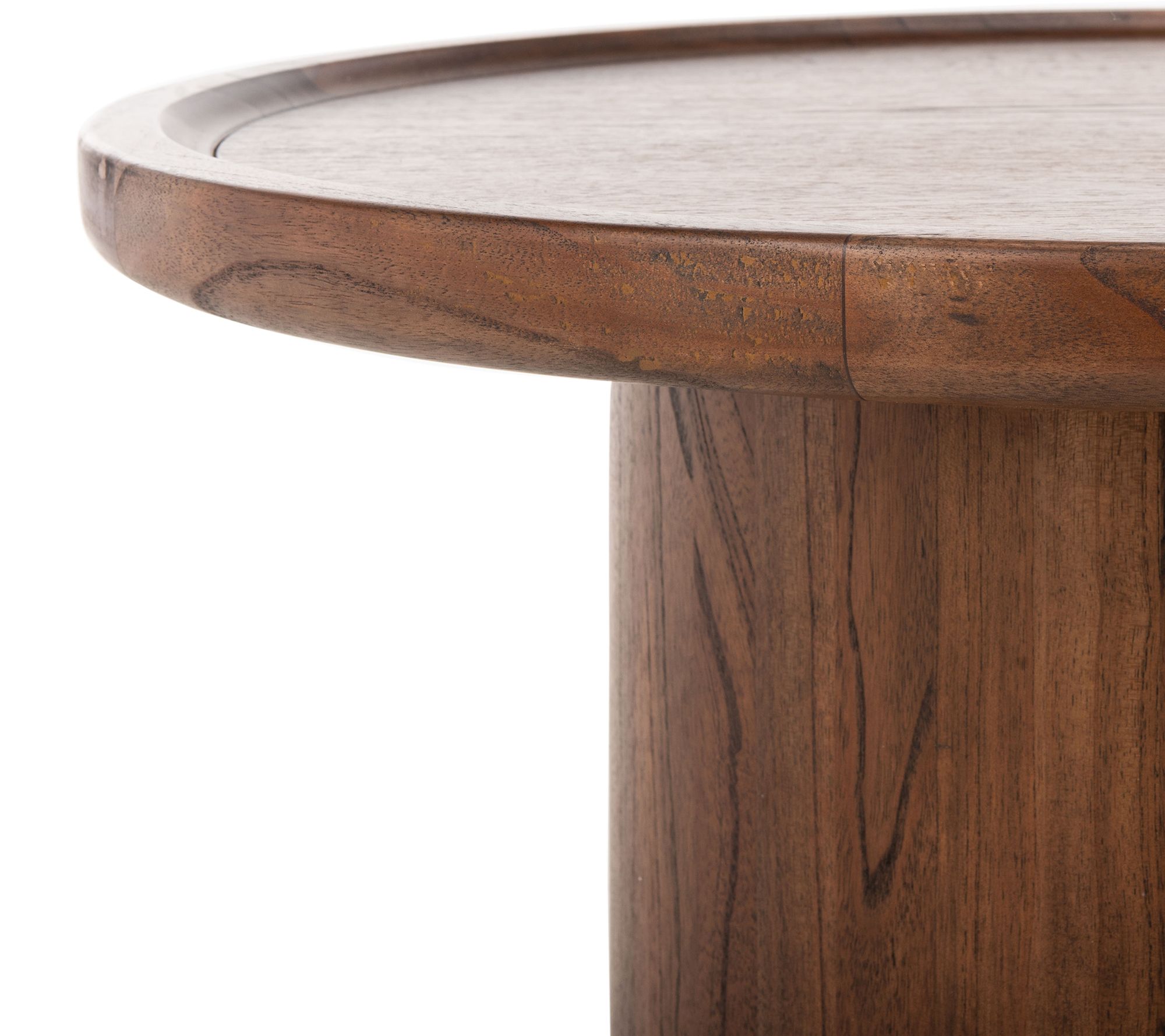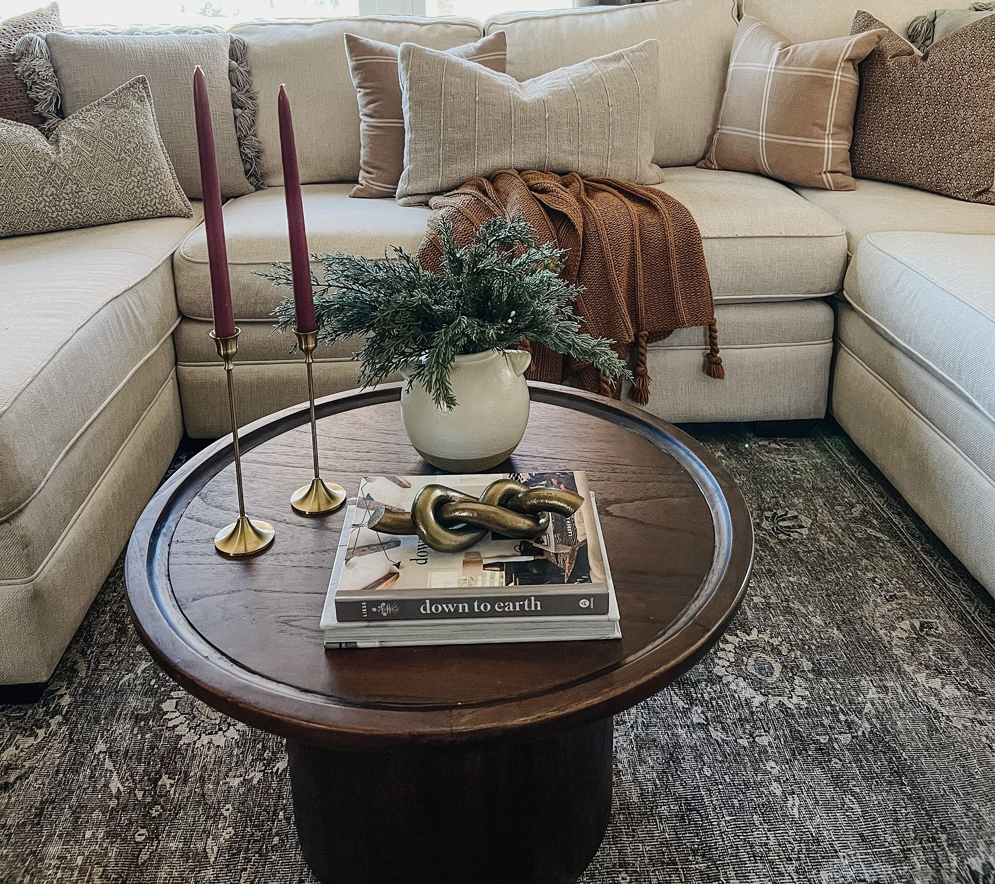 Add a rustic touch to your living room with this round coffee table featuring a dark walnut finish and pretty pedestal base. From Safavieh.