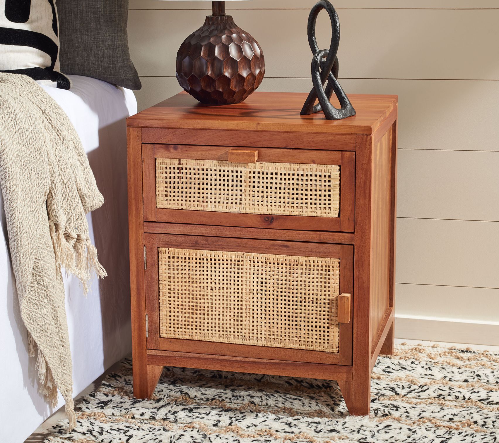 You'll love the sturdy, minimalist design of this spacious nightstand featuring a rattan mesh front for a touch of coastal style. From Safavieh.