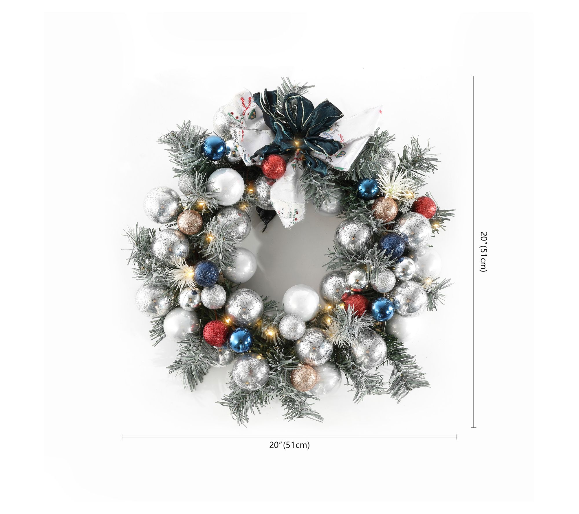 Safavieh Faux 20" Pine LED Wreath w/Ornaments