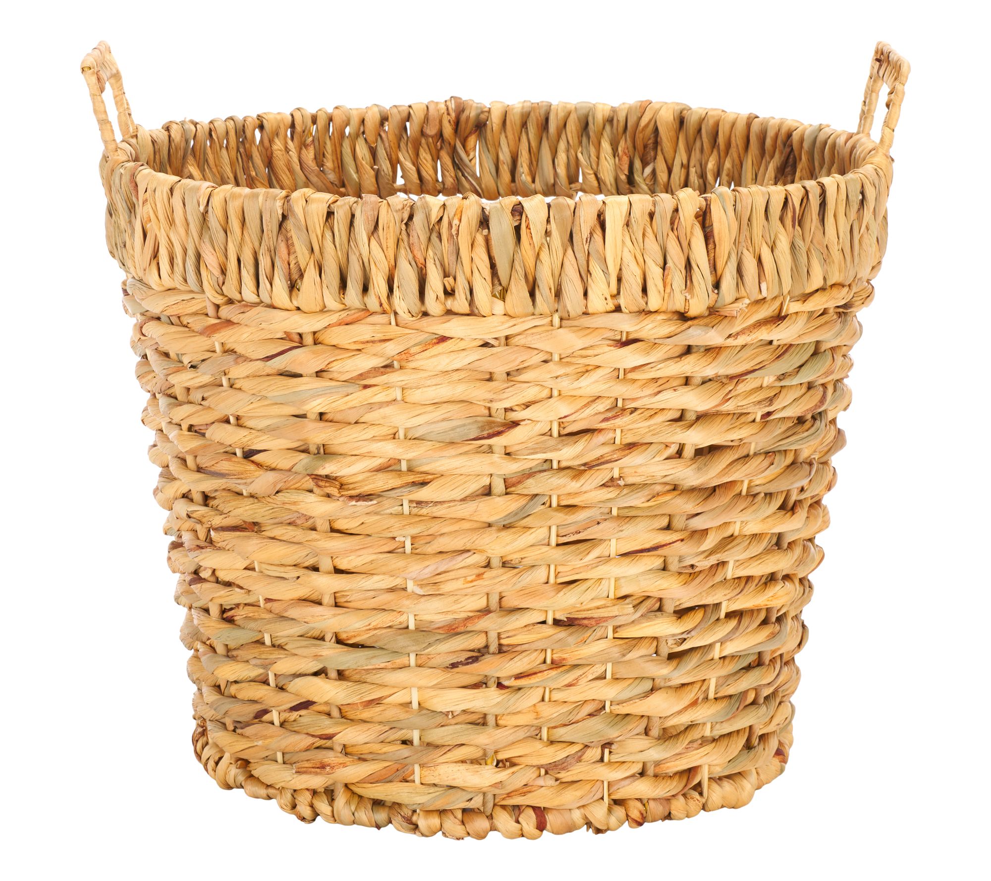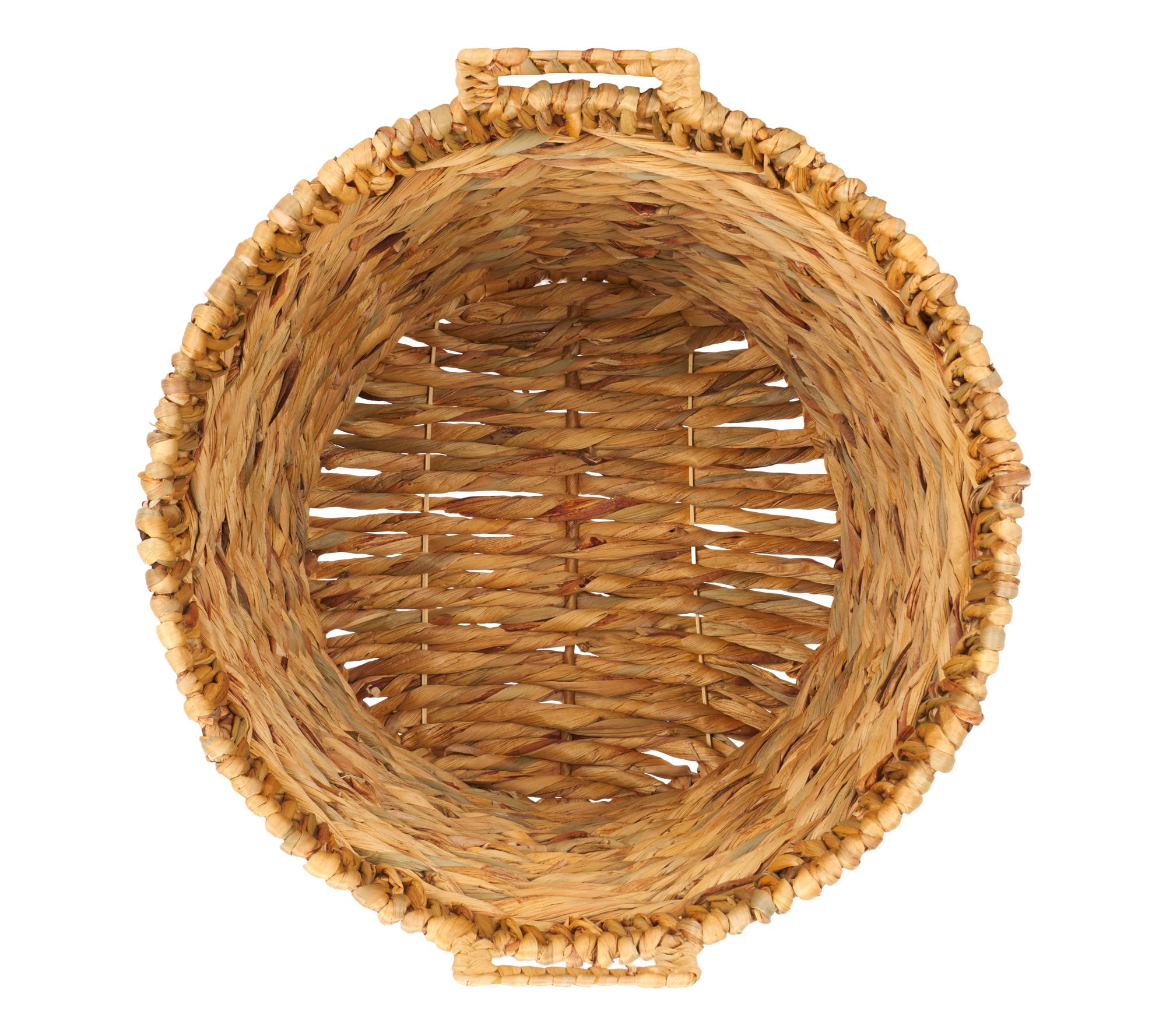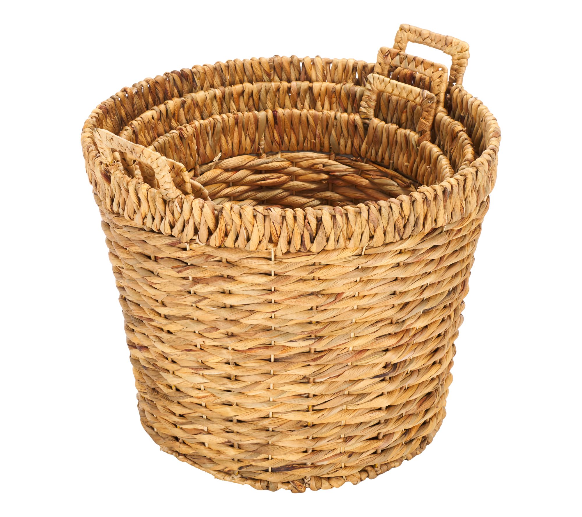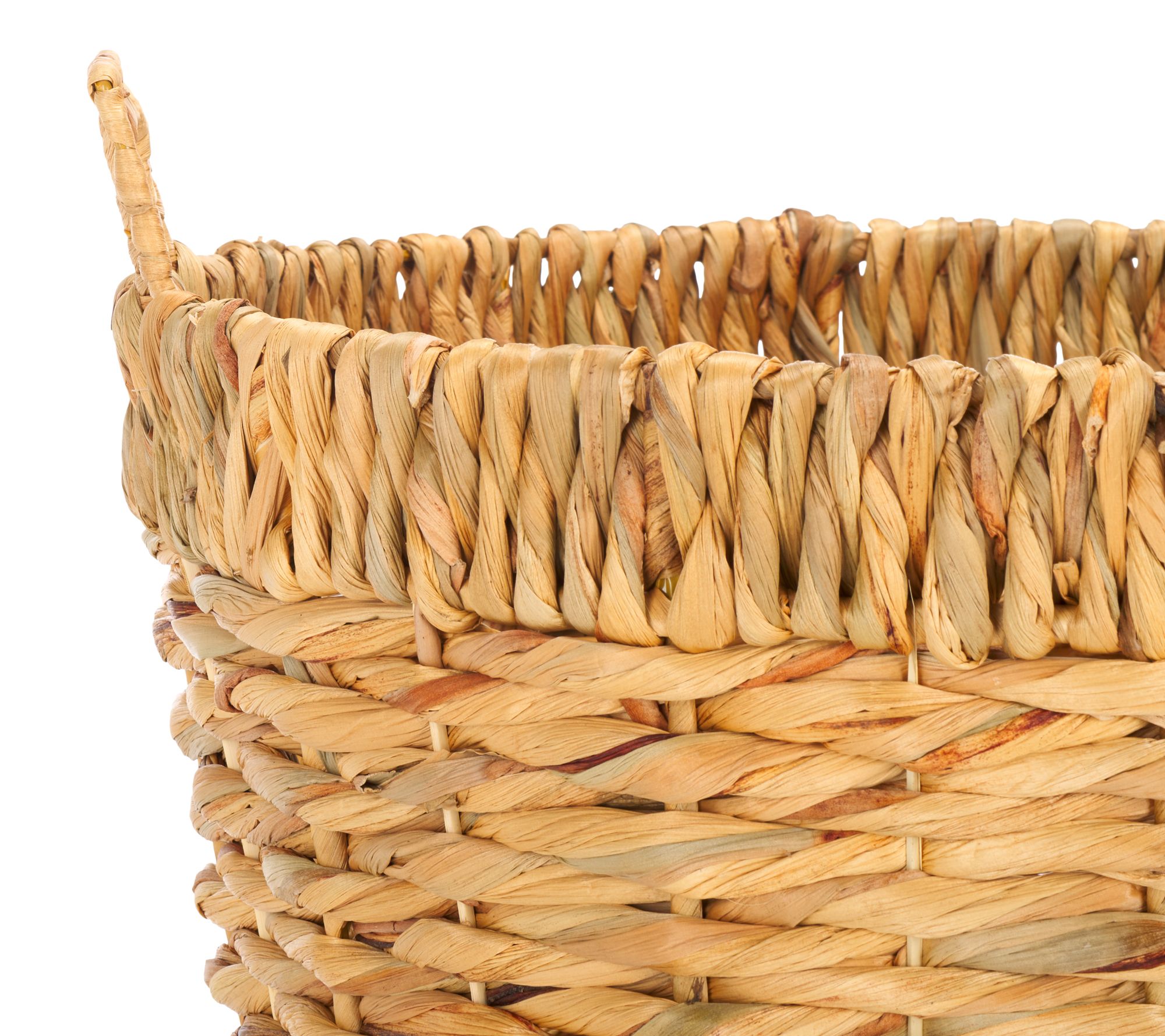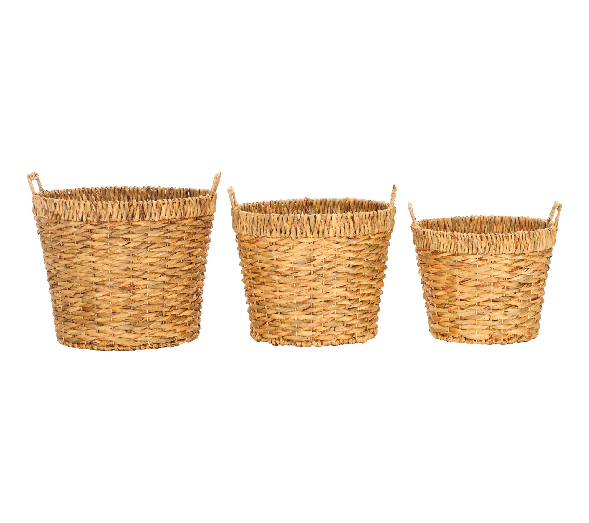 Effortlessly stow away any of life's little necessities in style with the Safavieh Fenwick set of three baskets. Crafted from woven natural water hyacinth, these baskets feature built-in handles for easy transport from room to room. From Safavieh.