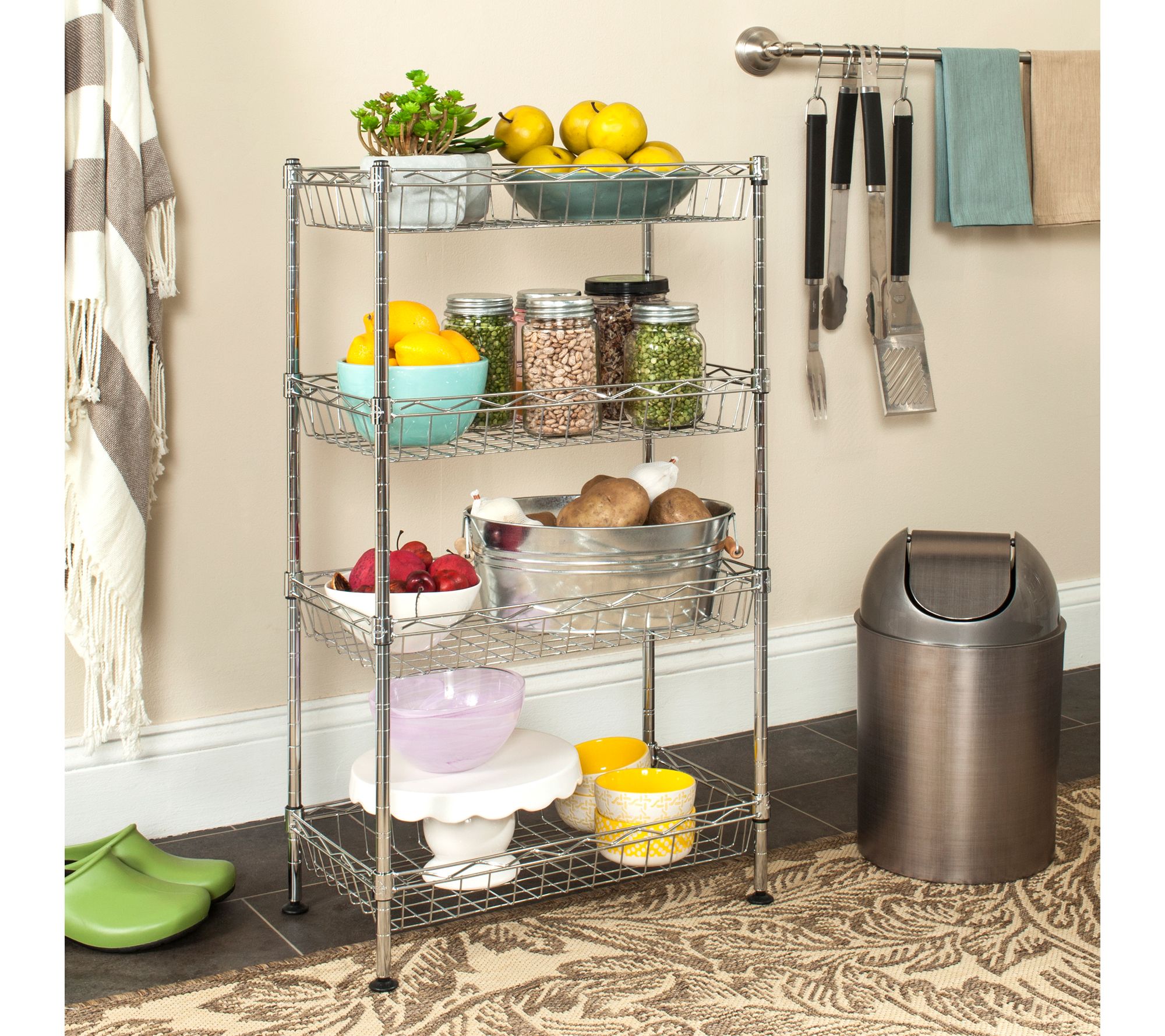With four adjustable shelves, this mini storage rack is your solution for the pantry, bedroom, bathroom, or garage. From Safavieh.