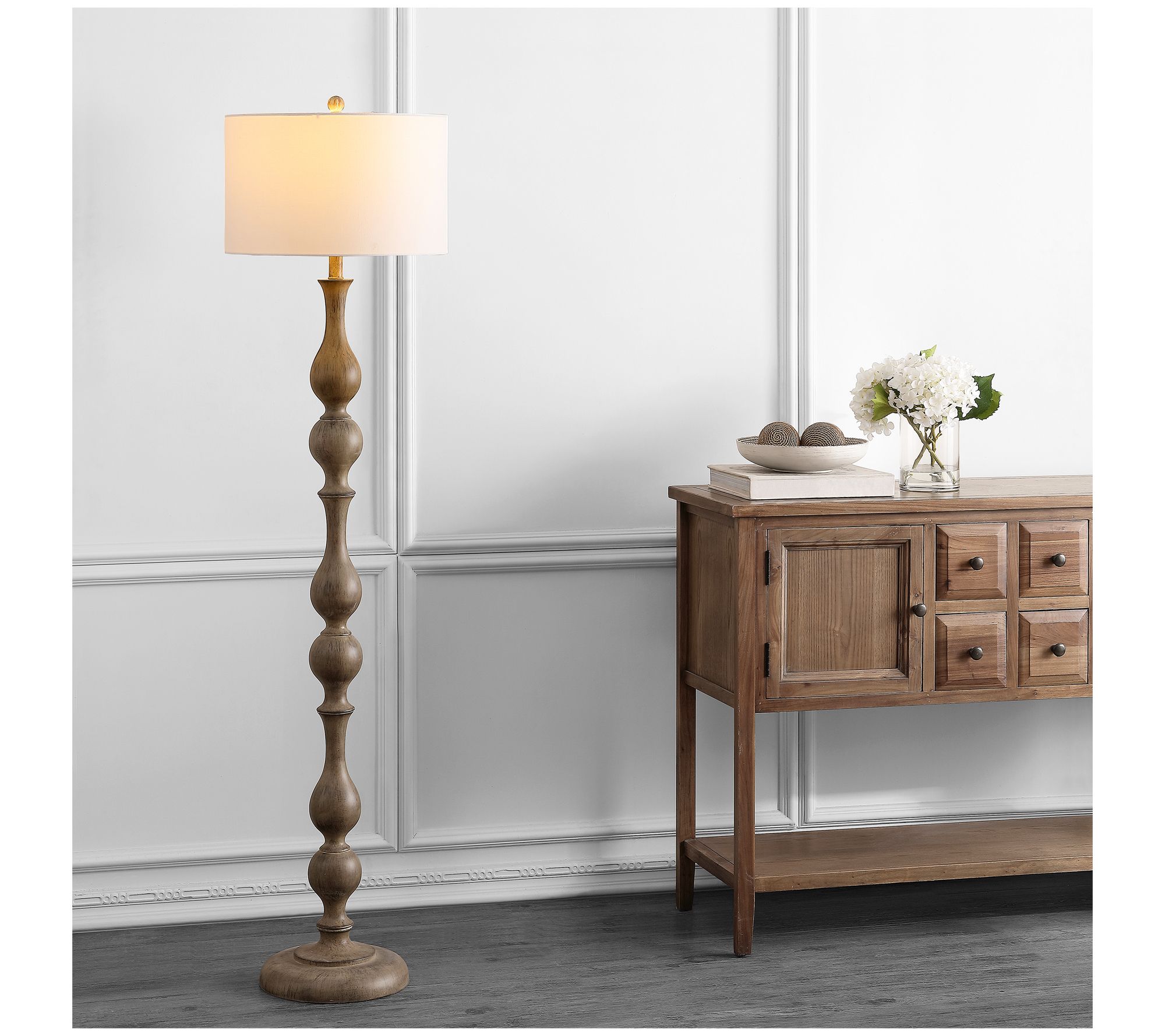 Finely crafted with gentle curves and a crisp white cotton shade, the Glendora floor lamp brings a touch of earthy texture and boho-chic style to any space. From Safavieh.