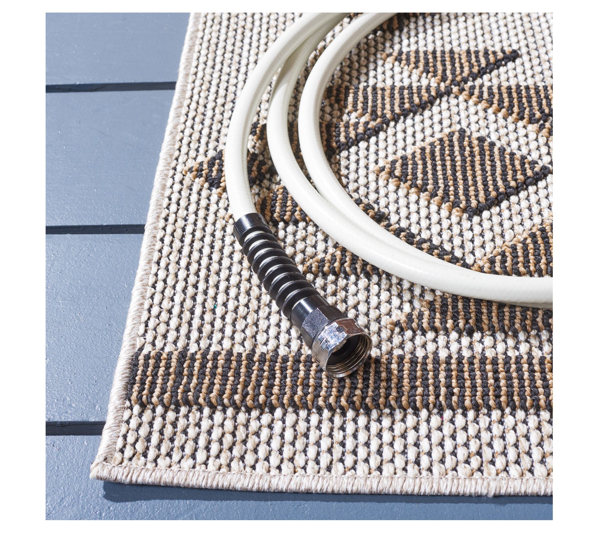 Elevate your patio with this geometric patterned rug crafted in a neutral palette that complements outdoor decor. From Safavieh.