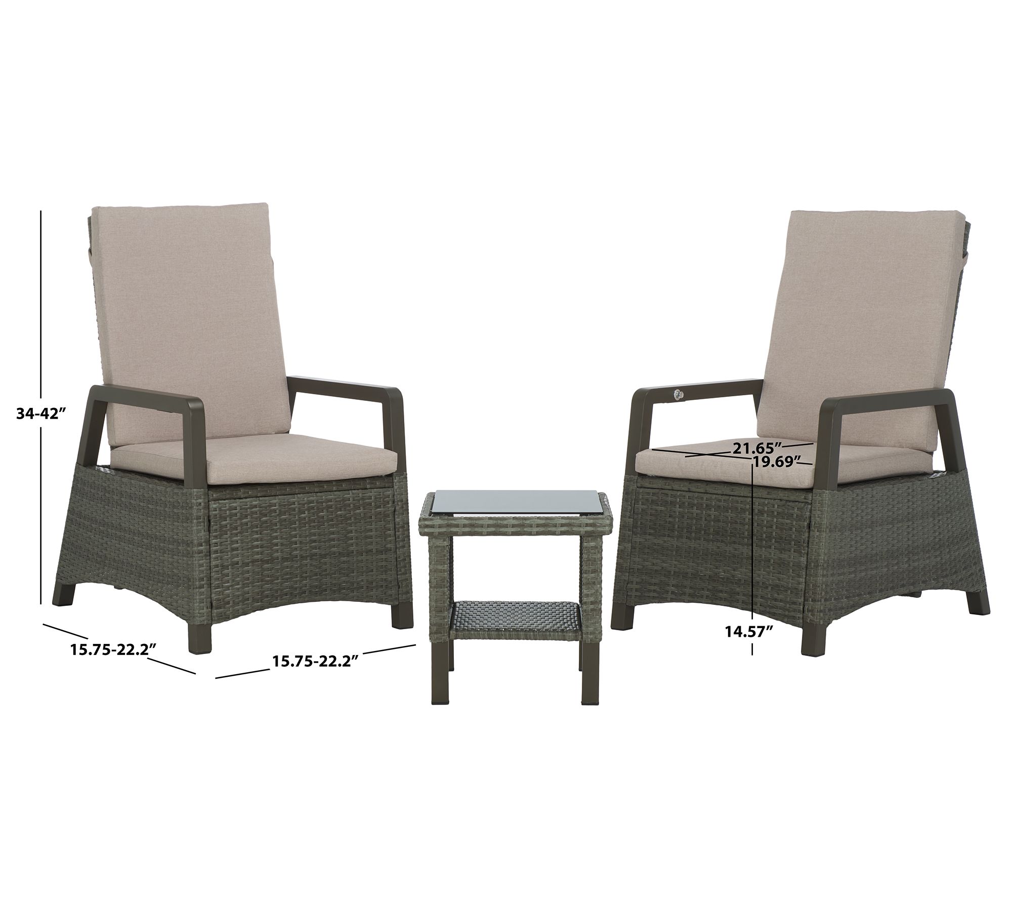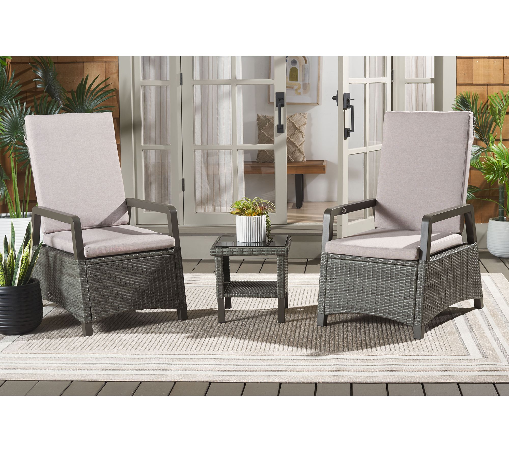 Elevate your outdoor leisure time with the Safavieh Herman Recliner three-piece set. Designed for ultimate relaxation, this set features expertly crafted steel and PE wicker for durability and weather resistance, complemented by soft fabric for added comfort. Enjoy superior seating with cushioned foam, perfect for lounging or socializing in your backyard. From Safavieh.