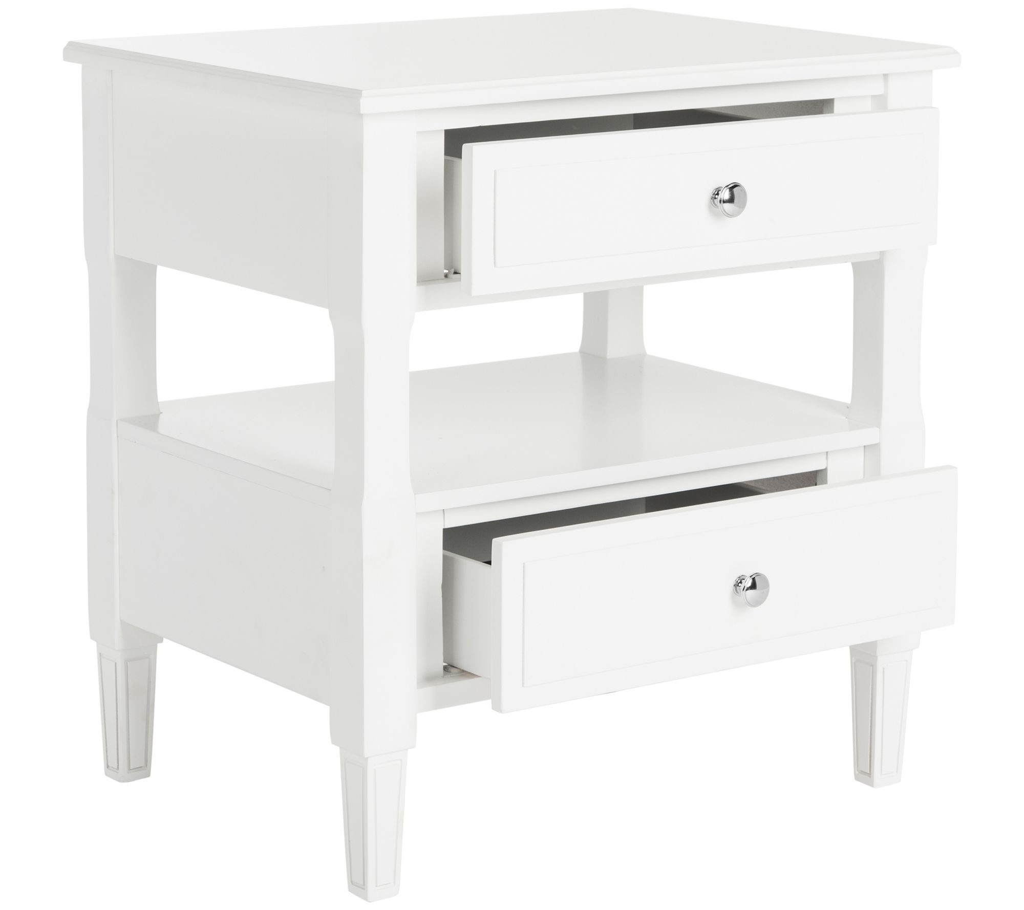 Finish your bedroom in French-country style with this Jenson two-drawer night stand. Inspired by a Burgundy retreat, it features intricate details and sleek silver-tone hardware. From Safavieh.
