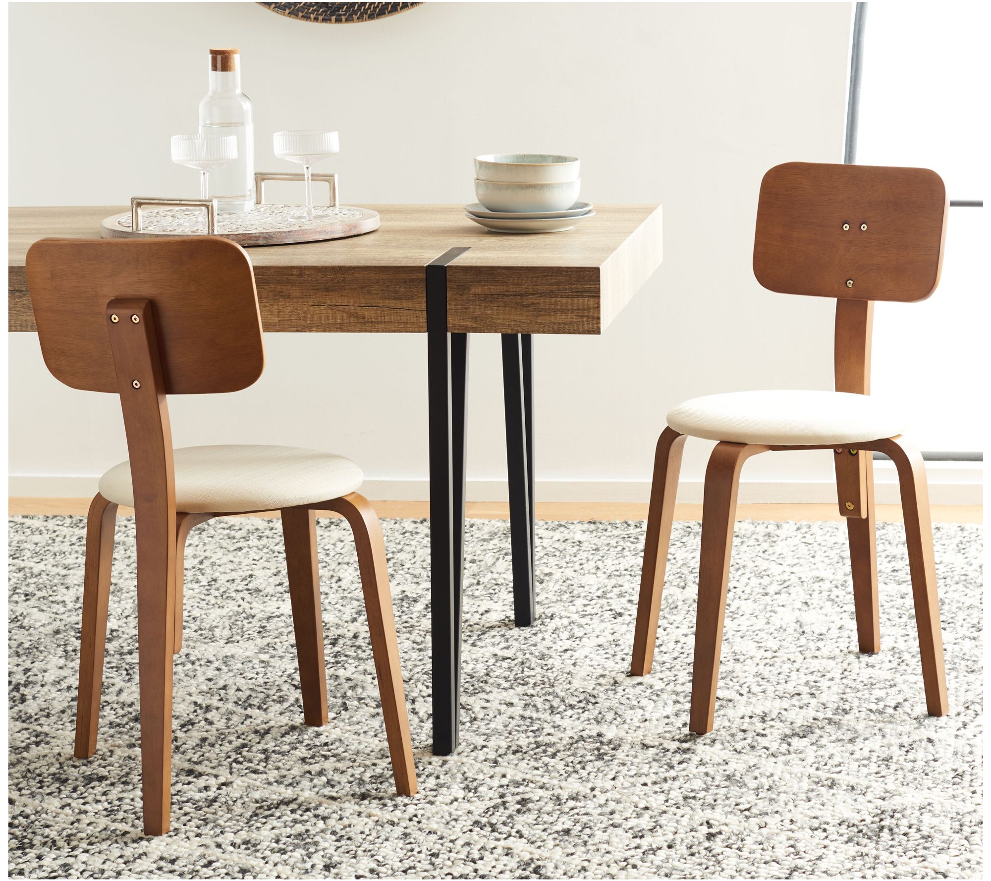 Enhance your dining area with the sleek Jo stackable dining chair set. These versatile chairs blend minimalist design with practical functionality, featuring a rectangular back with softened curves and a seamless round seat. Sturdy bentwood legs provide stability, while their lightweight nature allows for easy portability, arranging, and stacking. Elevate your dining space with this sophisticated addition. From Safavieh.