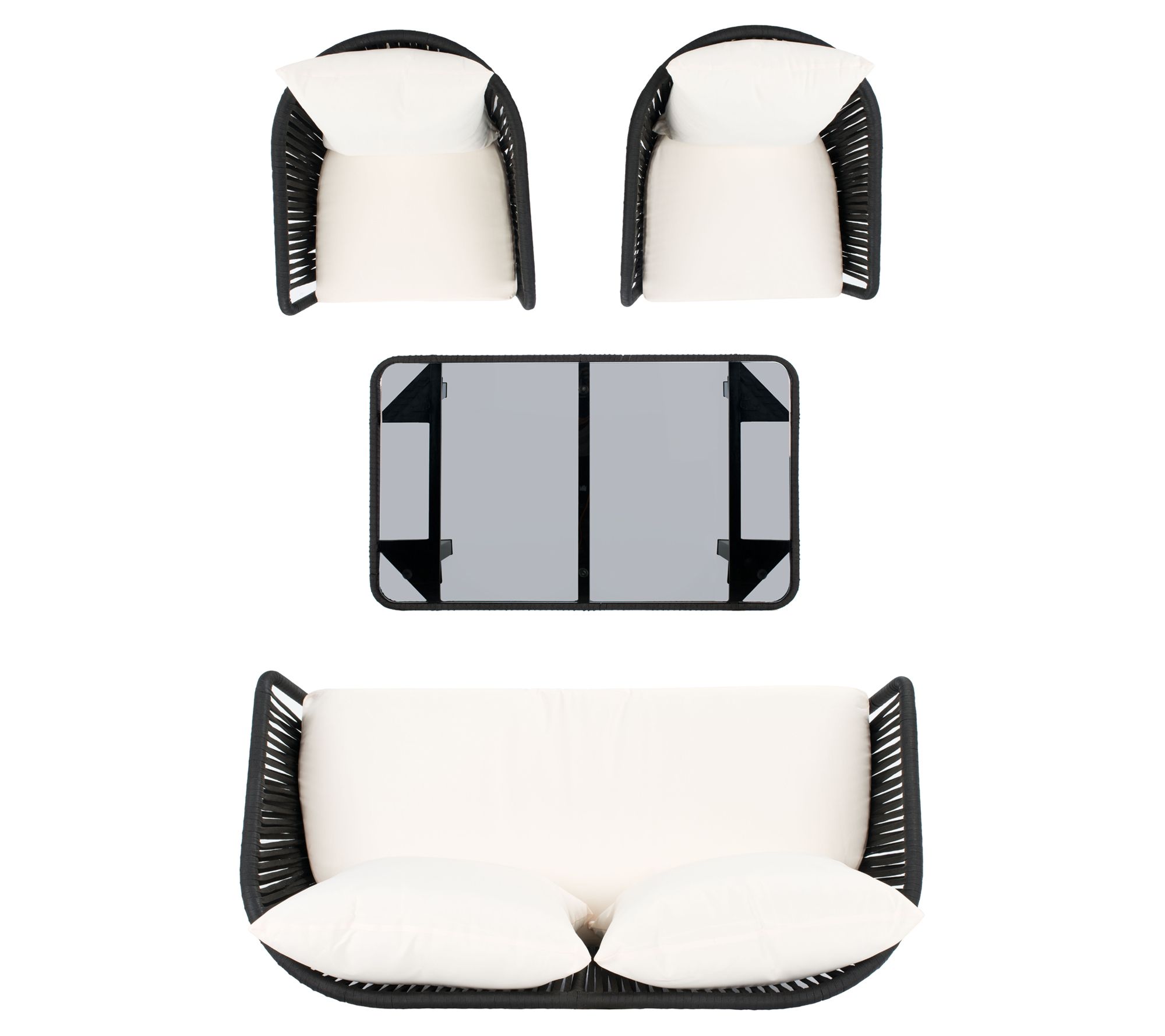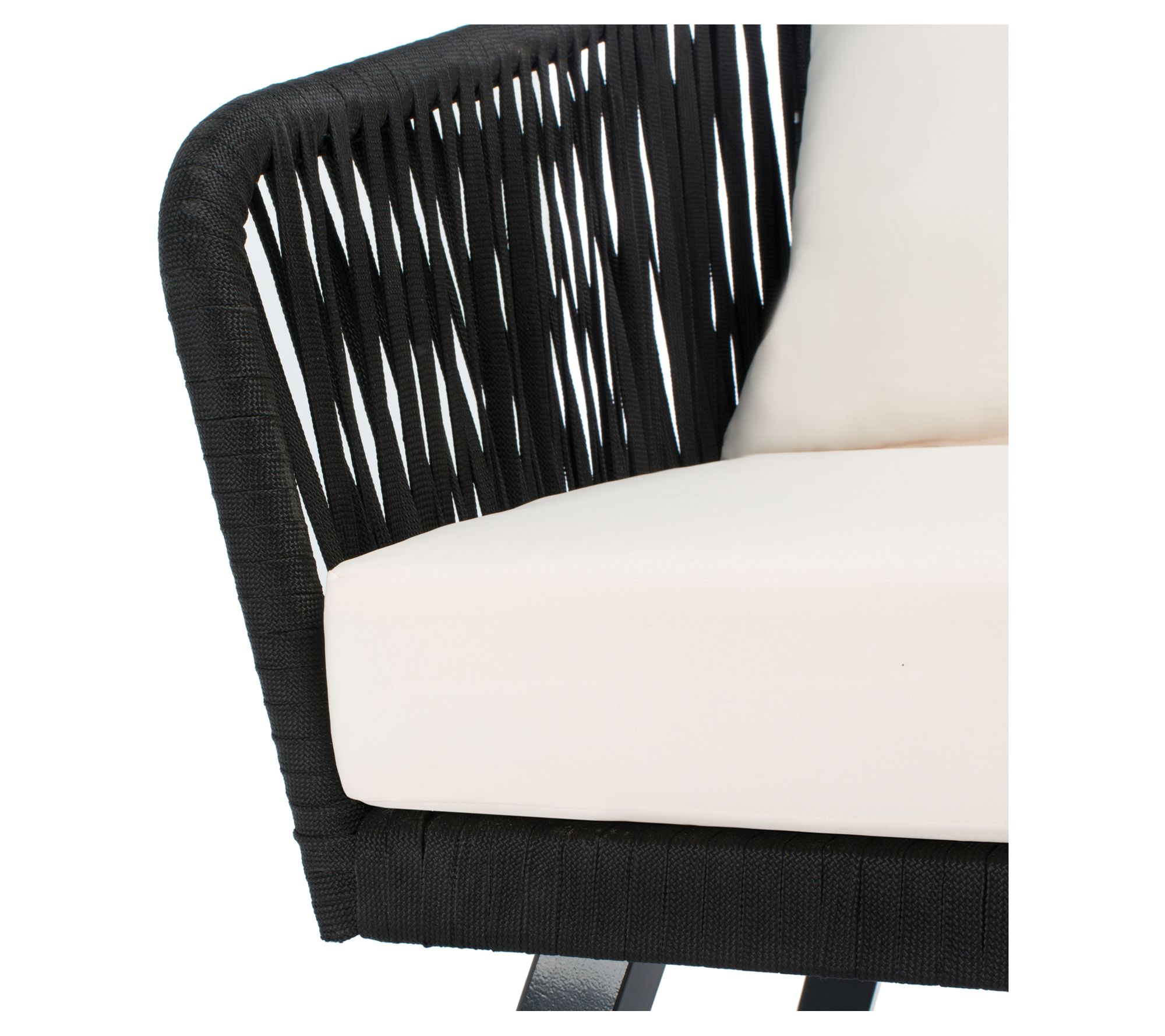 Flaunting familiar silhouettes and beautiful rope detailing, the Jorda four-piece living set revitalizes classic design for today's patio or backyard decor. From Safavieh.