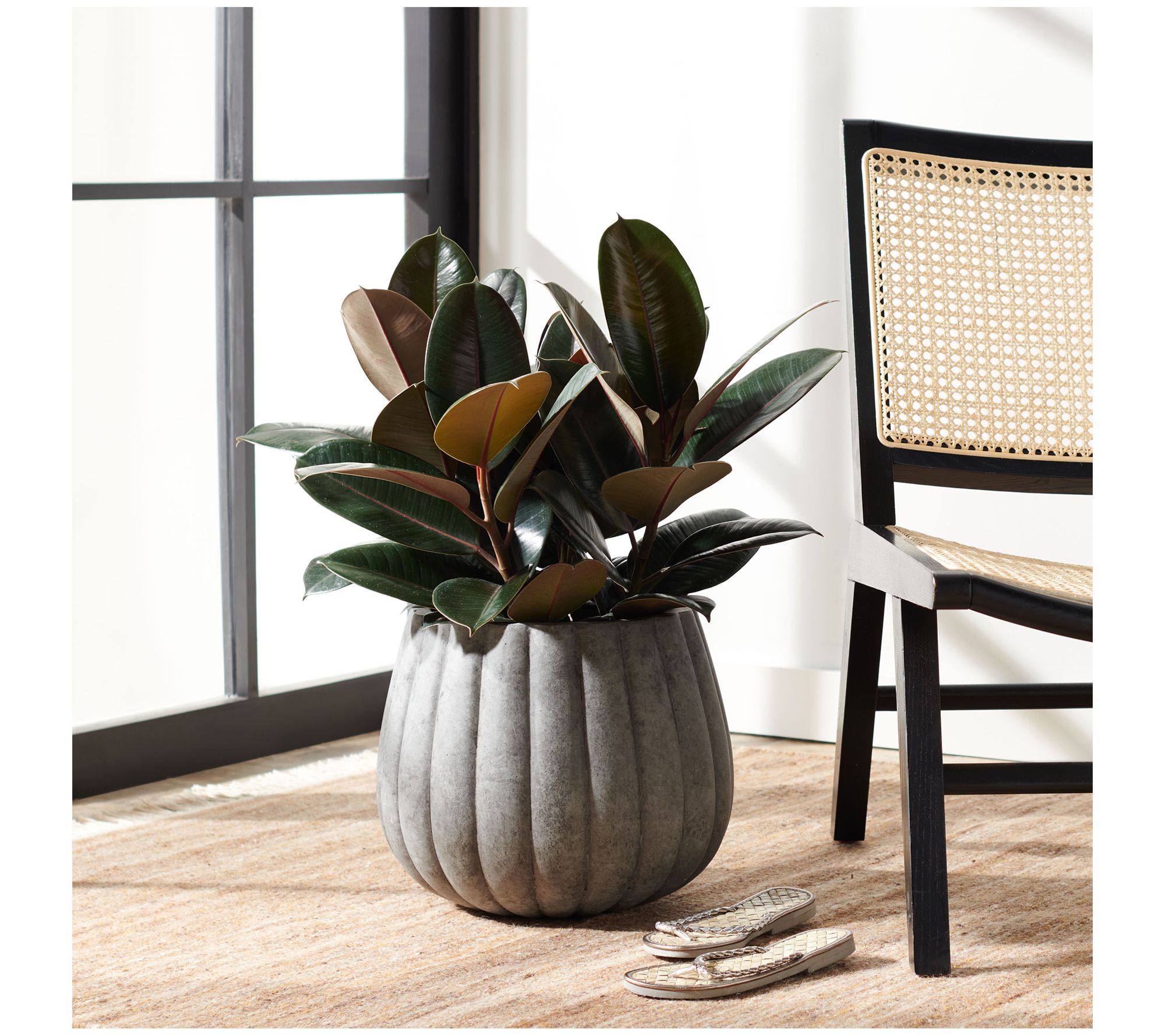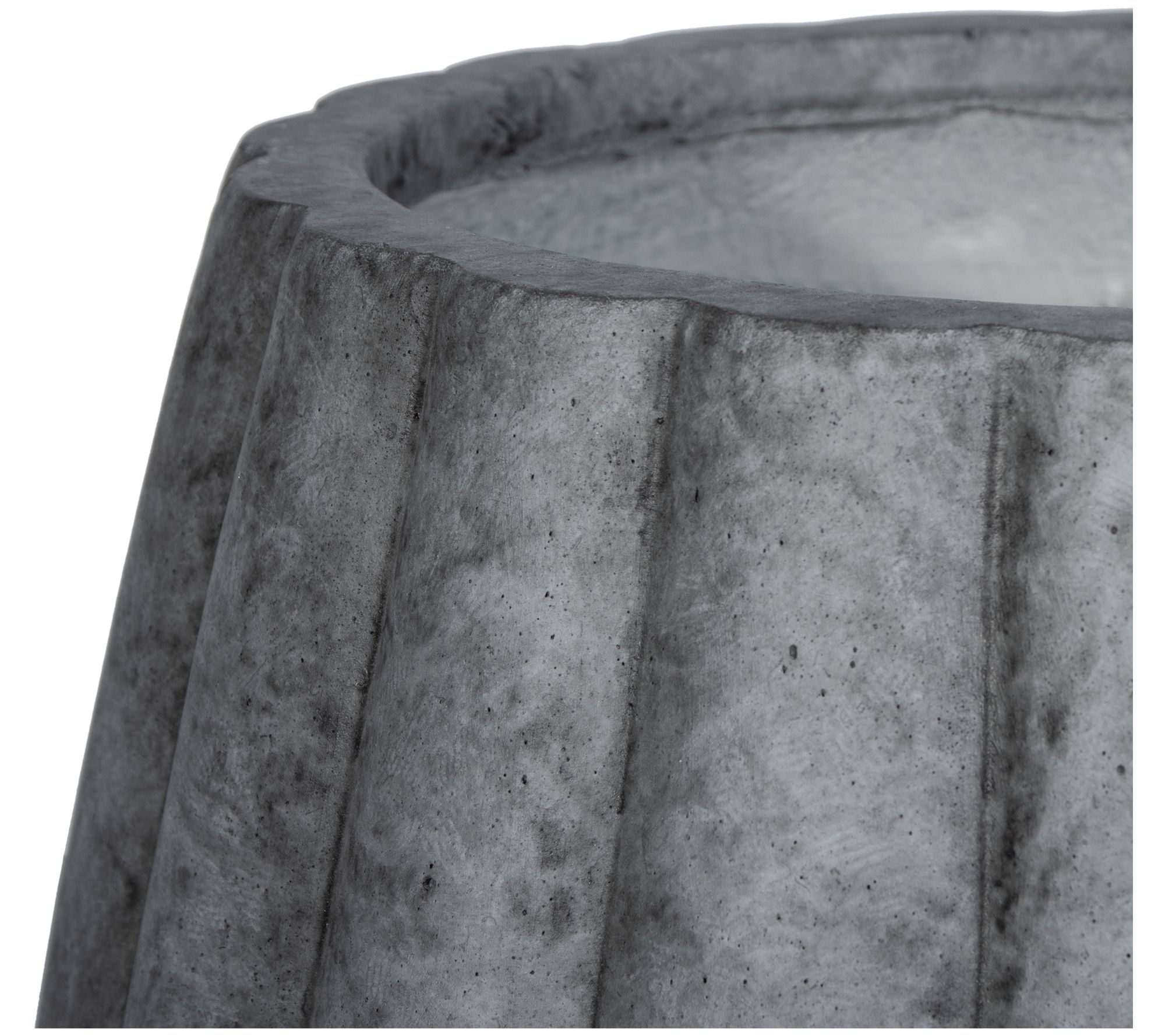 Transform your garden or patio into a modern oasis with the Kaston planter, featuring a unique textured design that mimics the ripples of a pumpkin. Crafted from a durable blend of cement, fiberglass, sand, and stone, this dark gray planter is ideal for nurturing your plants while adding a contemporary touch to your space. From Safavieh.