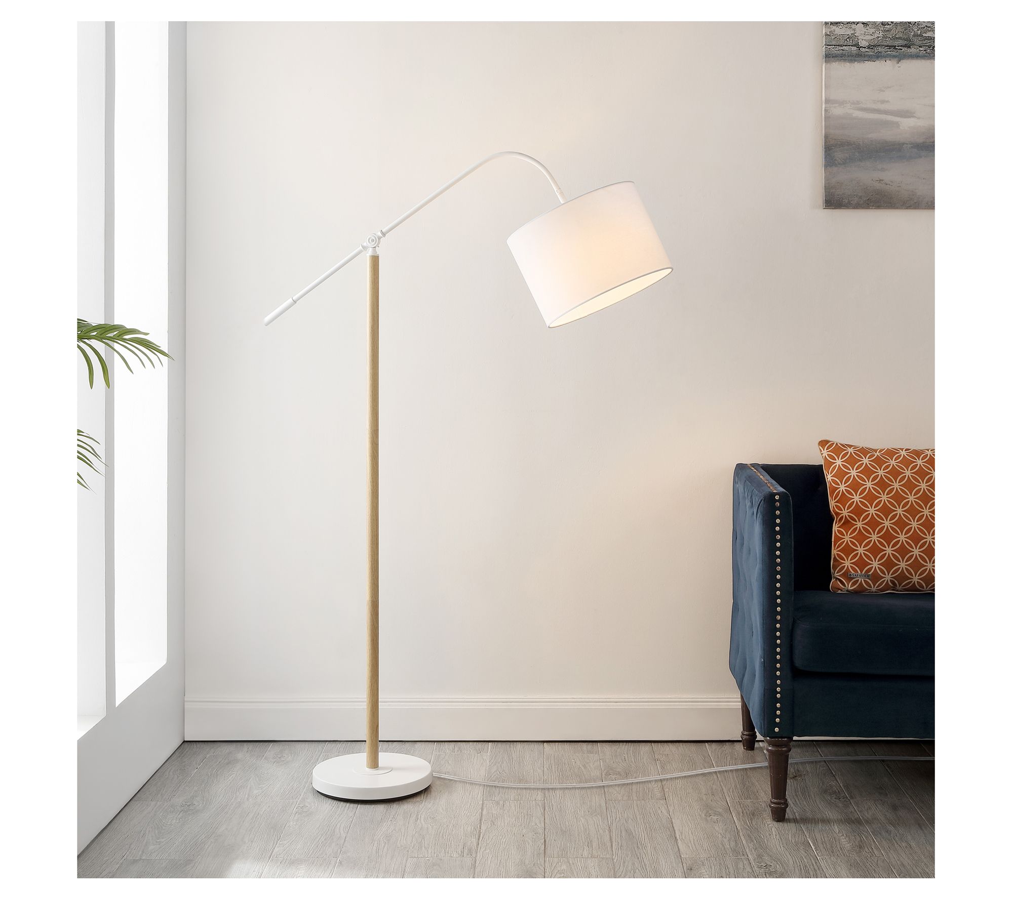 Illuminate your space with the sophisticated design of the Safavieh Levitt floor lamp by Valerie. Its sleek, modern drum shade and articulating arm offer both style and functionality, making it an ideal choice for enhancing a reading nook or workspace. From Safavieh.