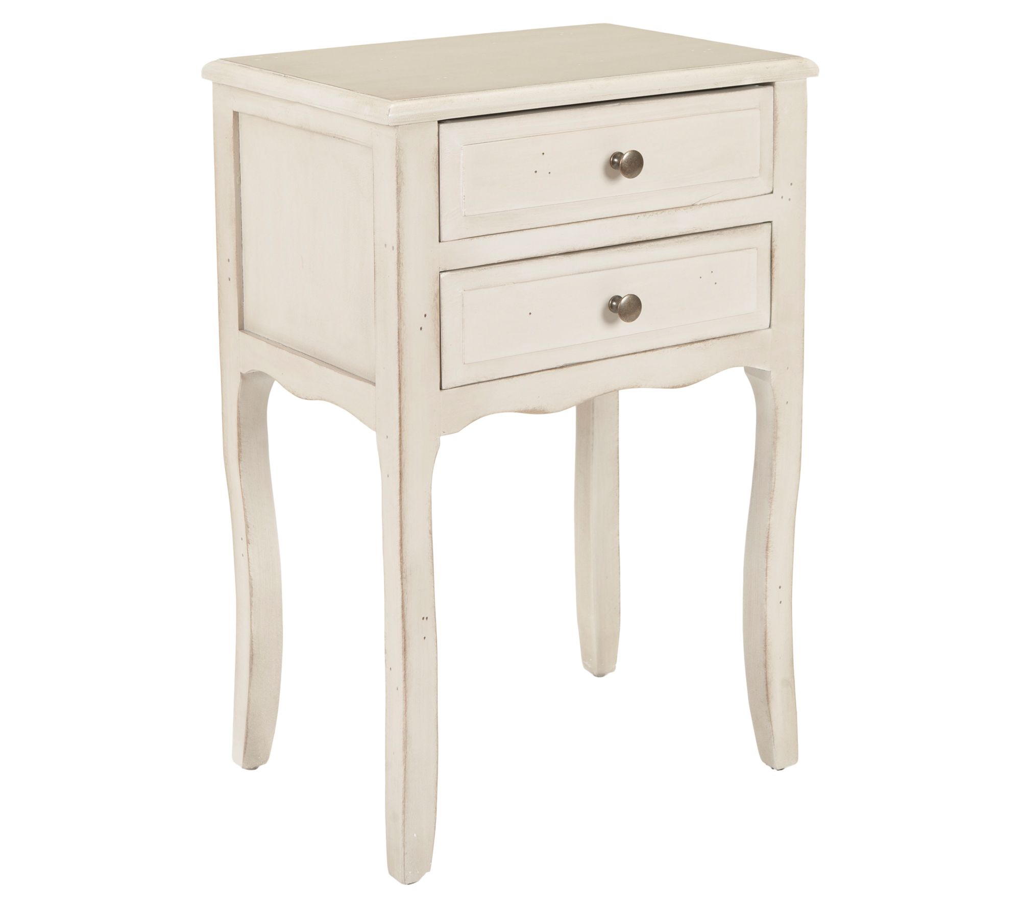 • Two-drawer design with scalloped apron and subtle cabriole legs