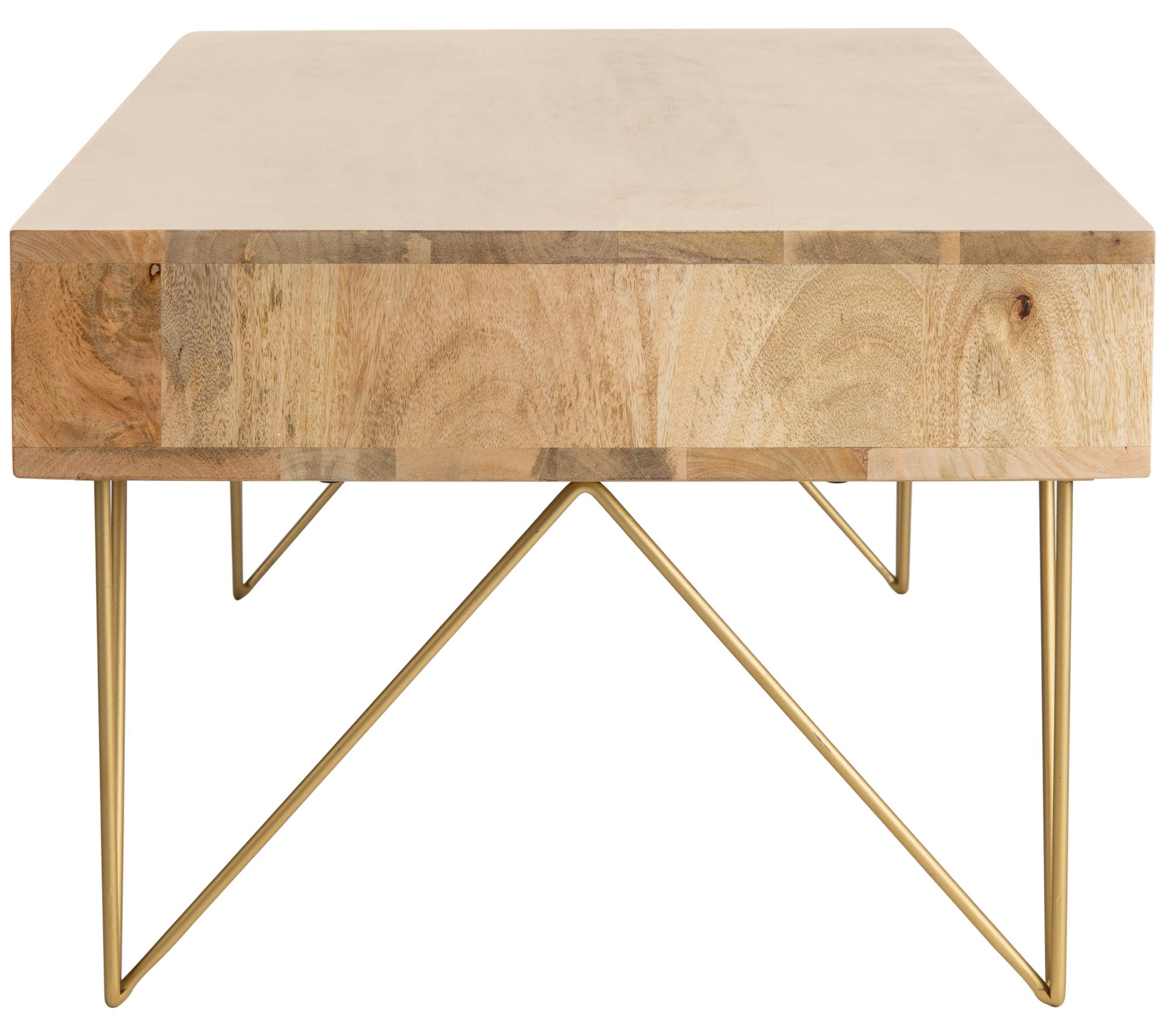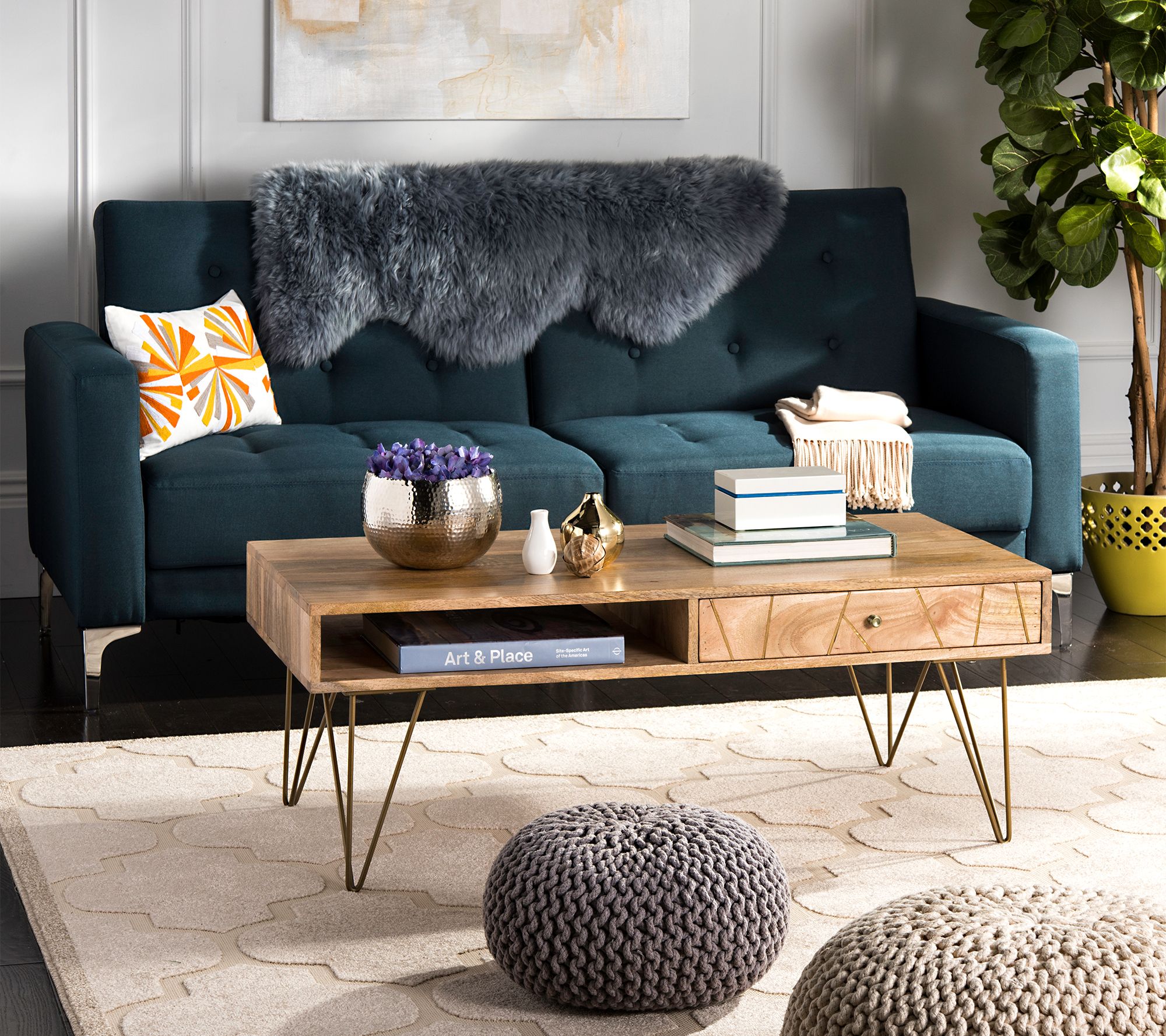 Tie your living room together with this retro-inspired Marigold coffee table. Crafted with mango wood and iron hairpin legs, it makes a stunning focal point for your space. From Safavieh.