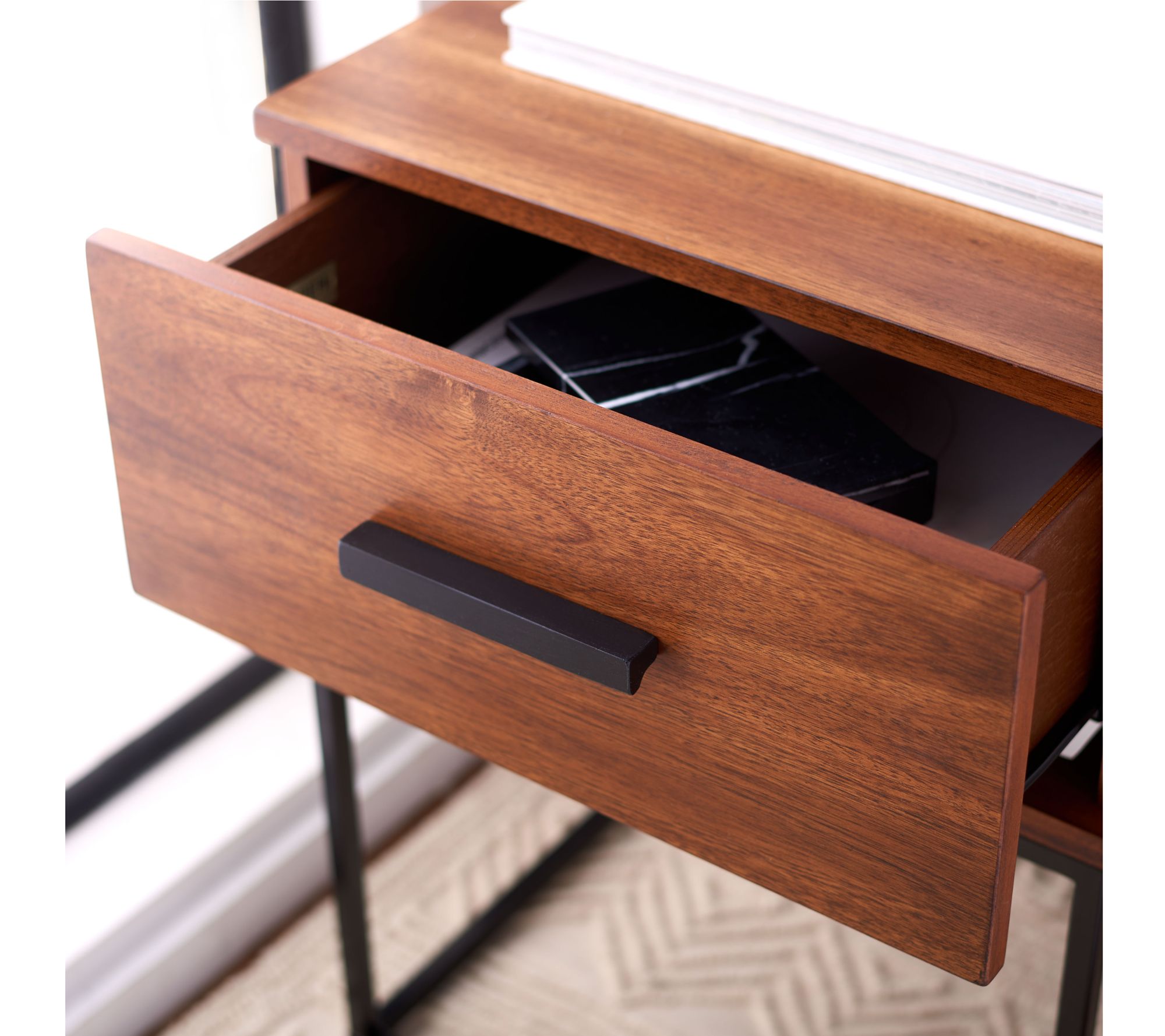 Elevate your bedroom with this modern Mahogany nightstand. From Safavieh.
