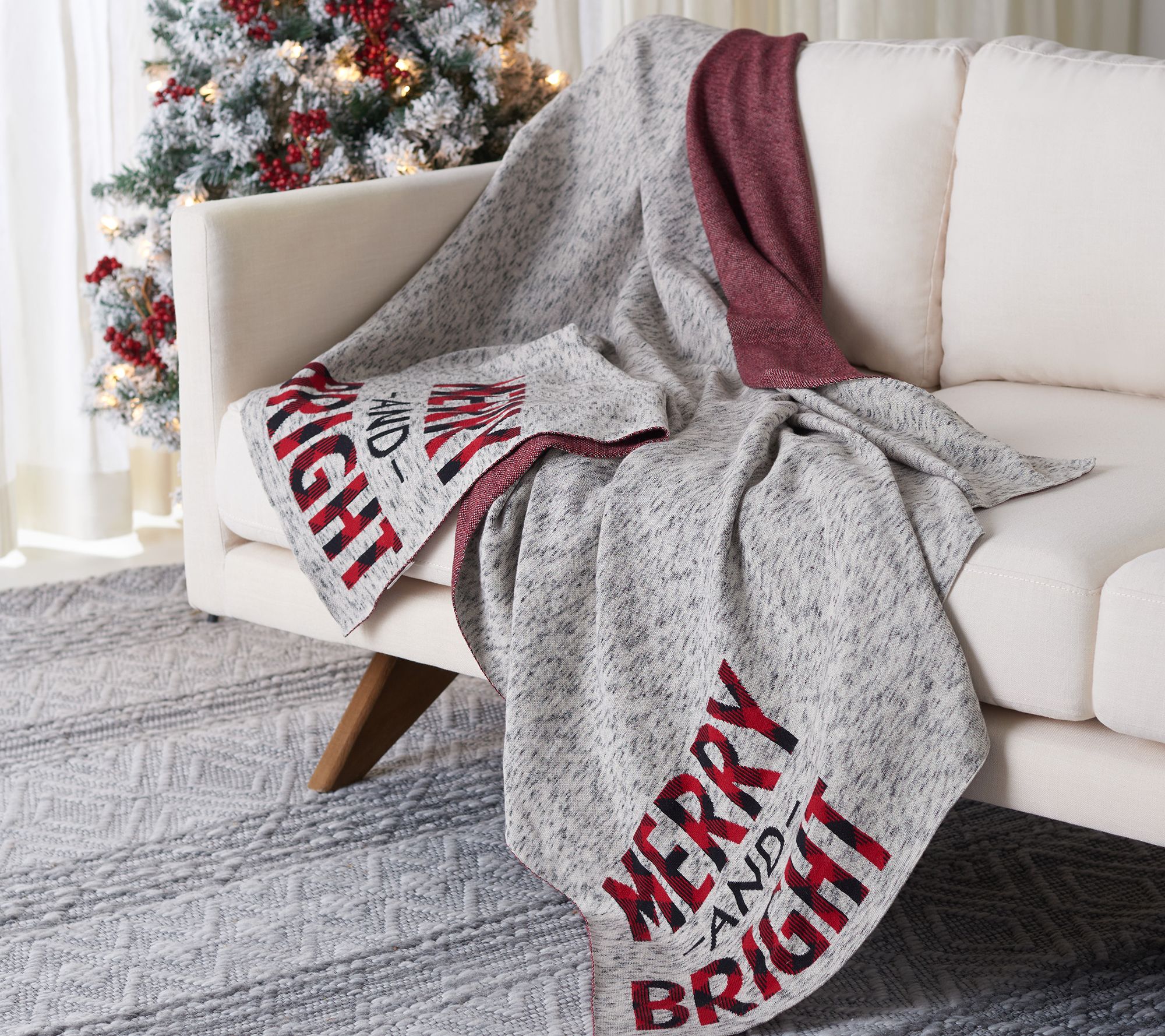 Wrap up in the warmth and joy of the holiday season with the Merry And Bright throw, perfect for cozy gatherings and festive evenings. Its bold gingham message adds a cheerful touch to any room. From Safavieh.