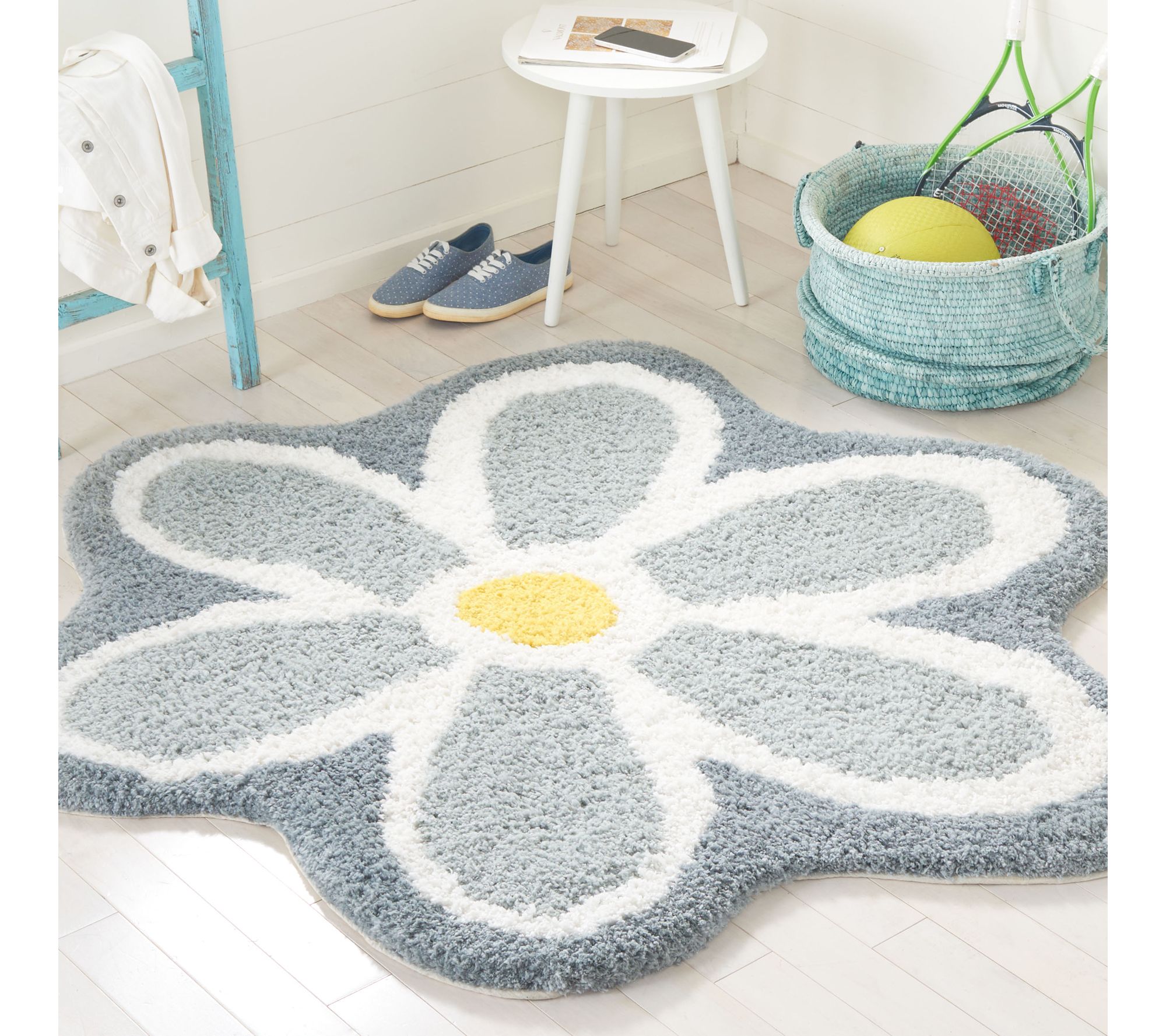 Brighten up your favorite room with this charming round rug, featuring a cheerful daisy design and plush tufted texture that invites you to kick off your shoes and relax. Its vibrant floral motif and sunny yellow center add a touch of whimsy, while the soft surface offers comfort underfoot for reading nooks, playrooms, or cozy corners. From Safavieh.