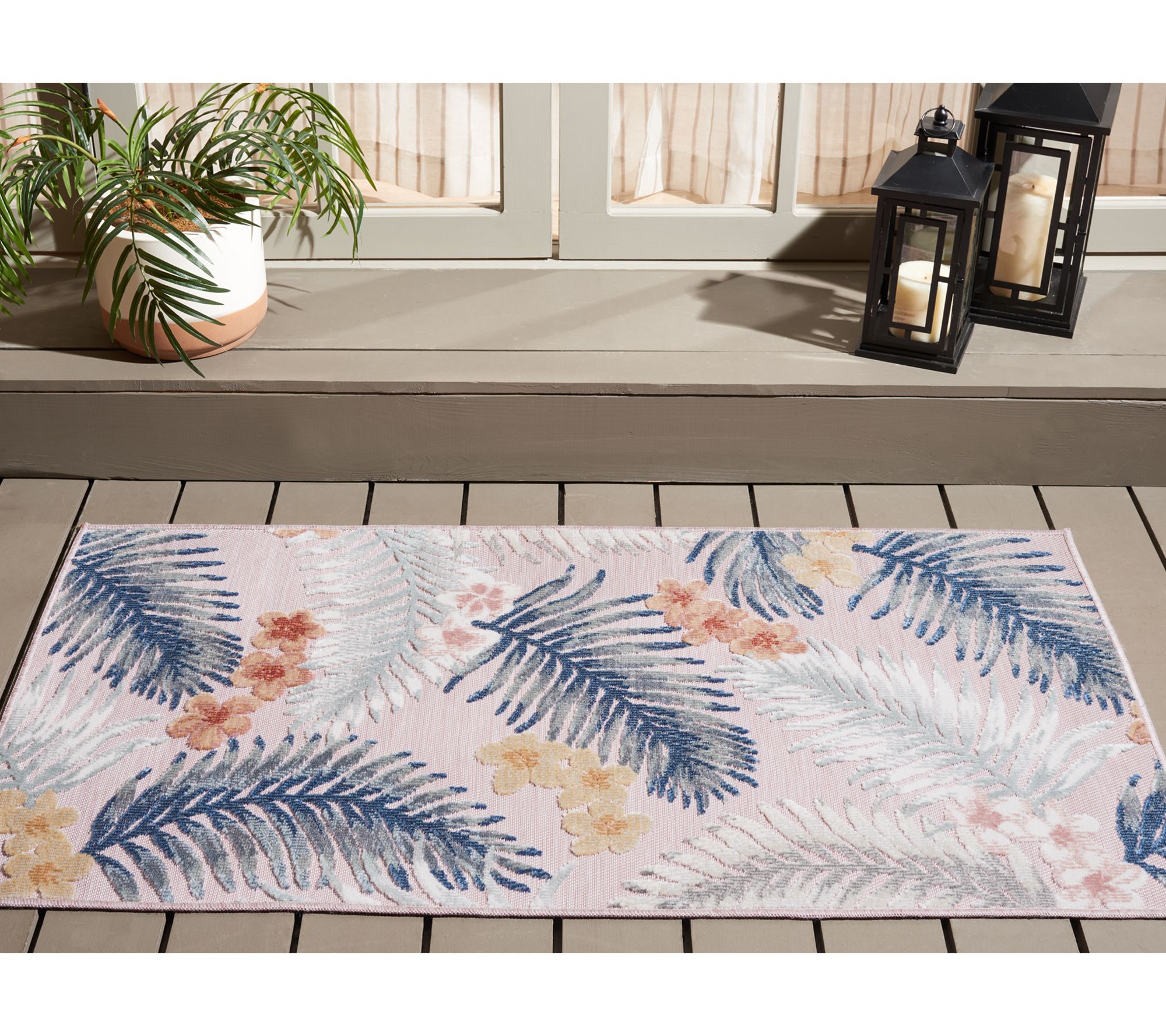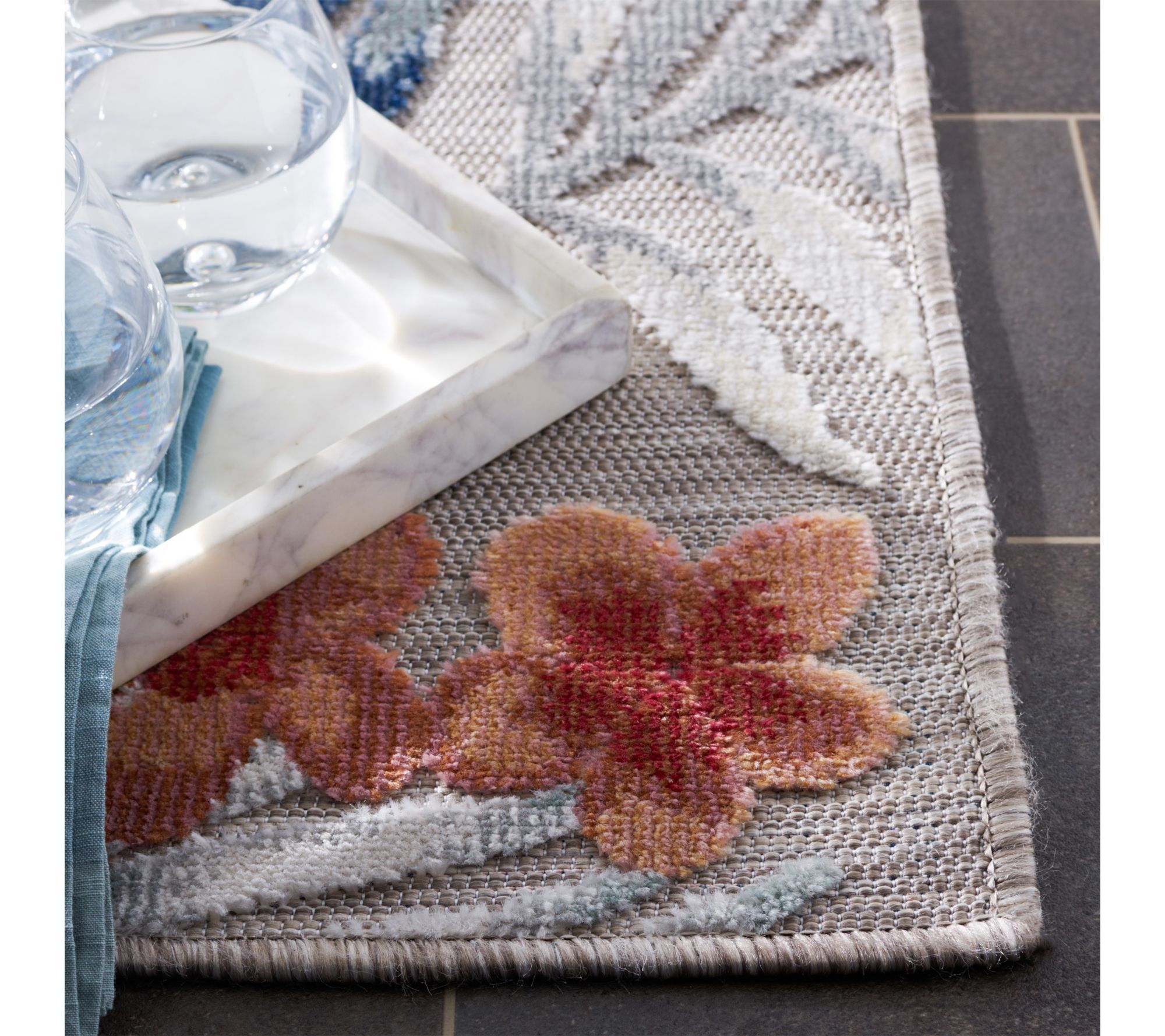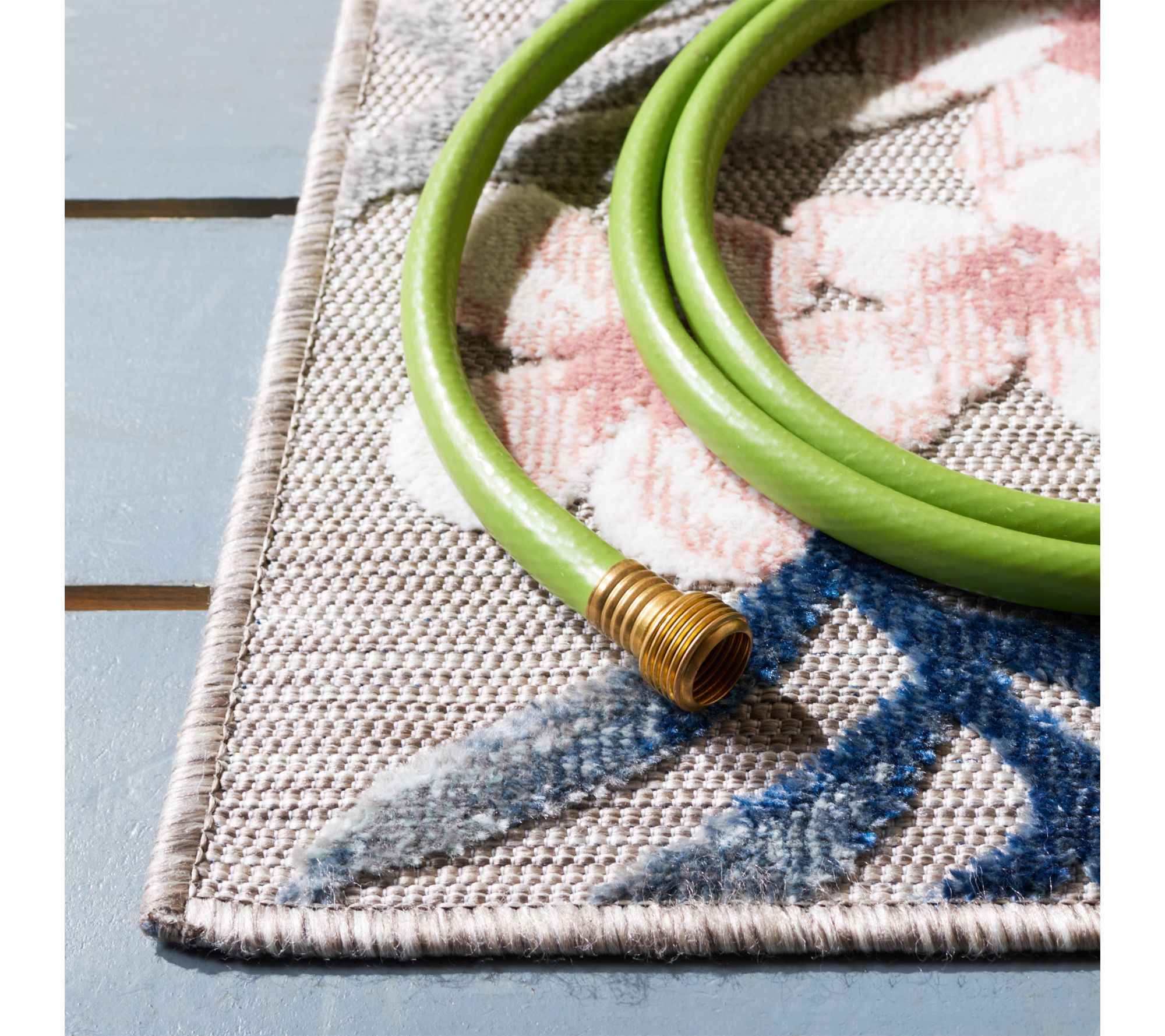 A lively rug transforms patios, kitchens, and playrooms into inviting spots where friends and family gather. Take in the bold patterns and vibrant colors, designed to stand up to sunny days, rainy weather, and bustling activity. Cleaning is simple -- just hose off and line dry -- so you can enjoy style indoors or out all year. From Safavieh.