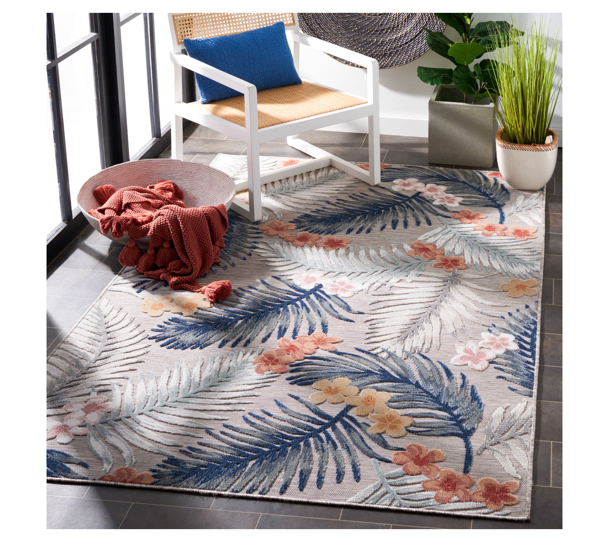 Create a lively foundation for gatherings, playtime, or quiet moments with this bold palm-inspired rug. Designed to stand up to sun, rain, and busy feet, it brings effortless color and durability to patios, kitchens, or playrooms and refreshes instantly -- just rinse and hang dry. From Safavieh.