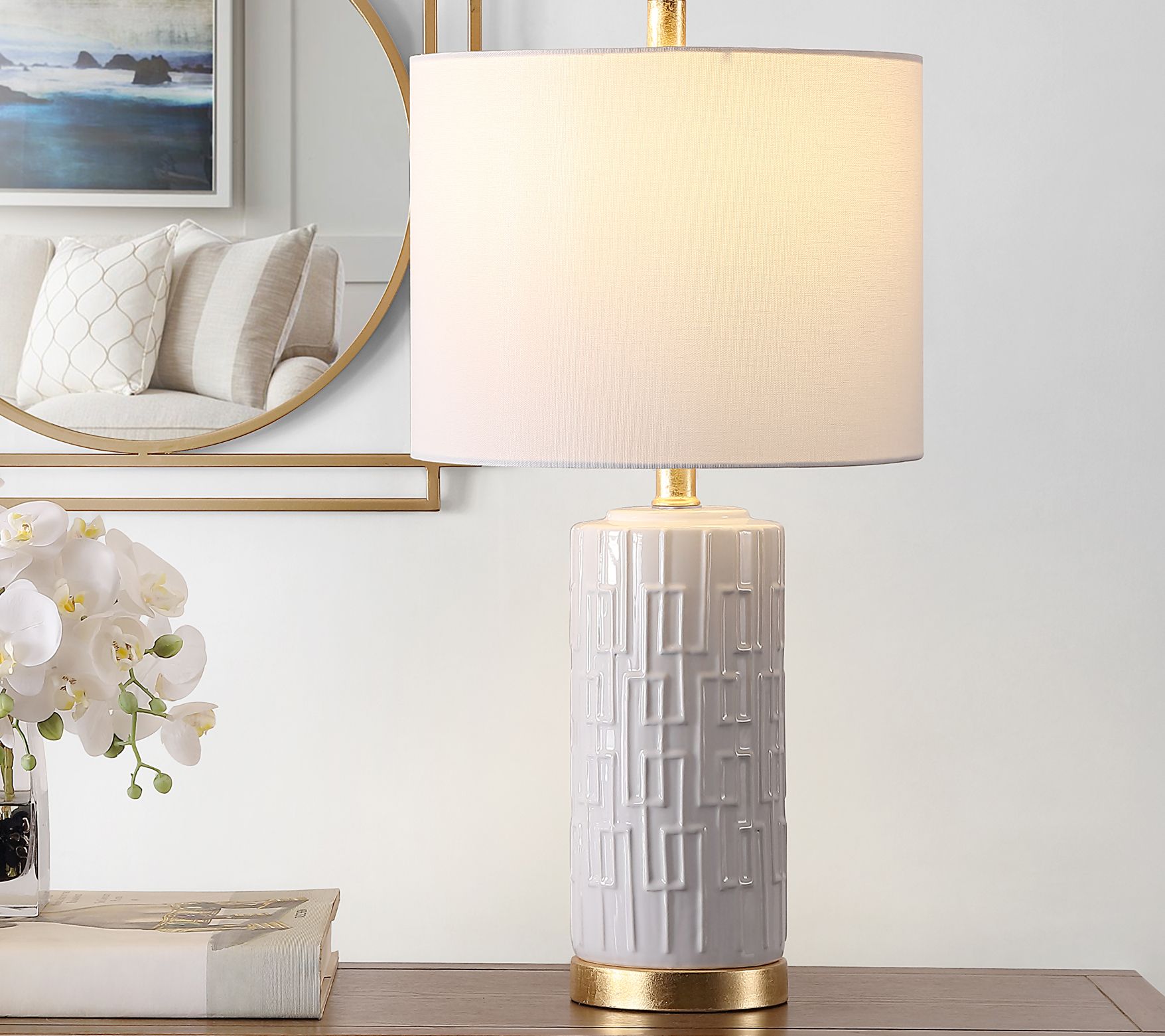 Bring a sophisticated atmosphere to any room with this upscale table lamp boasting elegant gold leaf details. From Safavieh.