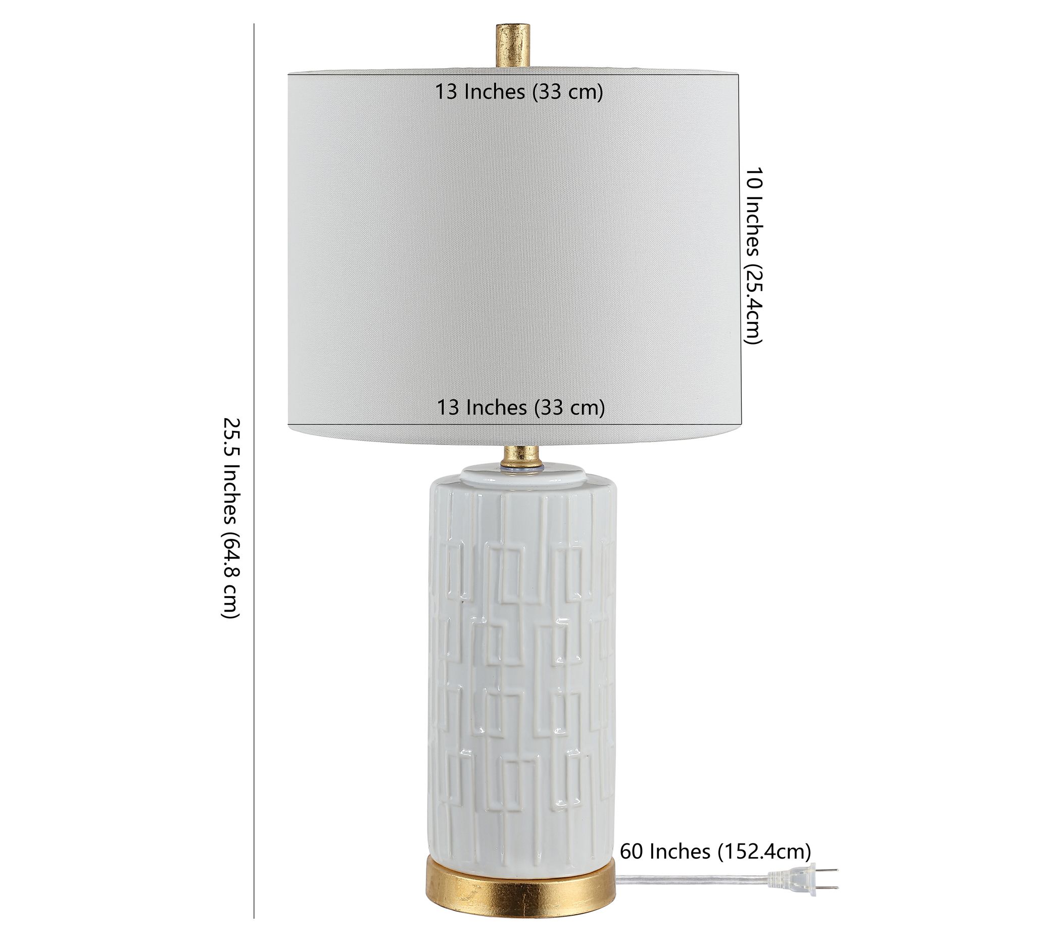 • Includes lamp, cotton drum shade, finial, harp, 9W A19 LED bulb, and assembly instructions