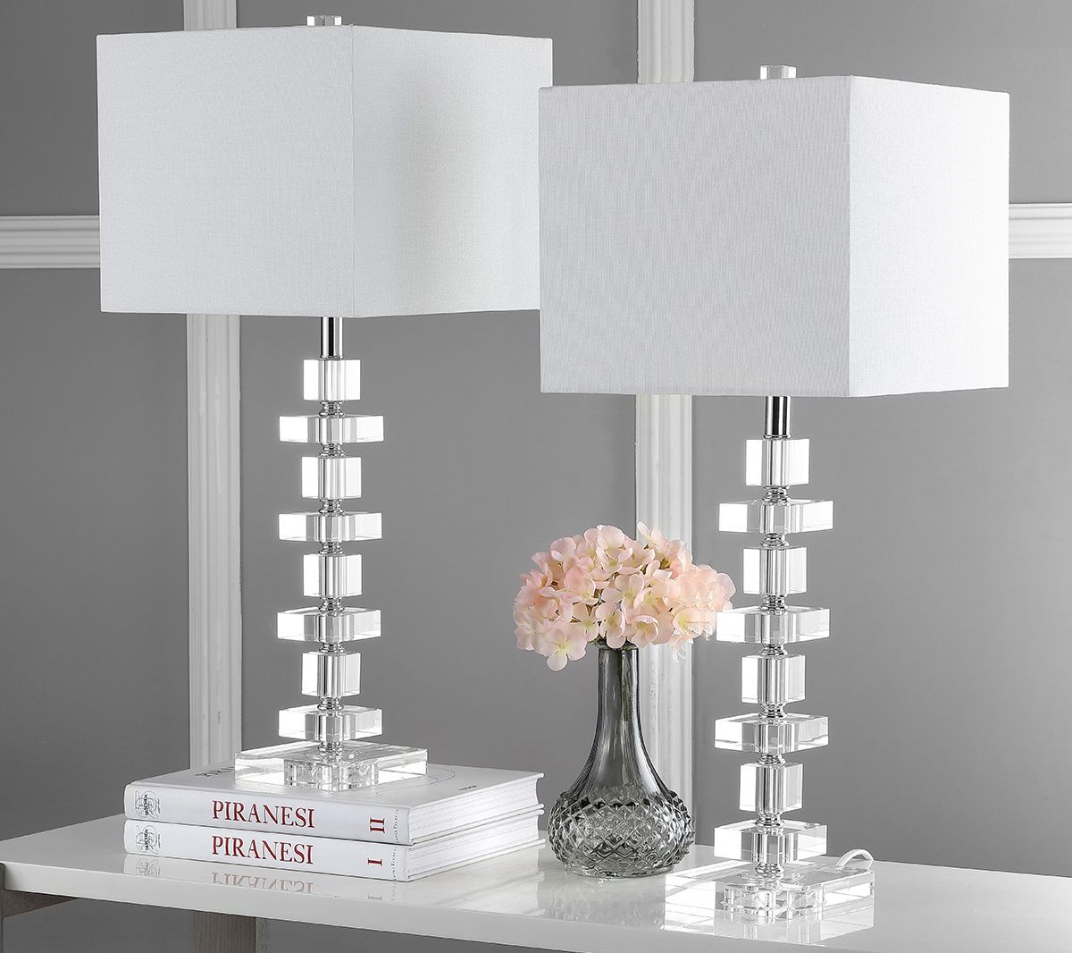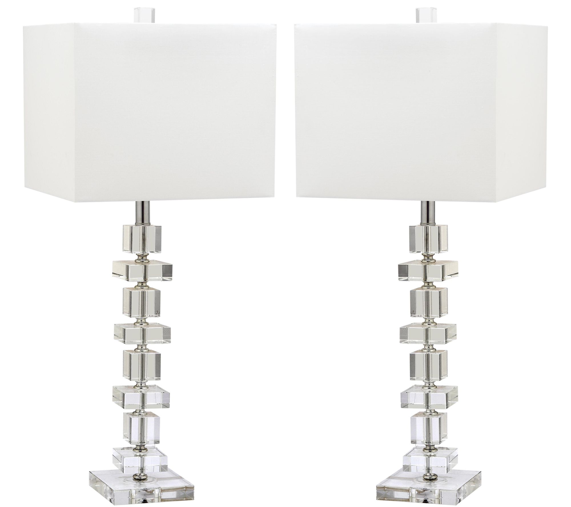 Make a dramatic statement with a decorator touch with this set of two crystal lamps. The geometric crystal blocks recall the glamour of Art Deco styling. From Safavieh.