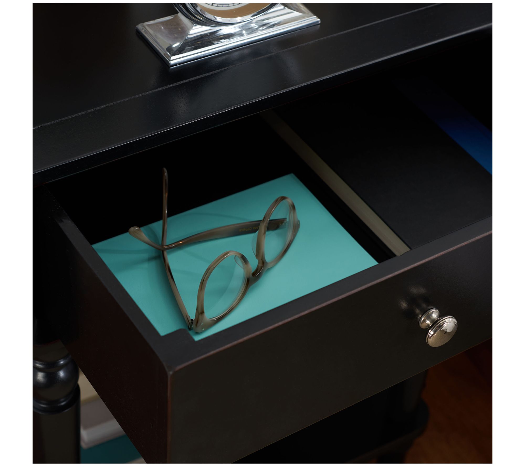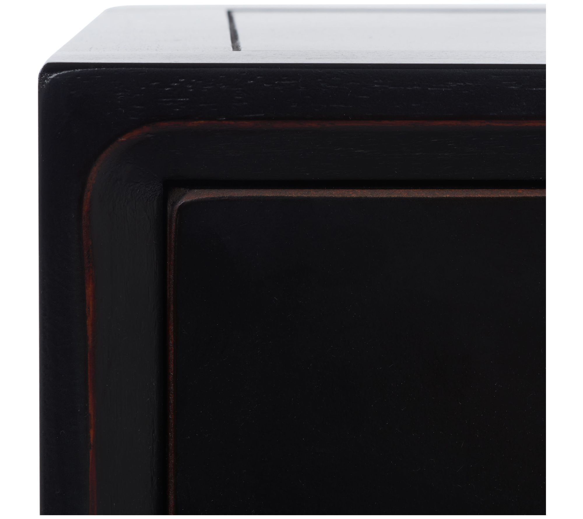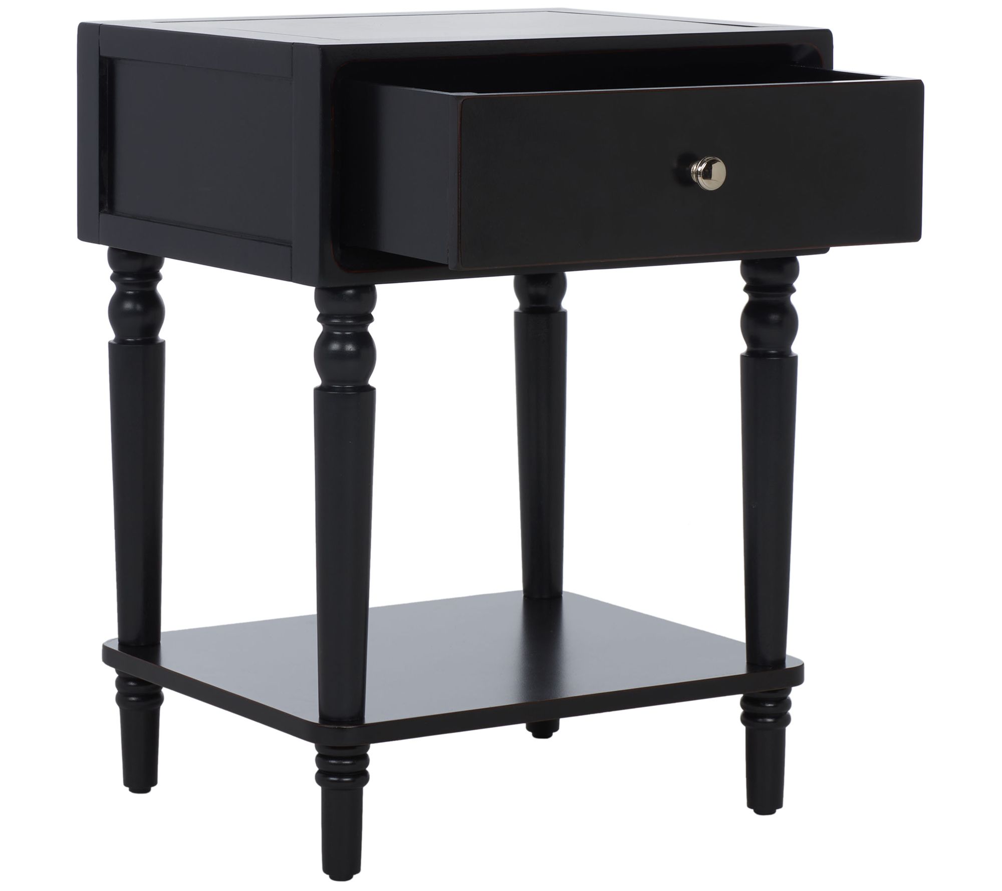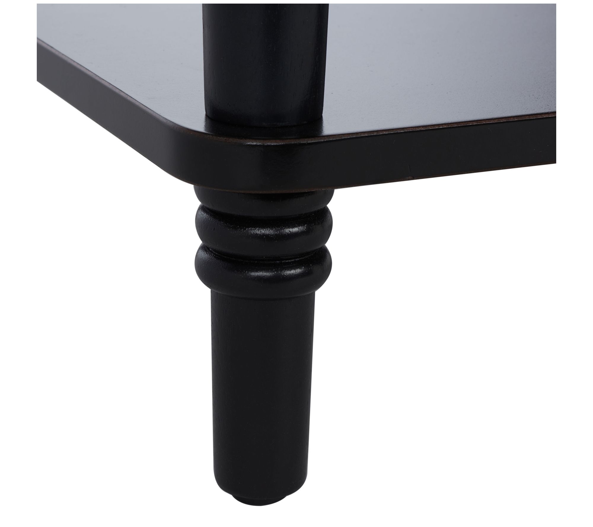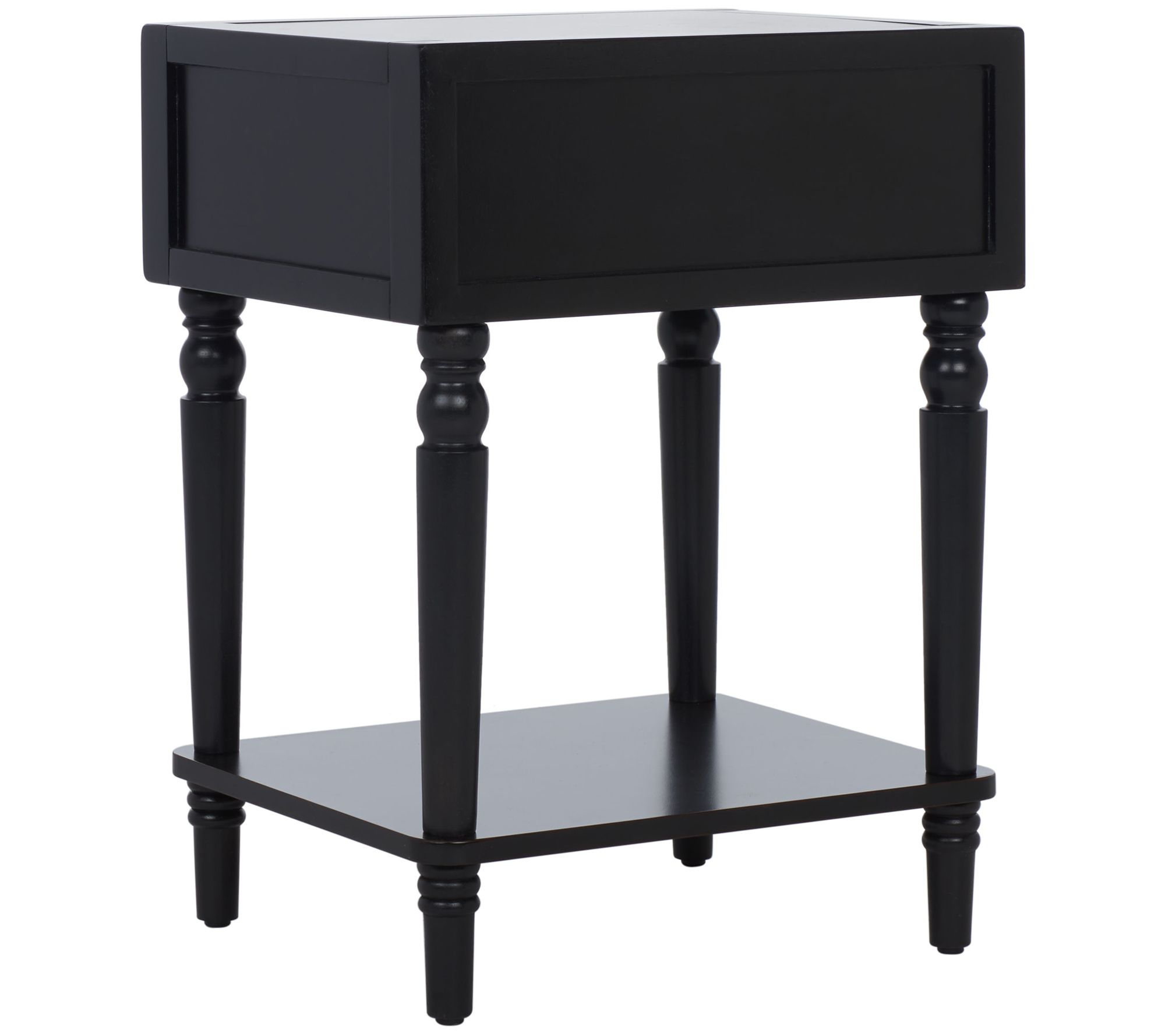 Bring a touch of country style and smart storage to your space with the Siobhan accent table. This table, crafted from pine wood in a sleek black painted finish, features clean lines and sculptured legs that embody the essence of transitional design. Perfect for the bedroom, living room, or home office, it combines functionality with timeless elegance. From Safavieh.