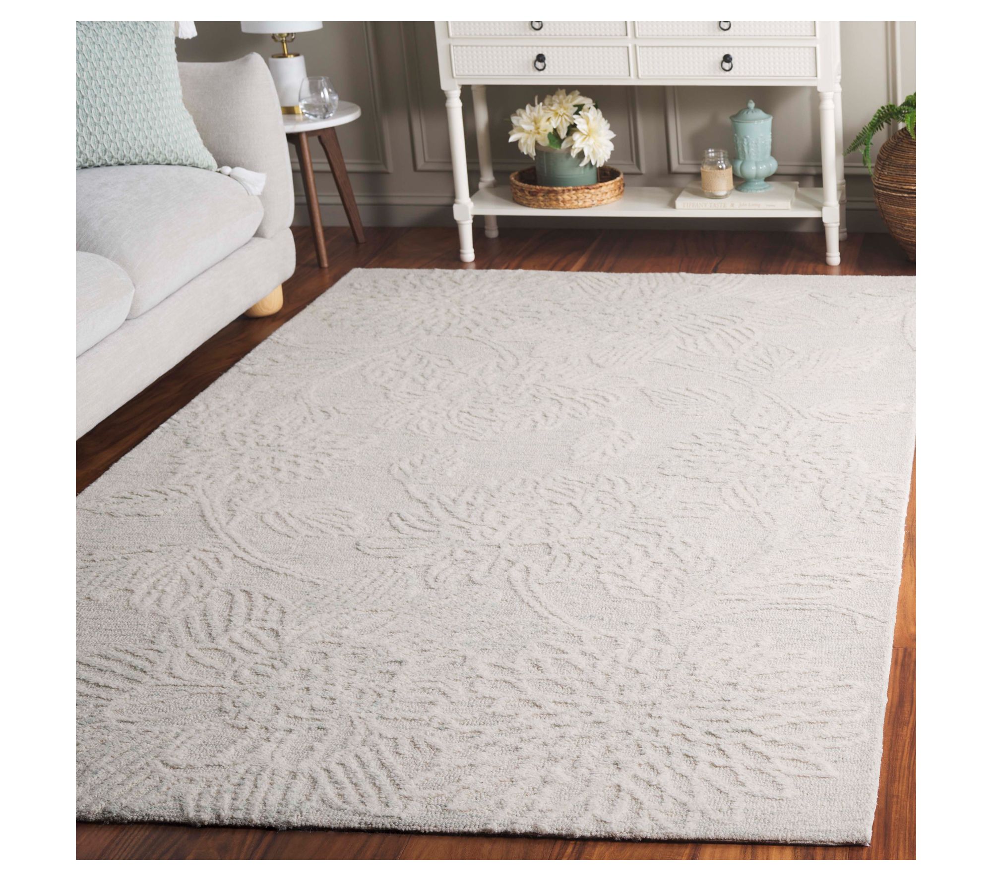 Country-inspired floral motifs bring instant charm to your favorite living spaces with this tufted wool rug. The cushioned softness underfoot and intricate botanical pattern add decorative flair whether it's showcased in the living room, bedroom, or dining area. From Safavieh.