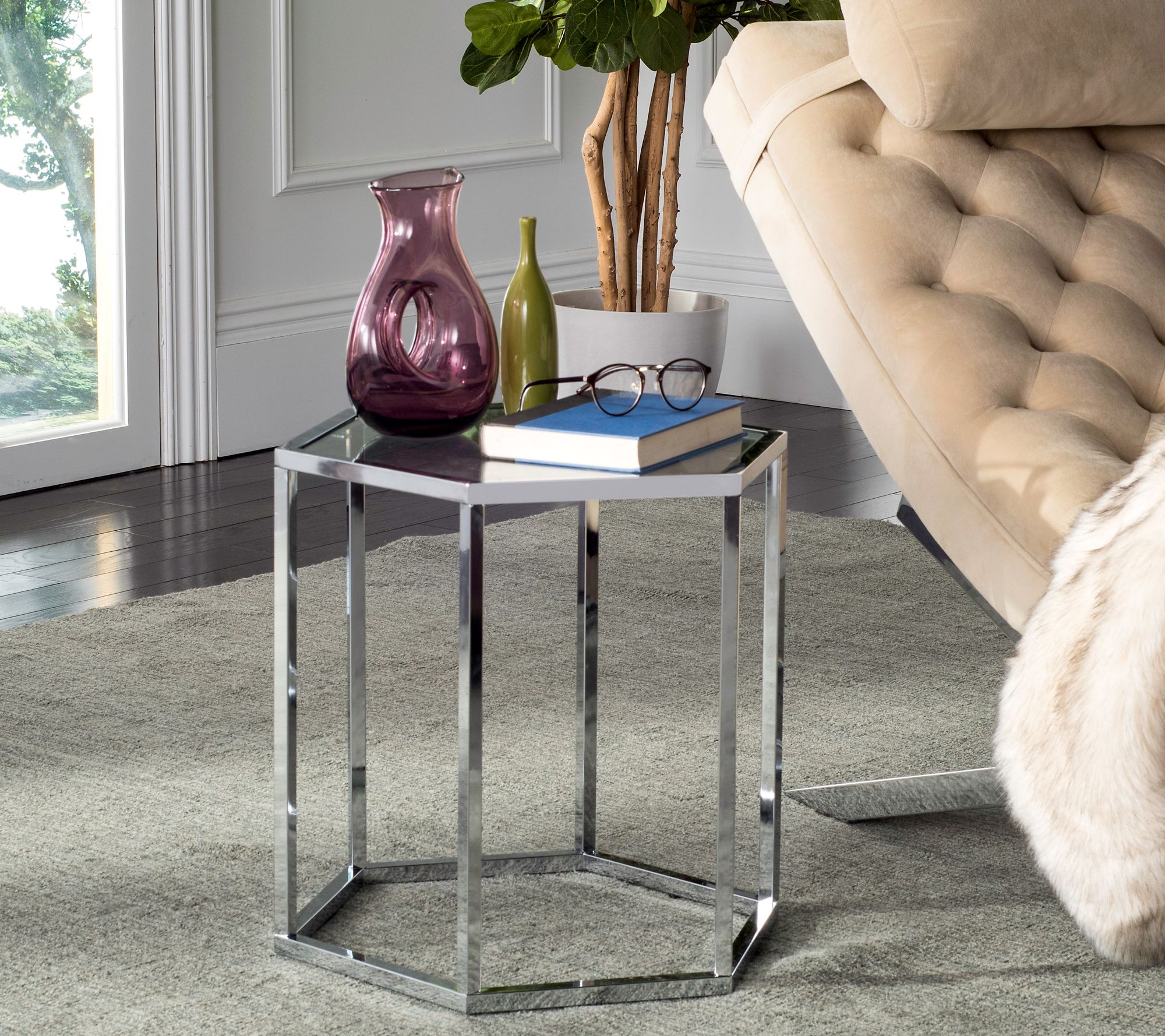 Inspired by the home of Italy's foremost contemporary interior designer, this modern glass end table brings minimalism's timeless beauty to any space. Crafted with plate glass and chic chrome finish, its versatile style is ideal for the urban nest. From Safavieh.