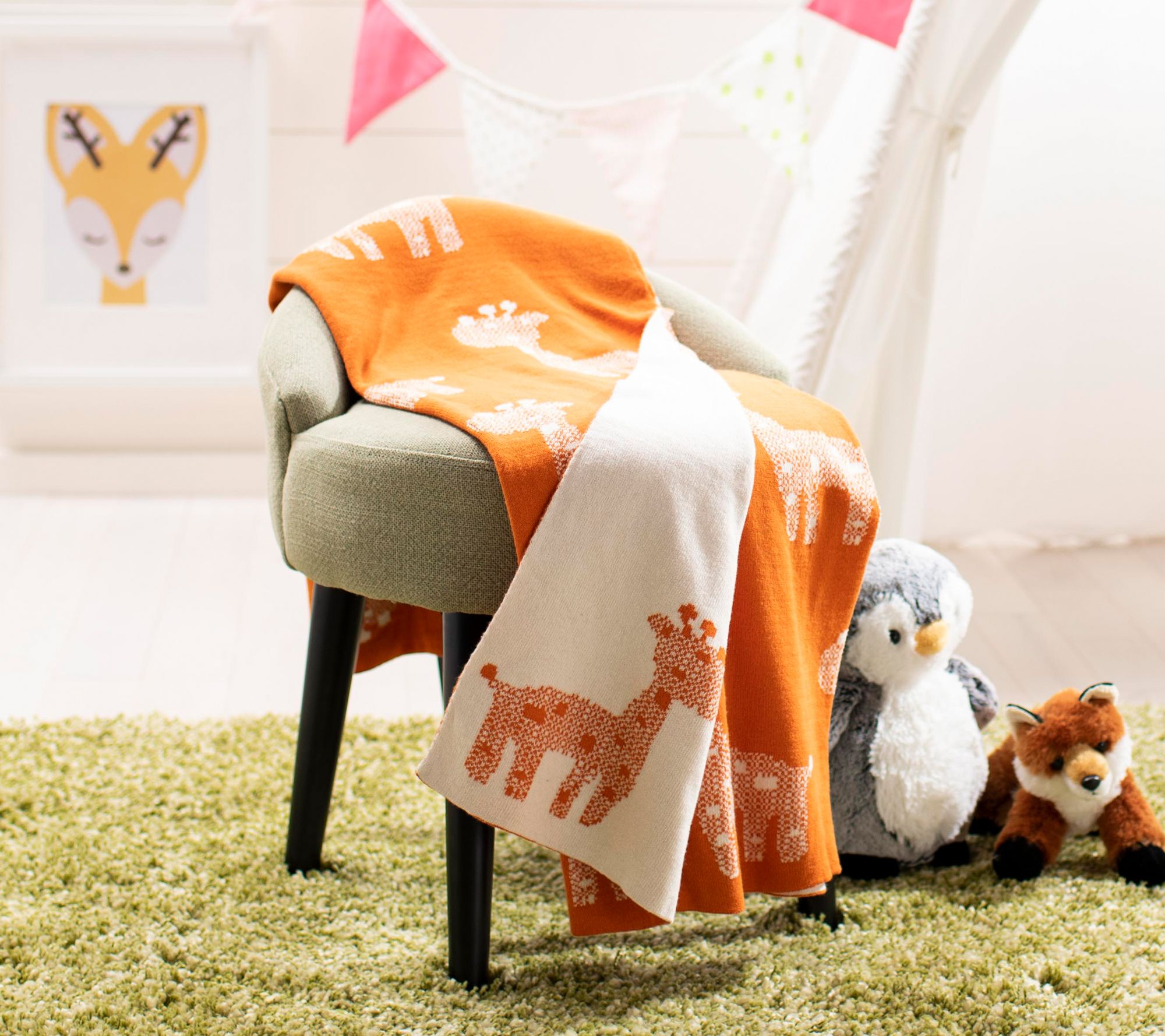 Cuddly and cozy with an adorable giraffe print, this throw blanket will be a welcome addition to baby's nursery. From Safavieh.