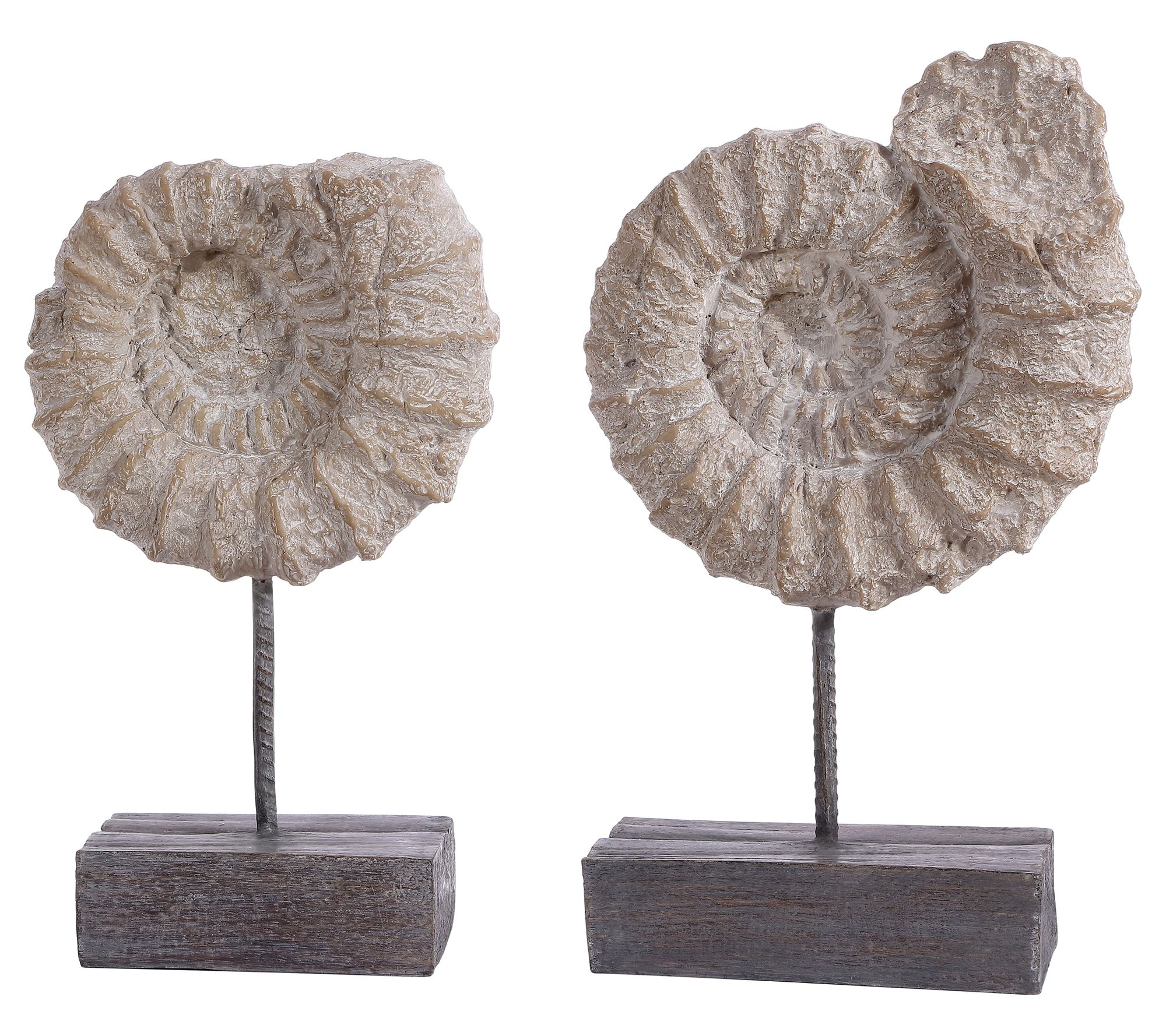 Tabletop decor takes on sophisticated style and intriguing texture with this set of ammonite shell replicas. Complete your mantel or a console table with these fossil-like focal points and instantly elevate your home with museum-worthy wonder. From Safavieh.