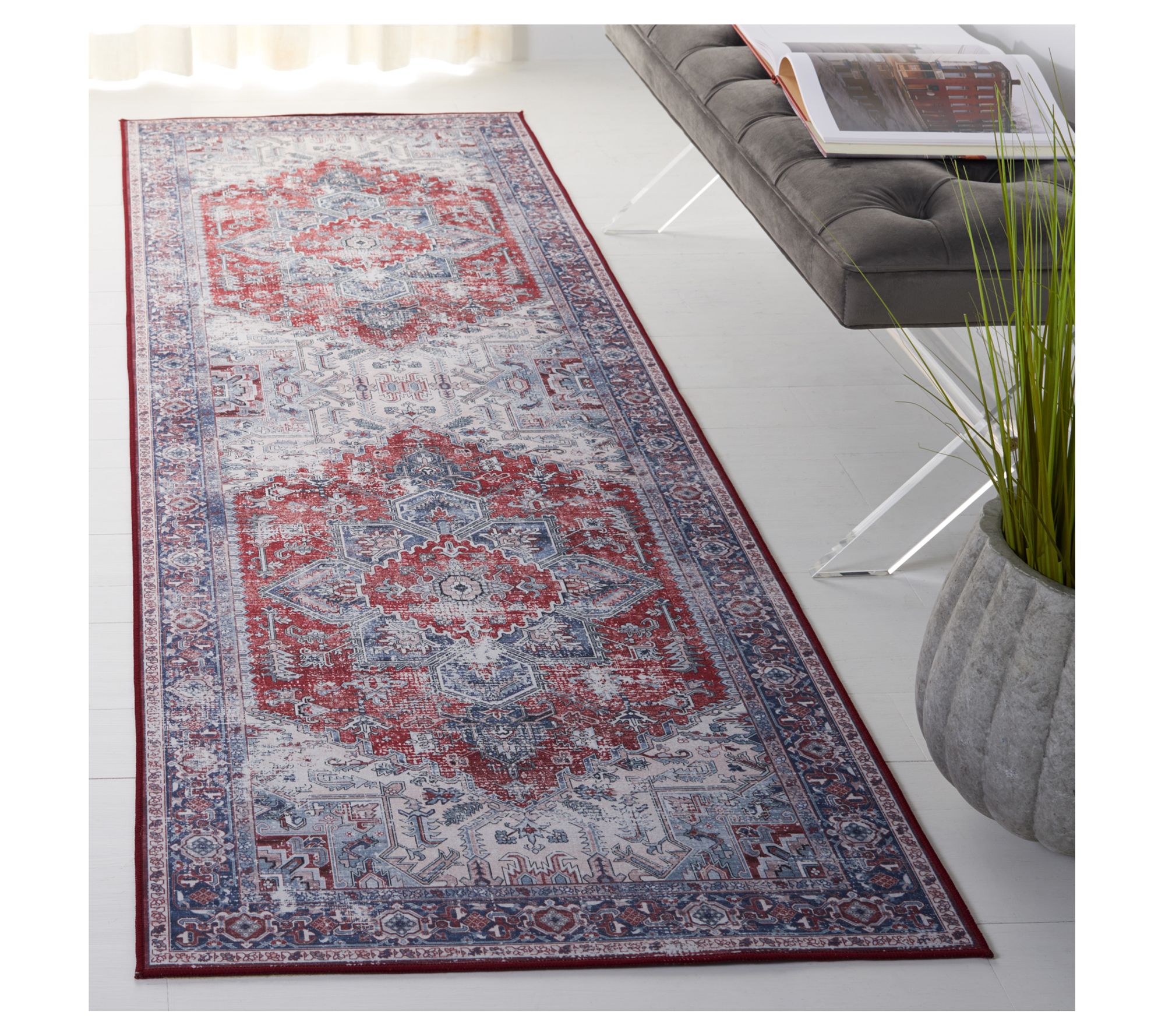 Soft construction, a bold mix of colors, and a sophisticated pattern make this machine-washable rug perfect for adding a touch of cozy charm to any space. From Safavieh.