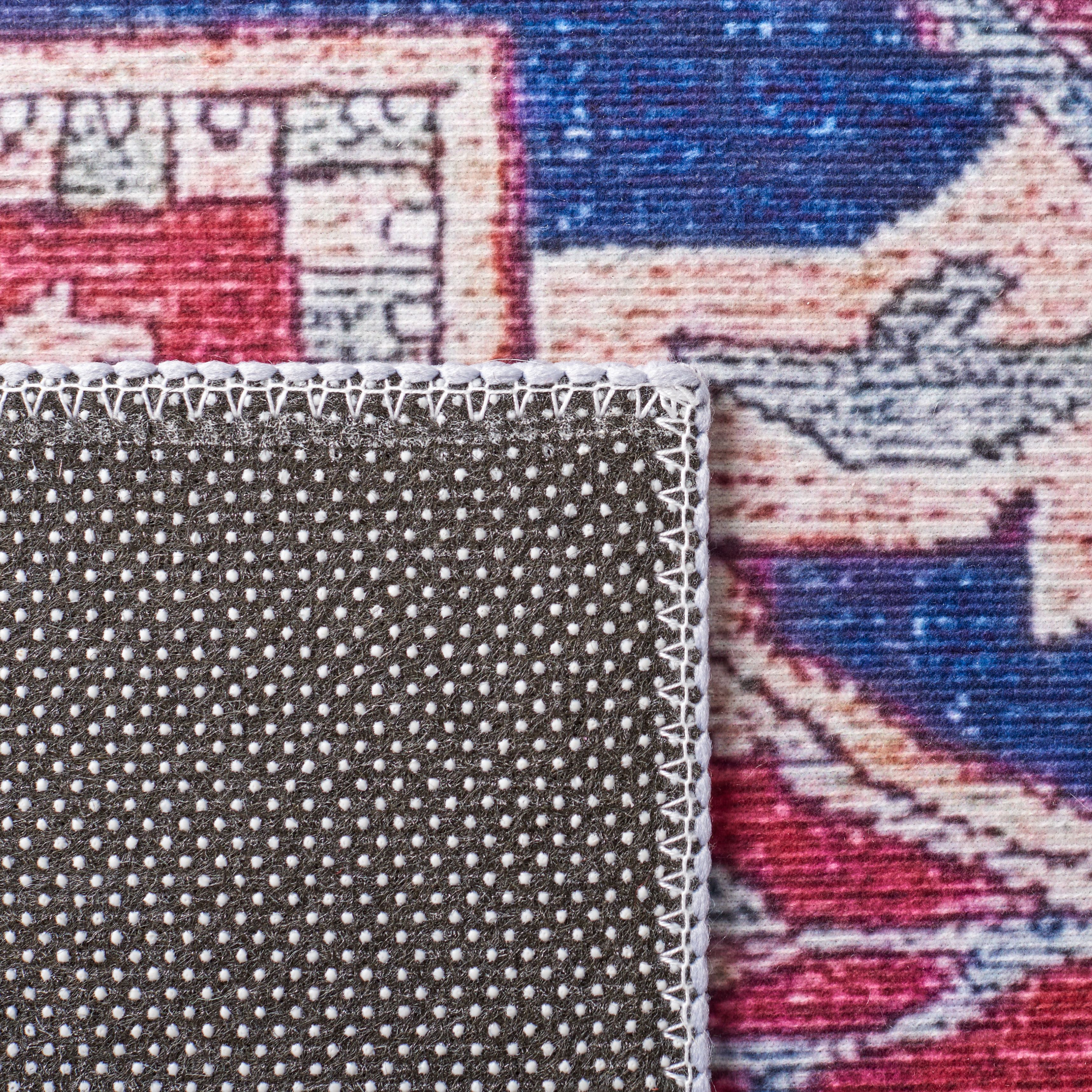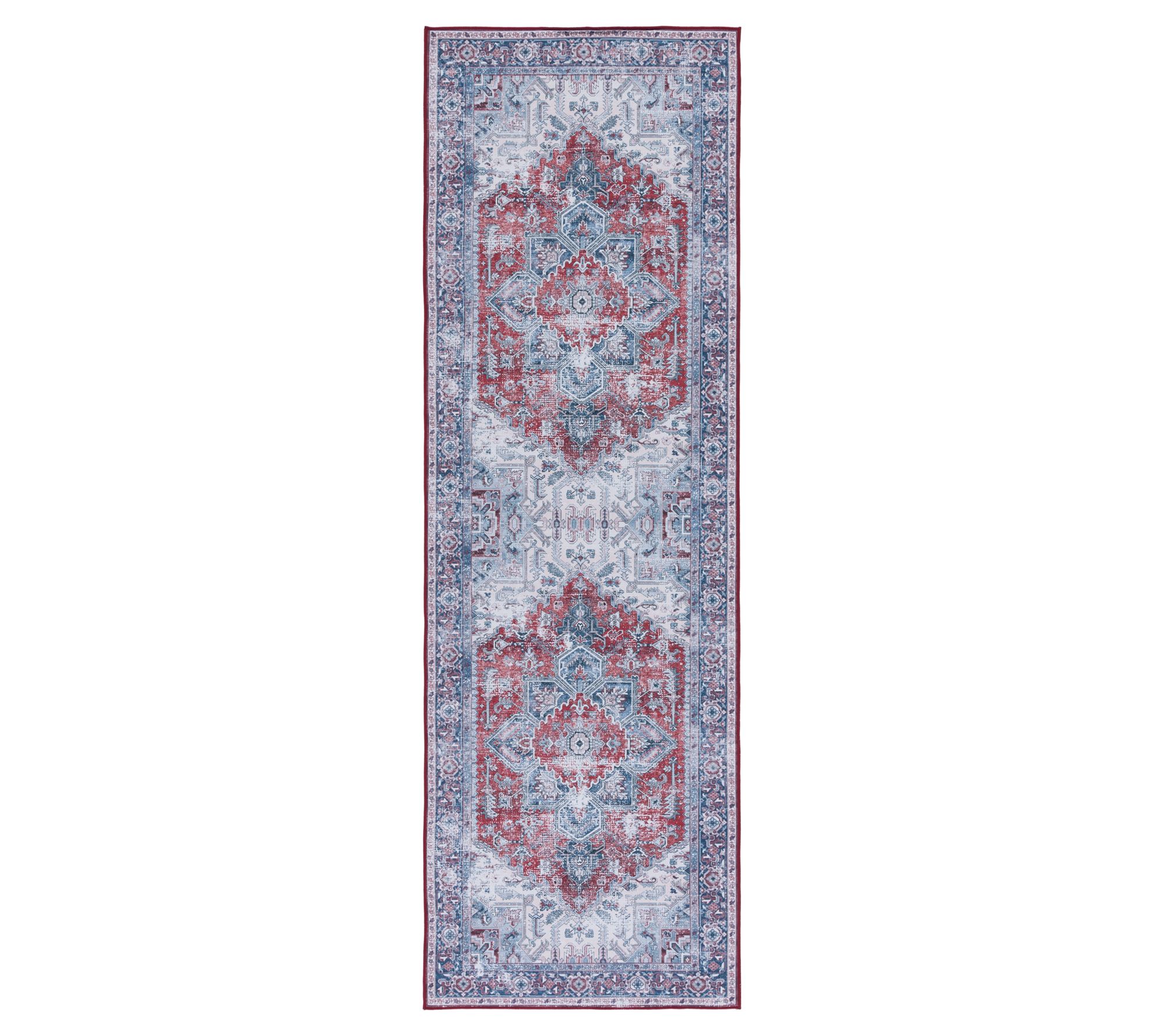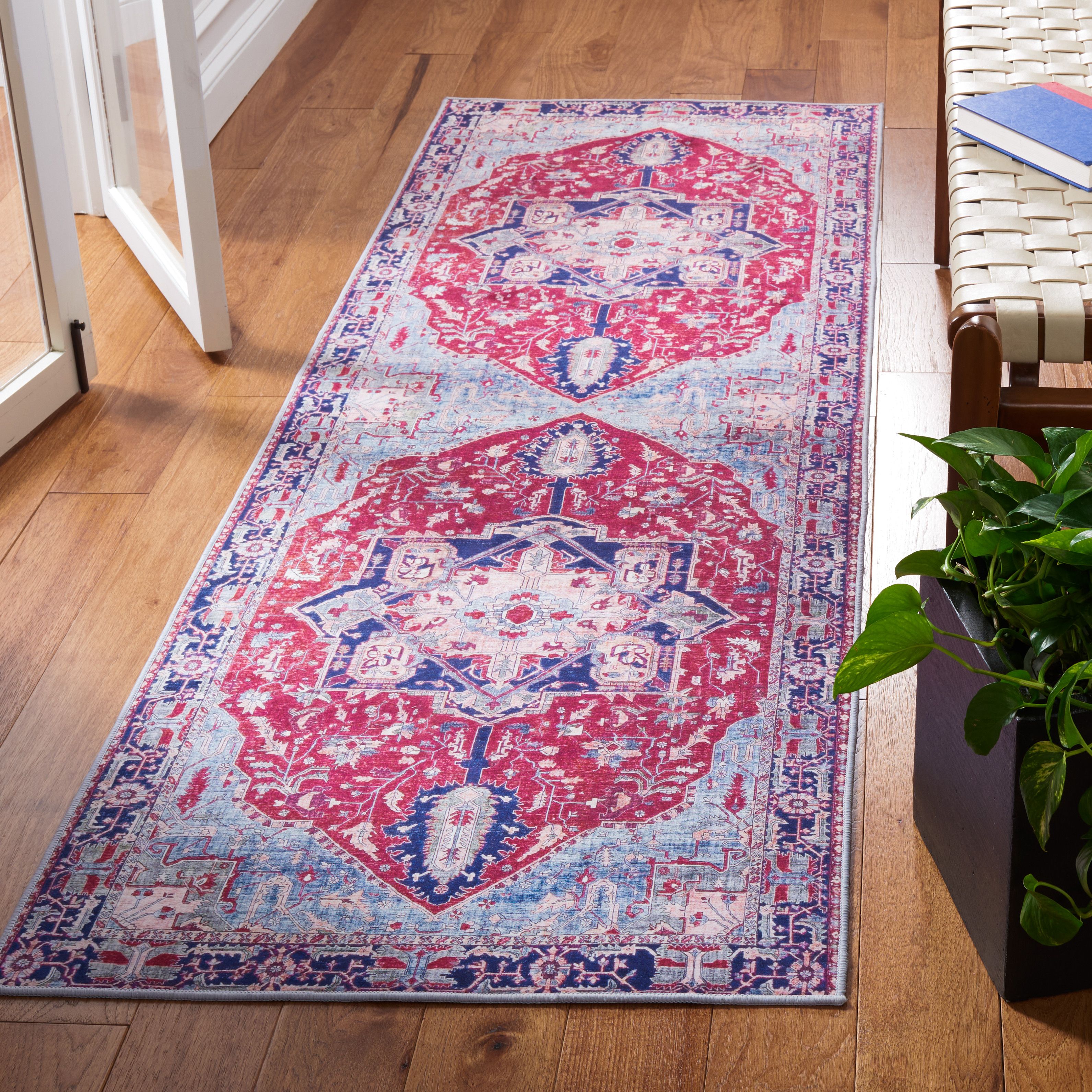 With a sophisticated pattern and a bold mix of colors, this machine-washable rug is the perfect way to add chic style to busy homes. From Safavieh.