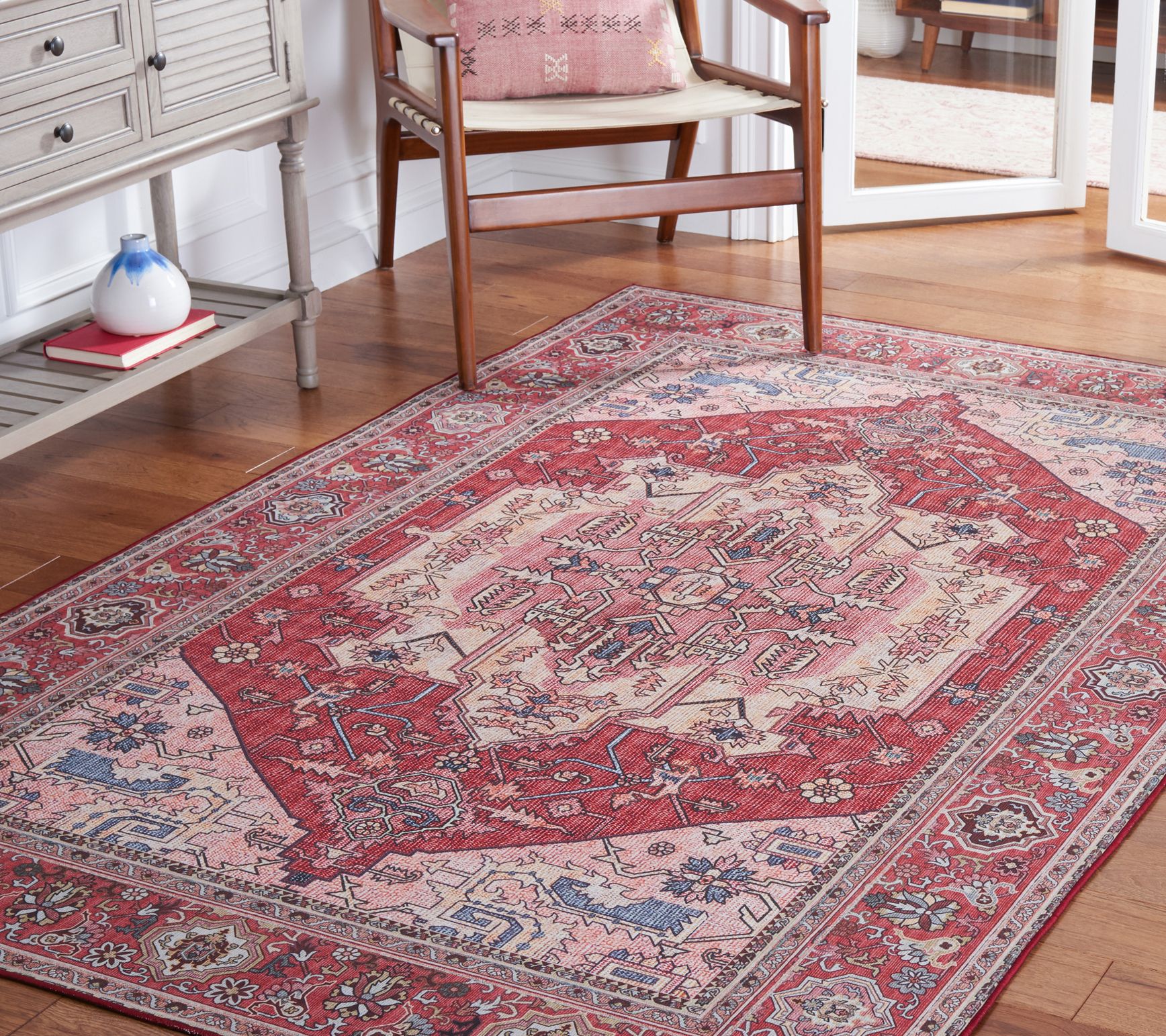Define your living space with the timeless elegance of this area rug, which showcases a faded and distressed traditional design and a low pile that makes cleaning a breeze. From Safavieh.