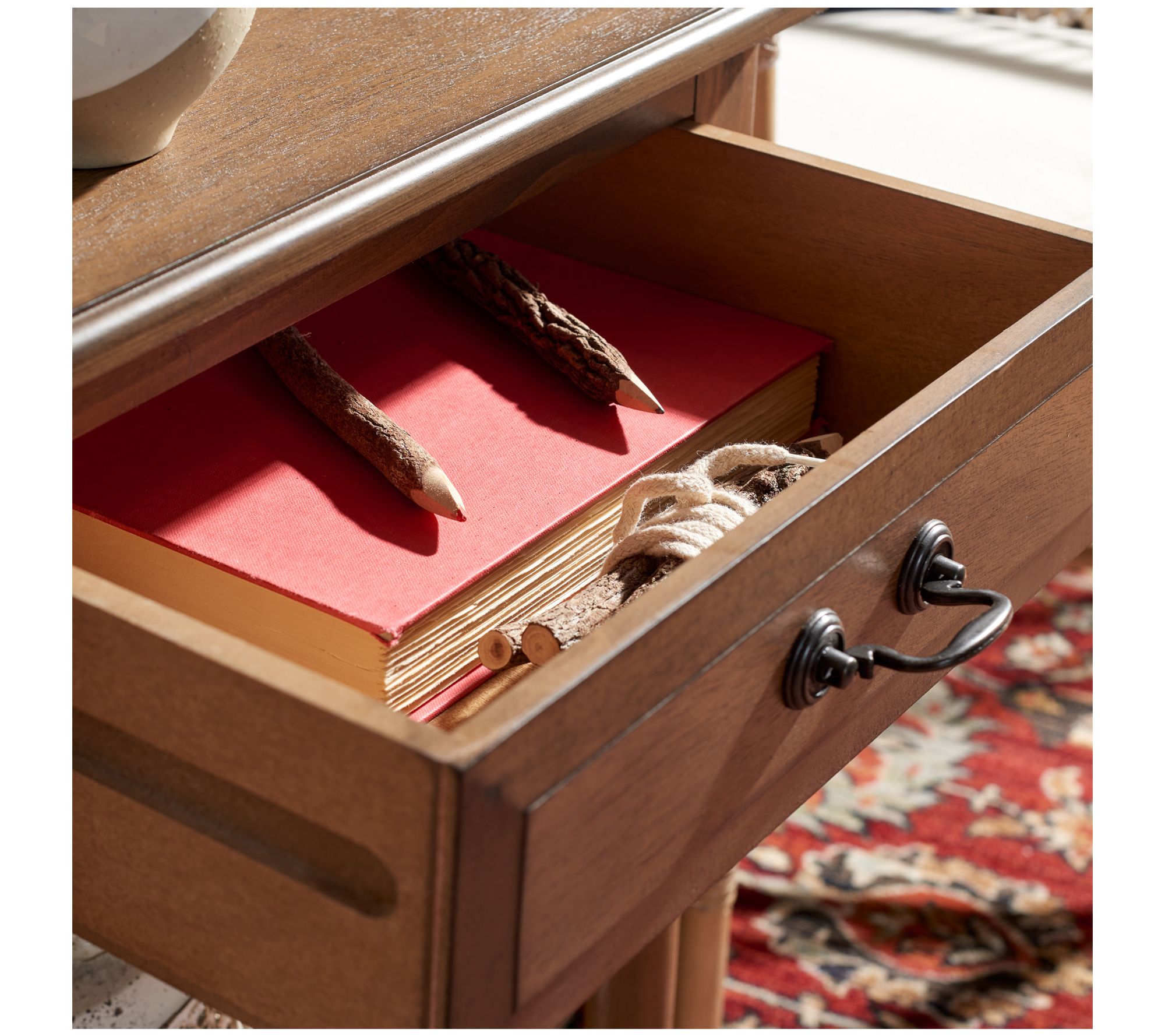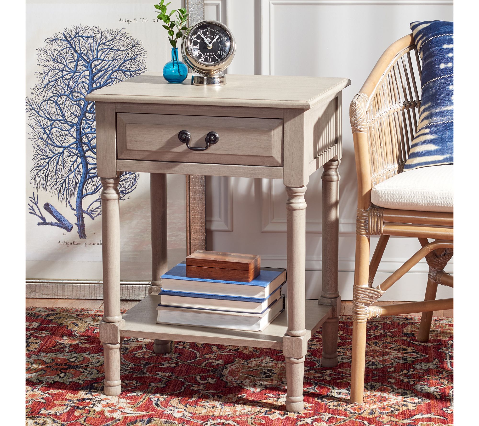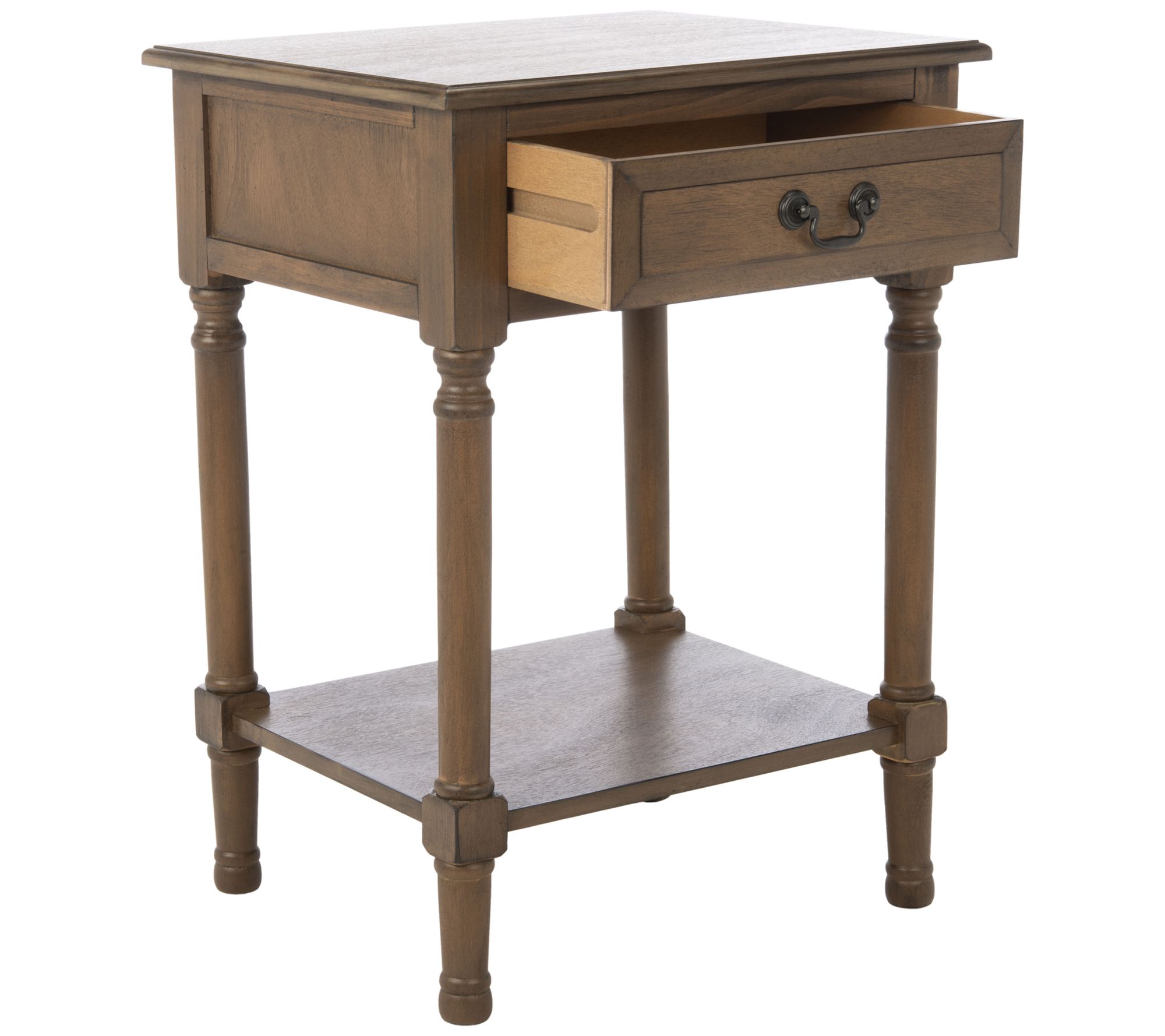 Bring farmhouse charm to your contemporary decor with this classic accent table featuring a handy drawer and lower shelf for storage. From Safavieh.
