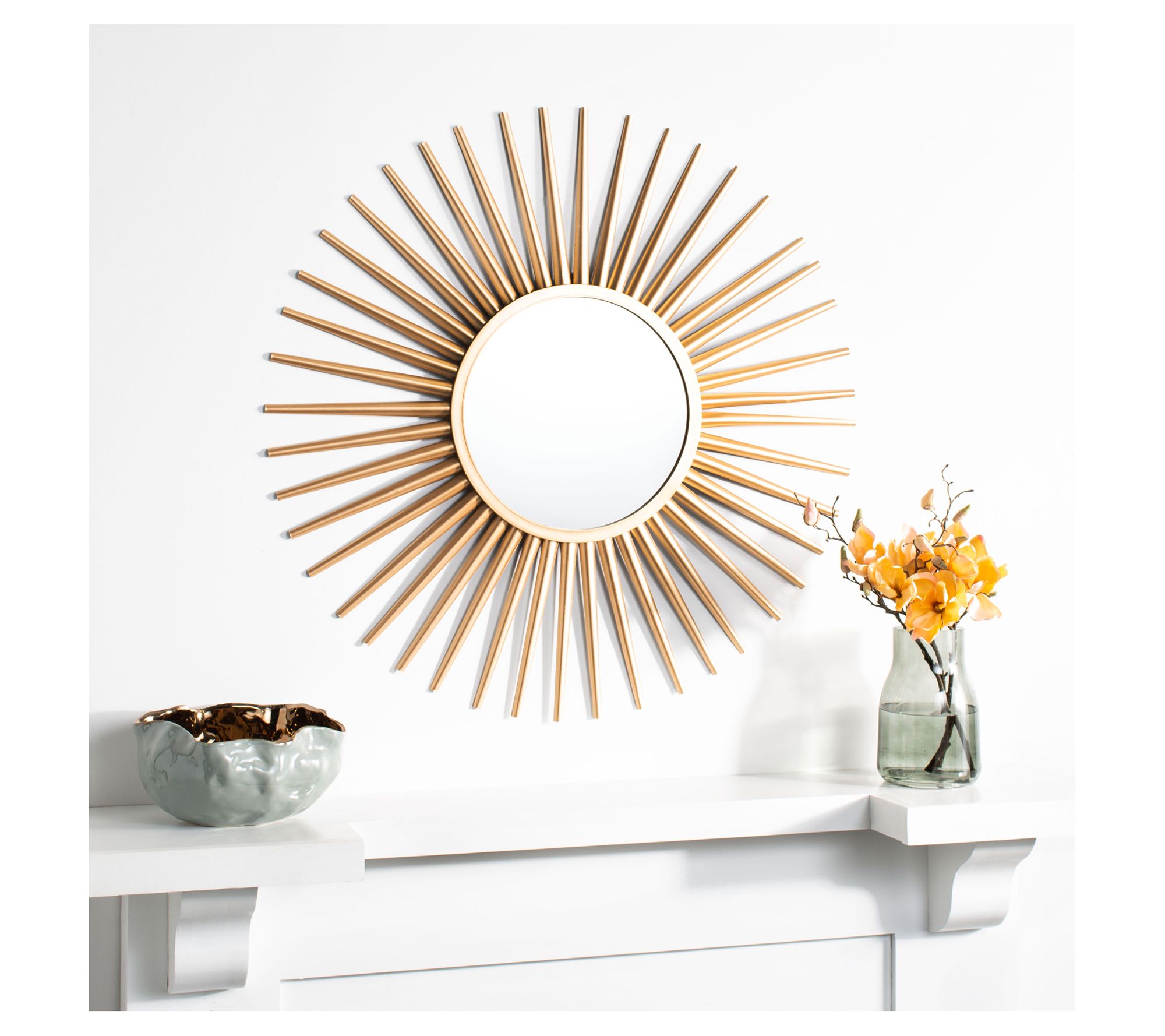 Lend vibrant energy to your wall with this attention-grabbing mirror boasting a traditional sunburst pattern in a scintillating gold hue. From Safavieh.