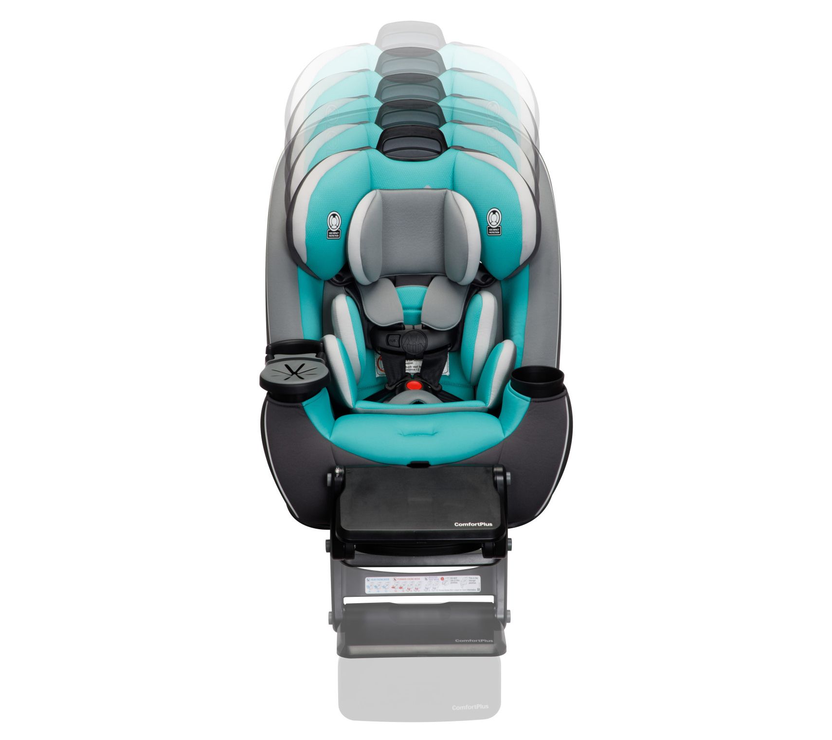 • ComfortPlus footrest works in all three positions; provides up to 7" of additional leg room in rear-facing mode