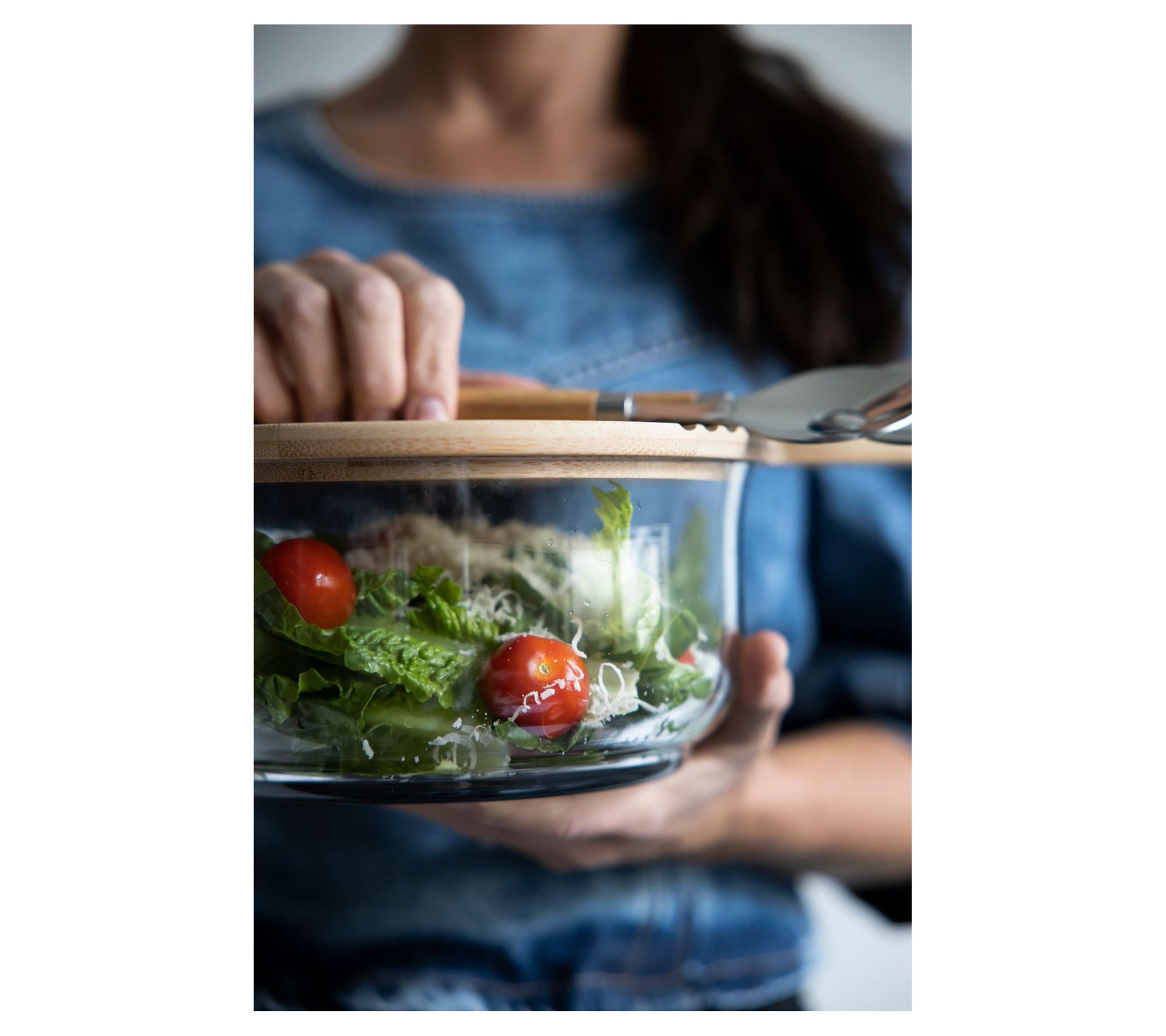 • Includes glass salad bowl and bamboo lid/serving board